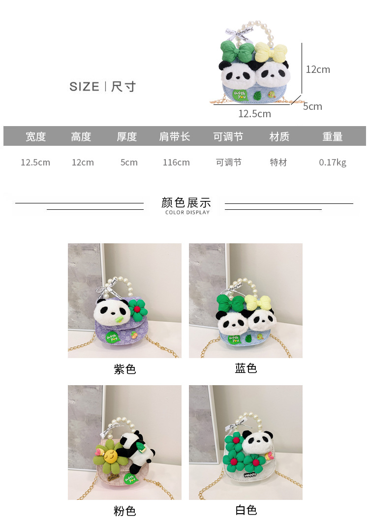 어린이 가방 새로운 소녀 팬더 패션 어깨 가방 진주 어린이 핸드백 달콤한 귀여운 소녀 가방