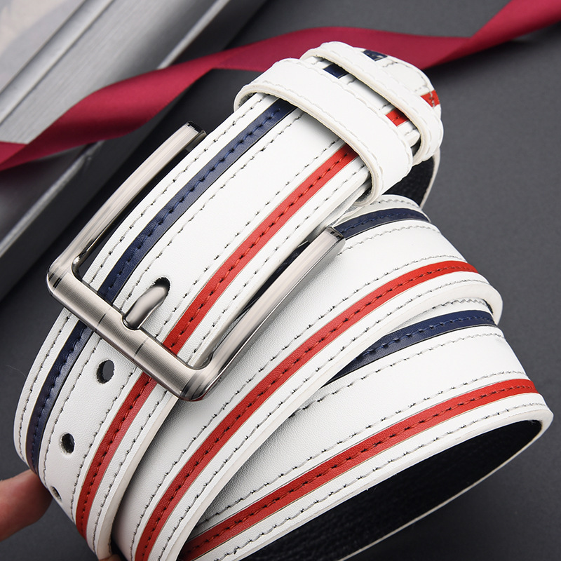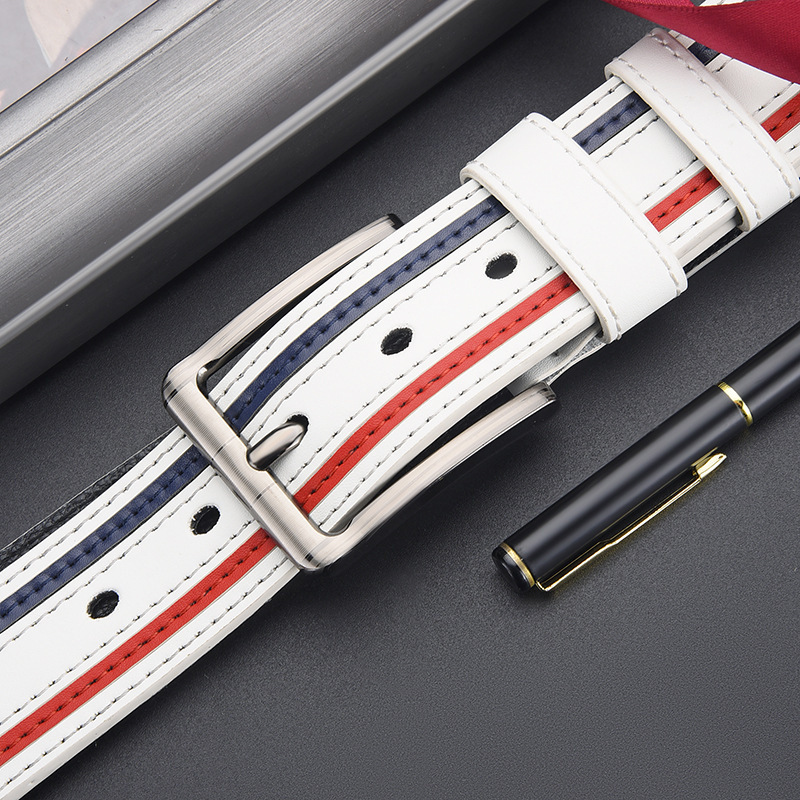 벨트 여자의 2024 새로운 올 매치 패션 화이트 스티칭 골프 벨트 남자의 독특한 트렌디 크로스 국경 대외 무역 트렌디 바지