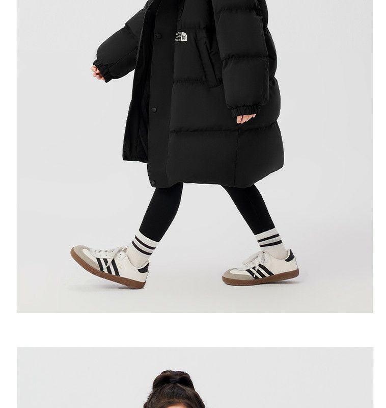 Zuoxi 여자 다운 재킷 중간 길이 겨울 따뜻한 2025 새로운 어린이 세 가지 증거 블랙 골드 열 저장 및 내한 겨울 의류스토어 가기