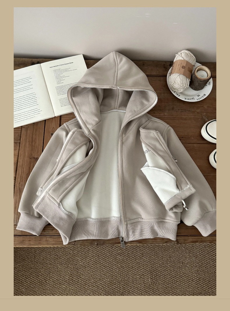 소년 '후드양털자켓 가을과 겨울 2024 새 어린이 겨울 후디 한국 캐주얼 지퍼 카디건 트렌디스토어 가기