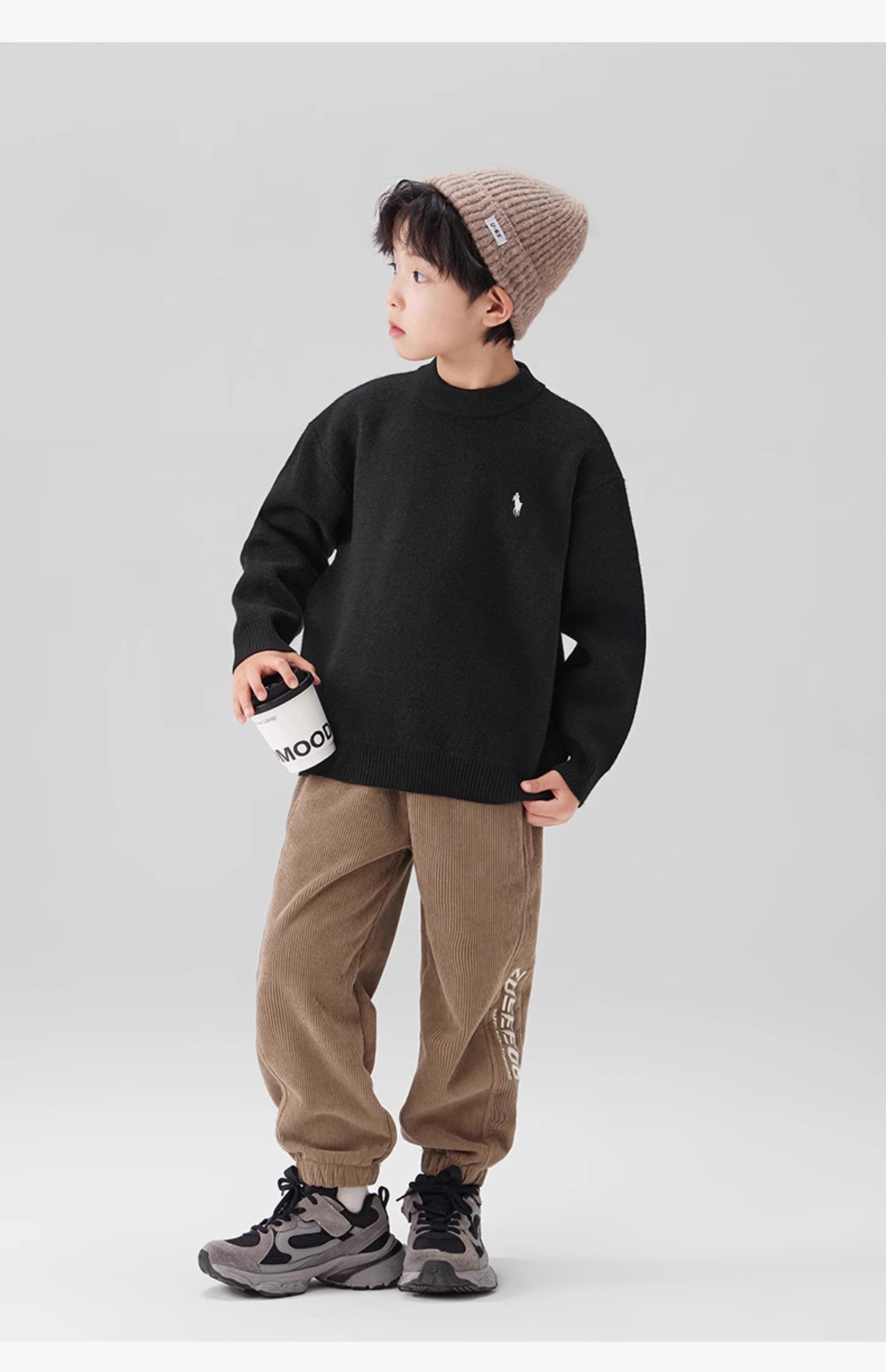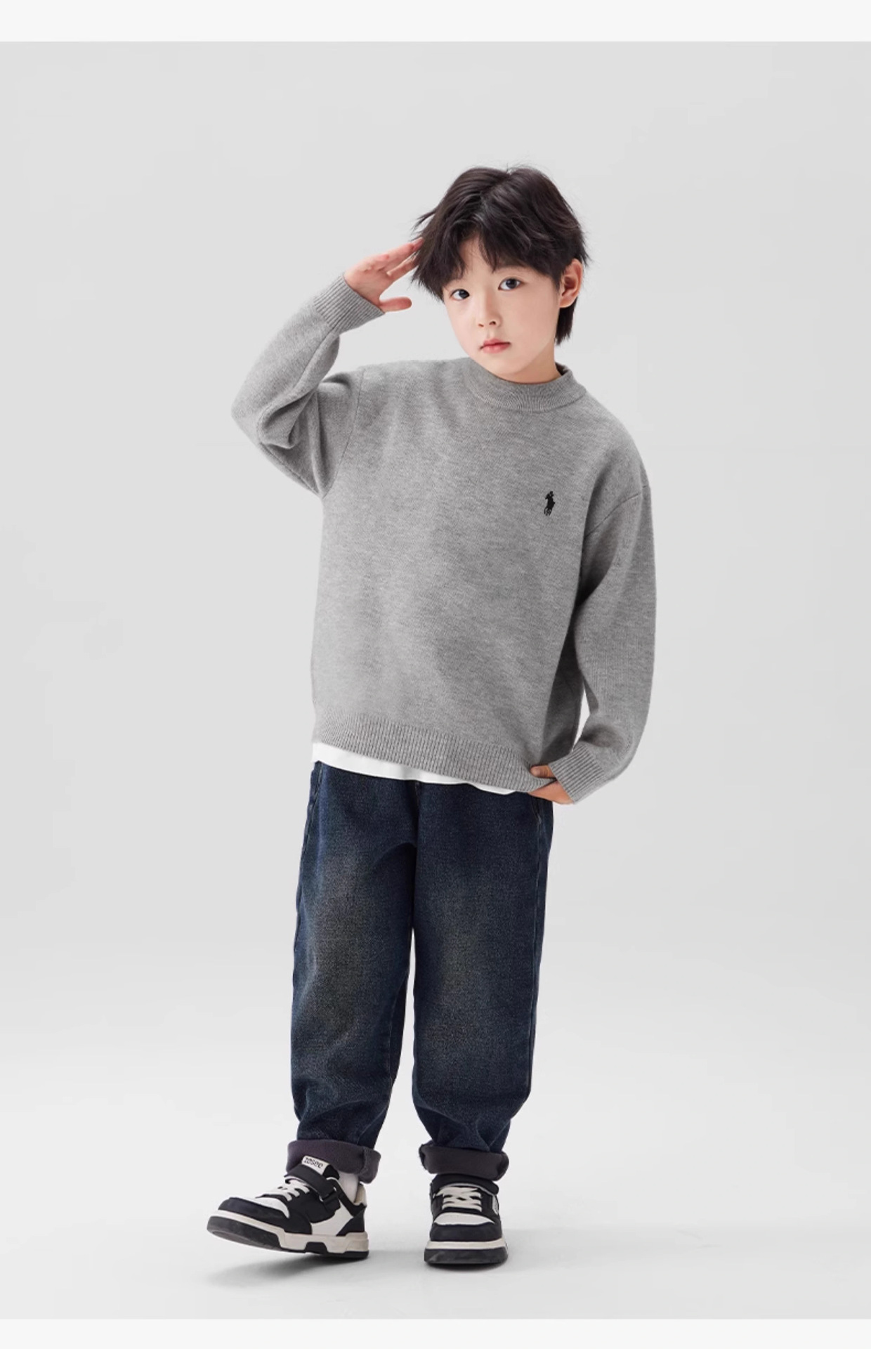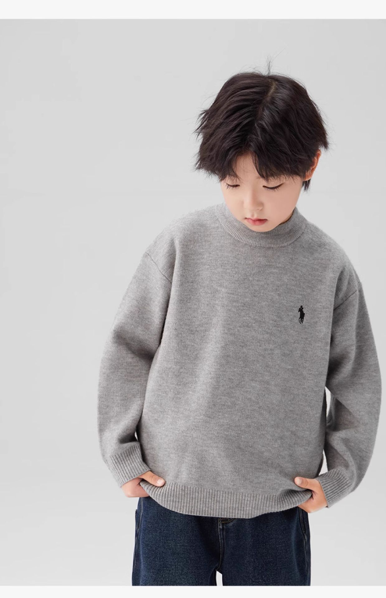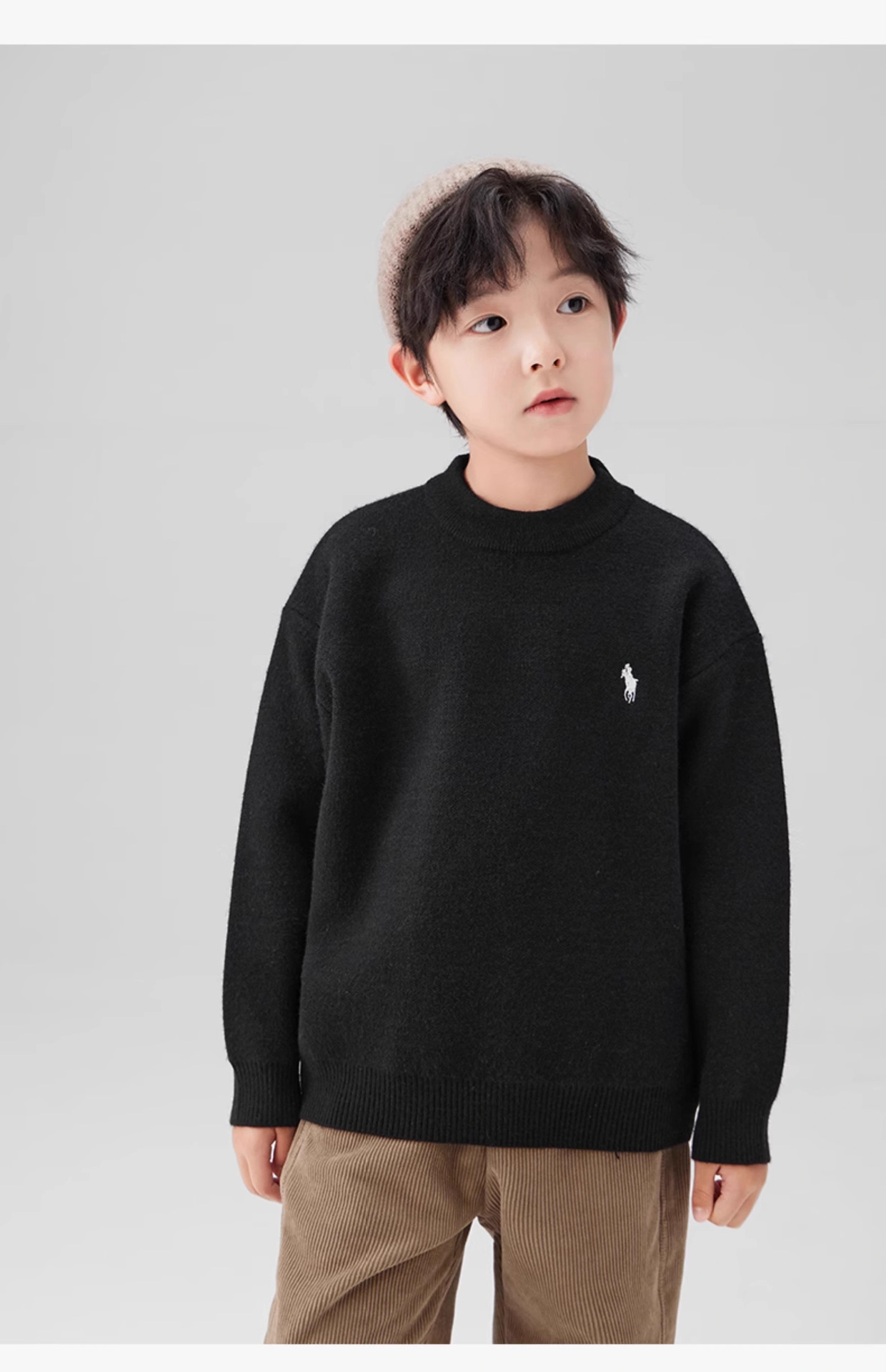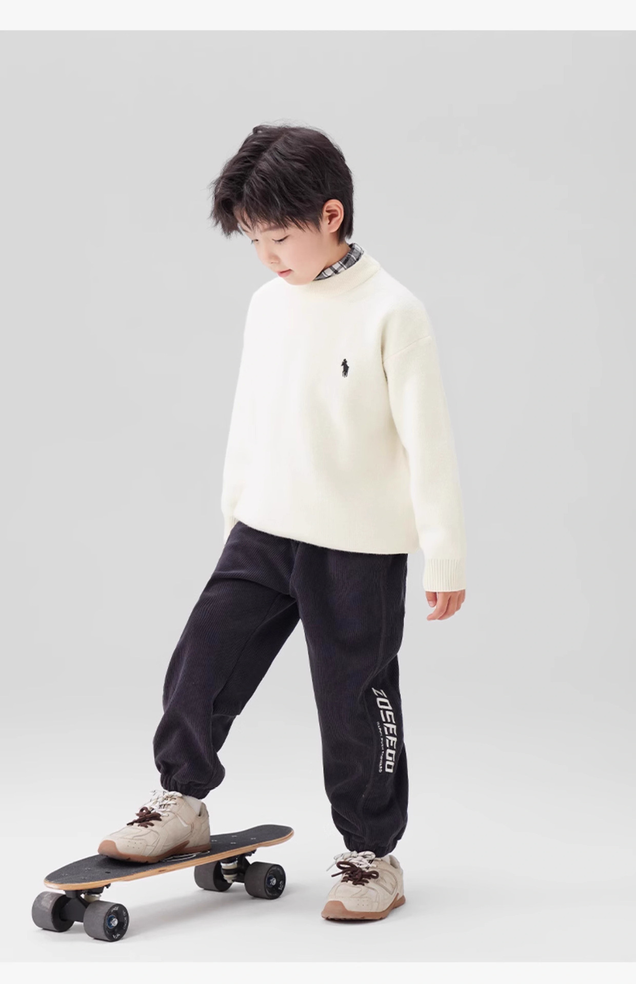 Zuoxi 아동복 소년 스웨터 단색 아동 가을, 겨울 2025 새로운 소년 겨울 스웨터 내부 착용