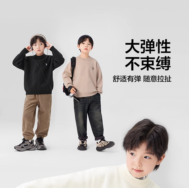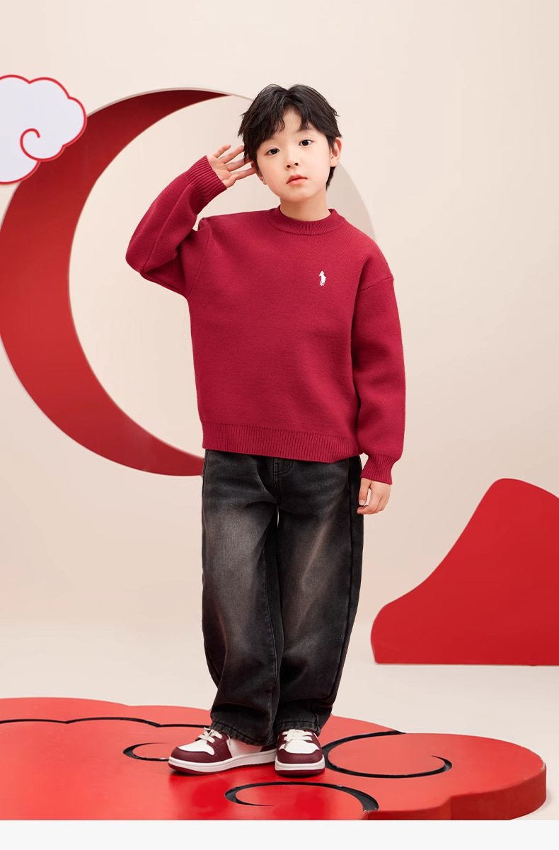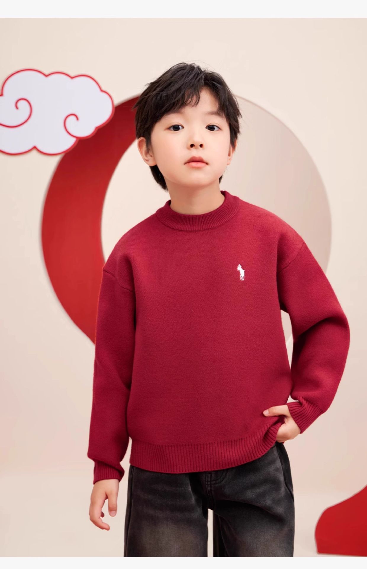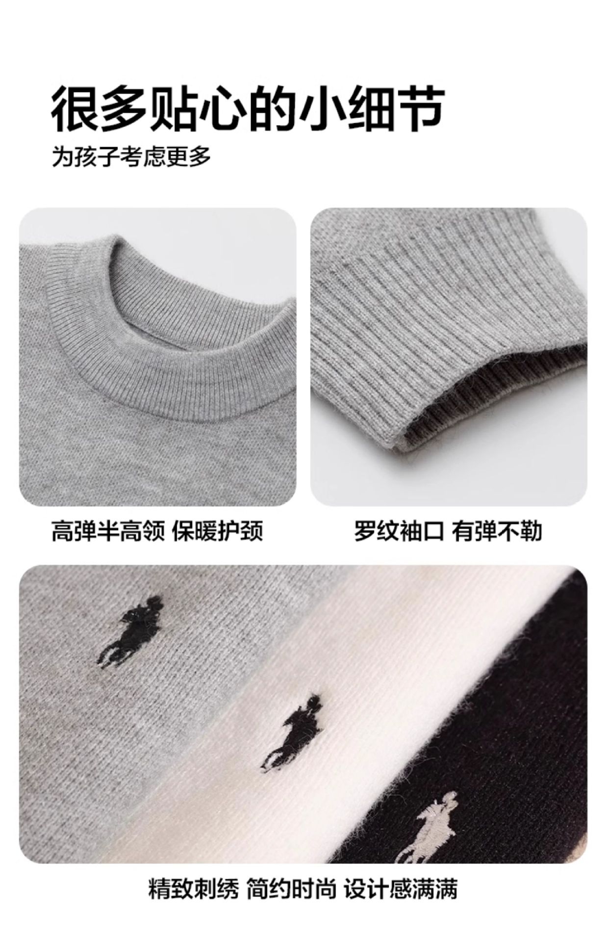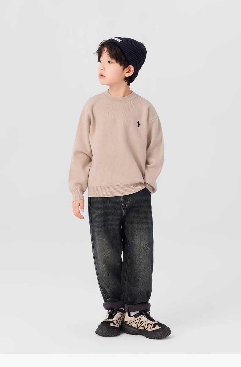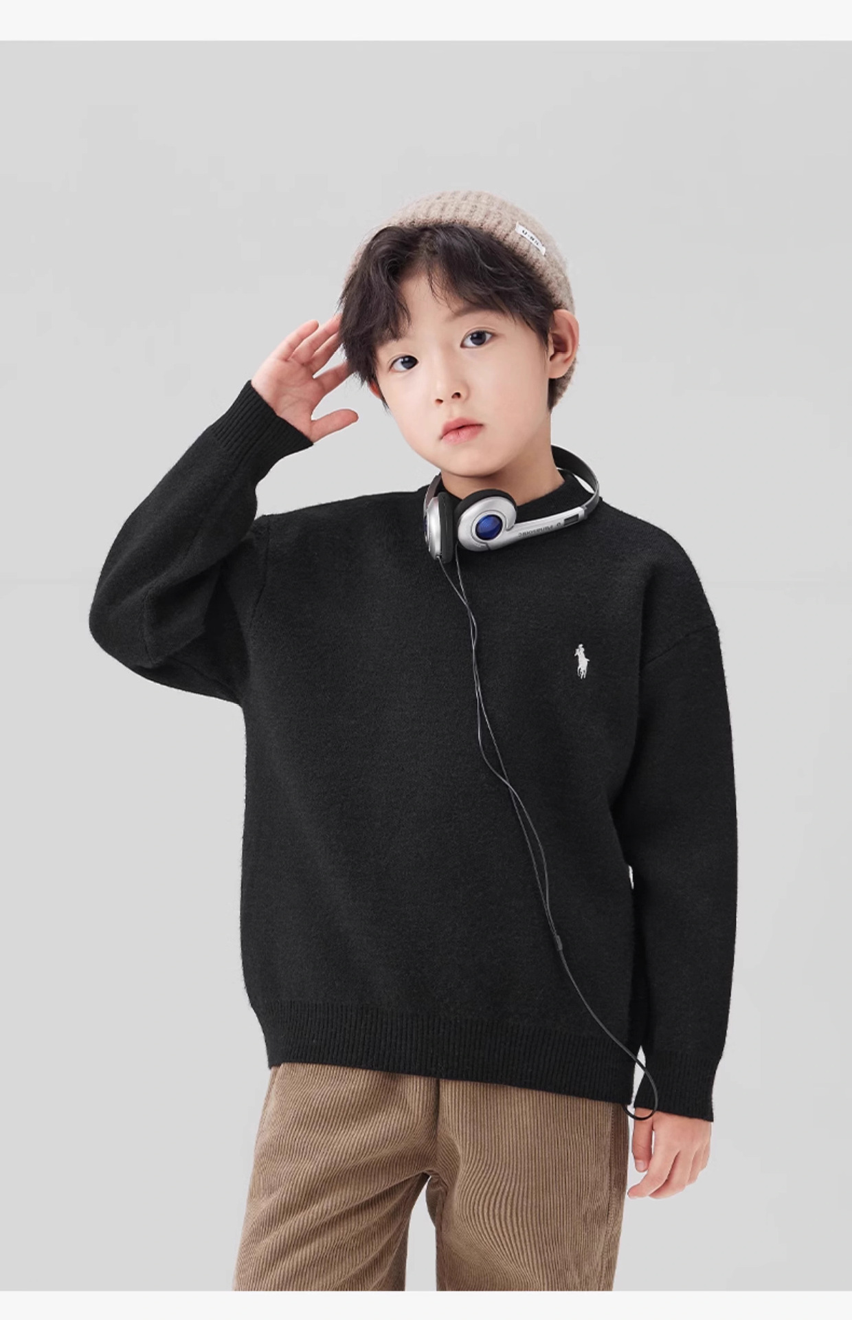 Zuoxi 아동복 소년 스웨터 단색 아동 가을, 겨울 2025 새로운 소년 겨울 스웨터 내부 착용