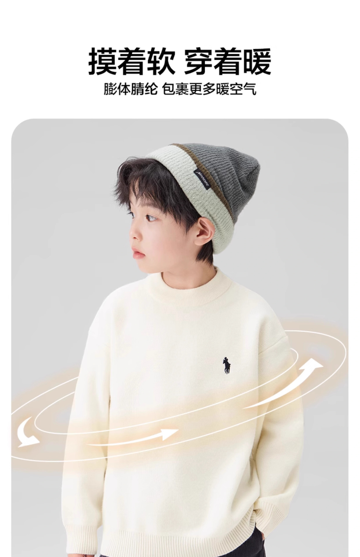 Zuoxi 아동복 소년 스웨터 단색 아동 가을, 겨울 2025 새로운 소년 겨울 스웨터 내부 착용스토어 가기