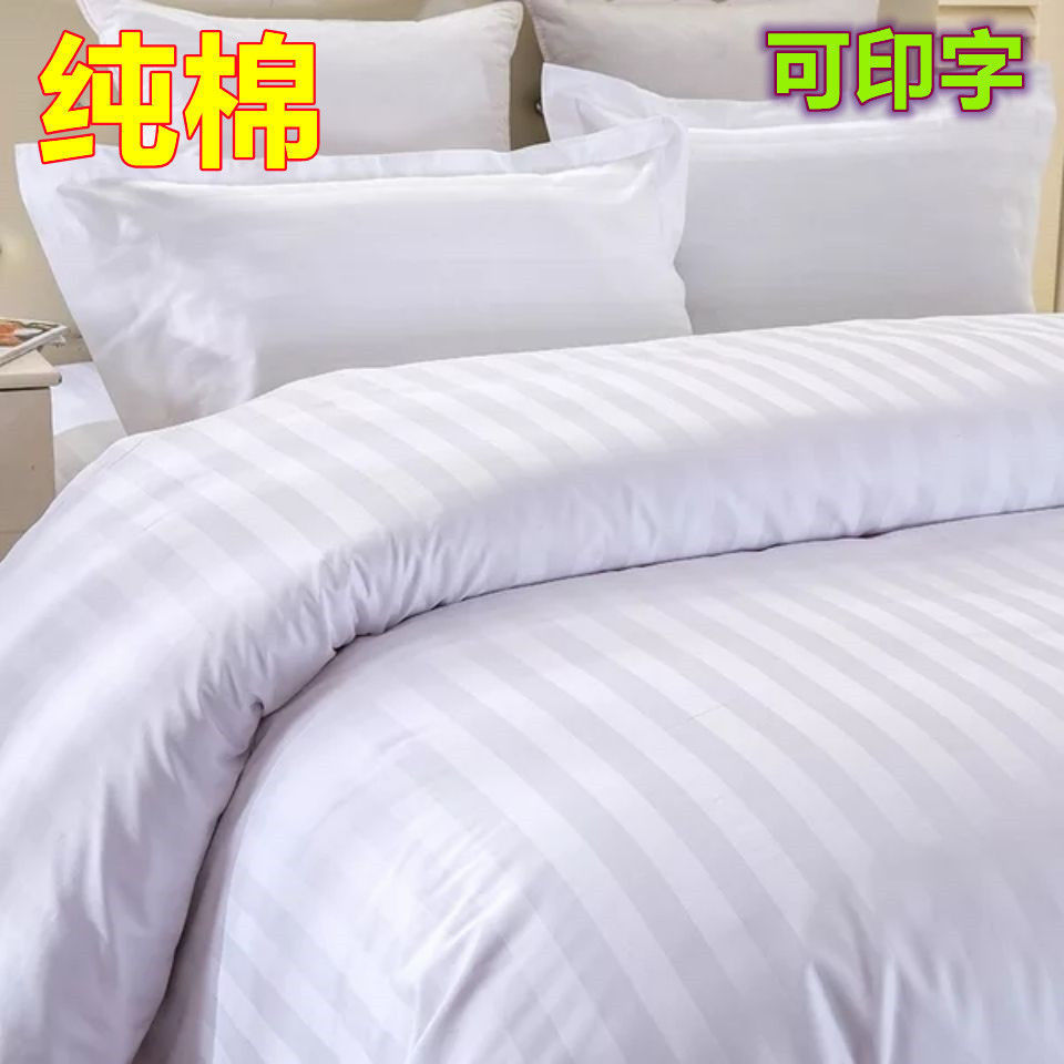 호텔 침대 시트 퀼트 커버 퓨어 코튼 퓨어 화이트 새틴 스트라이프 싱글 더블 싱글 피스 화이트 두꺼운 4 피스 세트 Jiatai스토어 가기