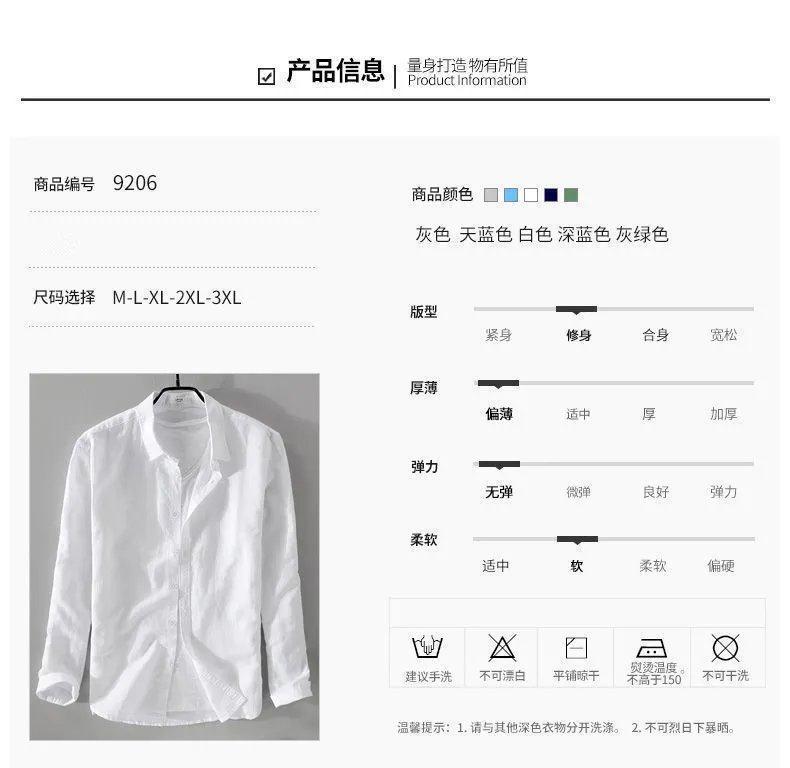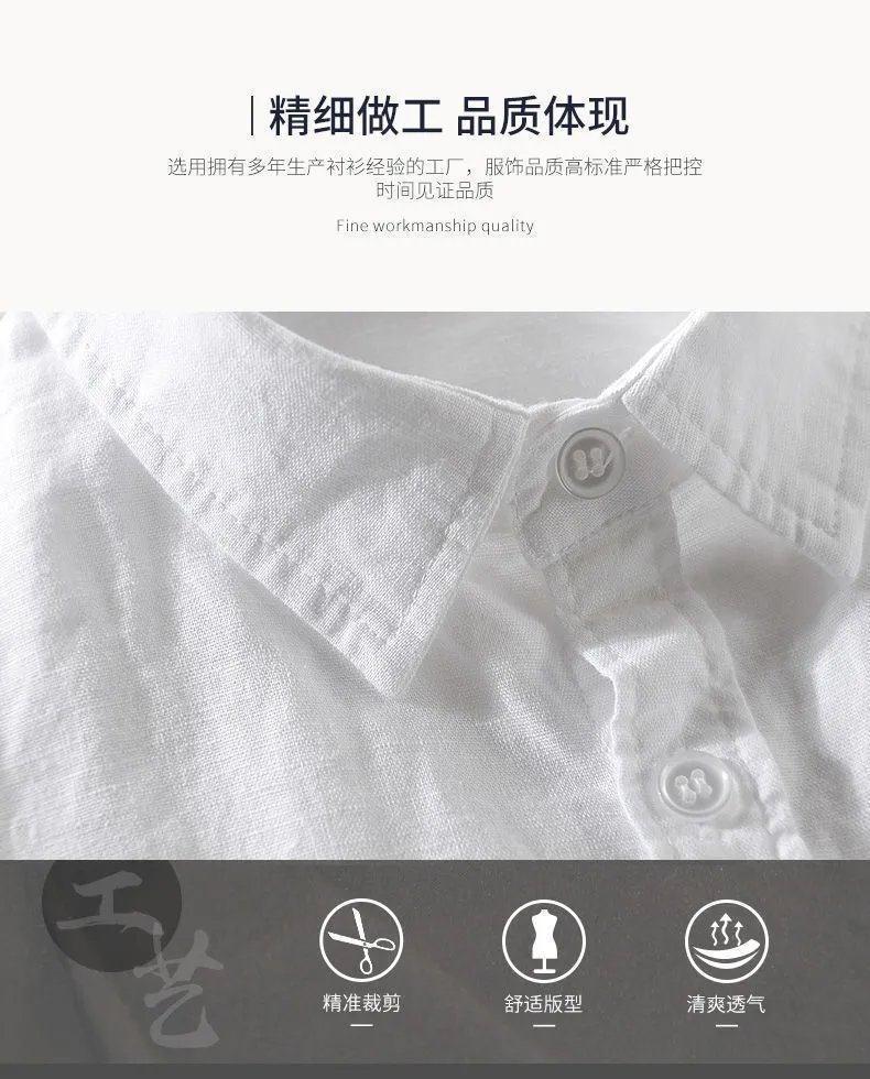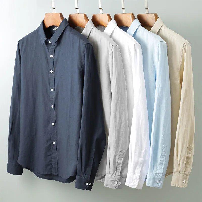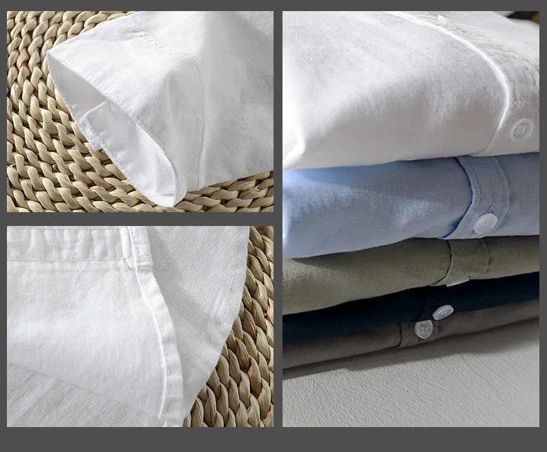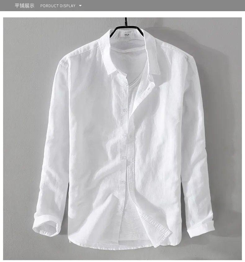 흰색 긴 소매 리넨 셔츠 남성용 캐주얼 옷깃 느슨한 청소년 일본 통기성 코튼 리넨 셔츠 인치 지아 타이스토어 가기