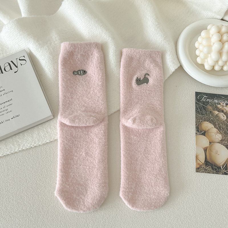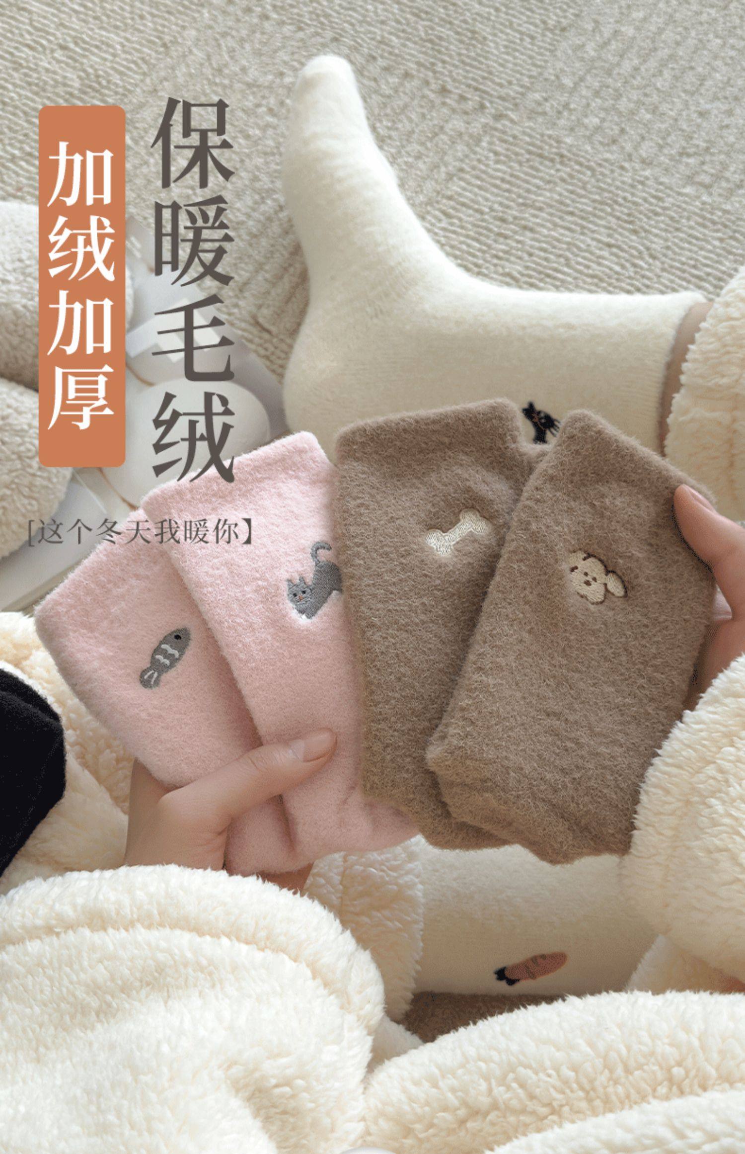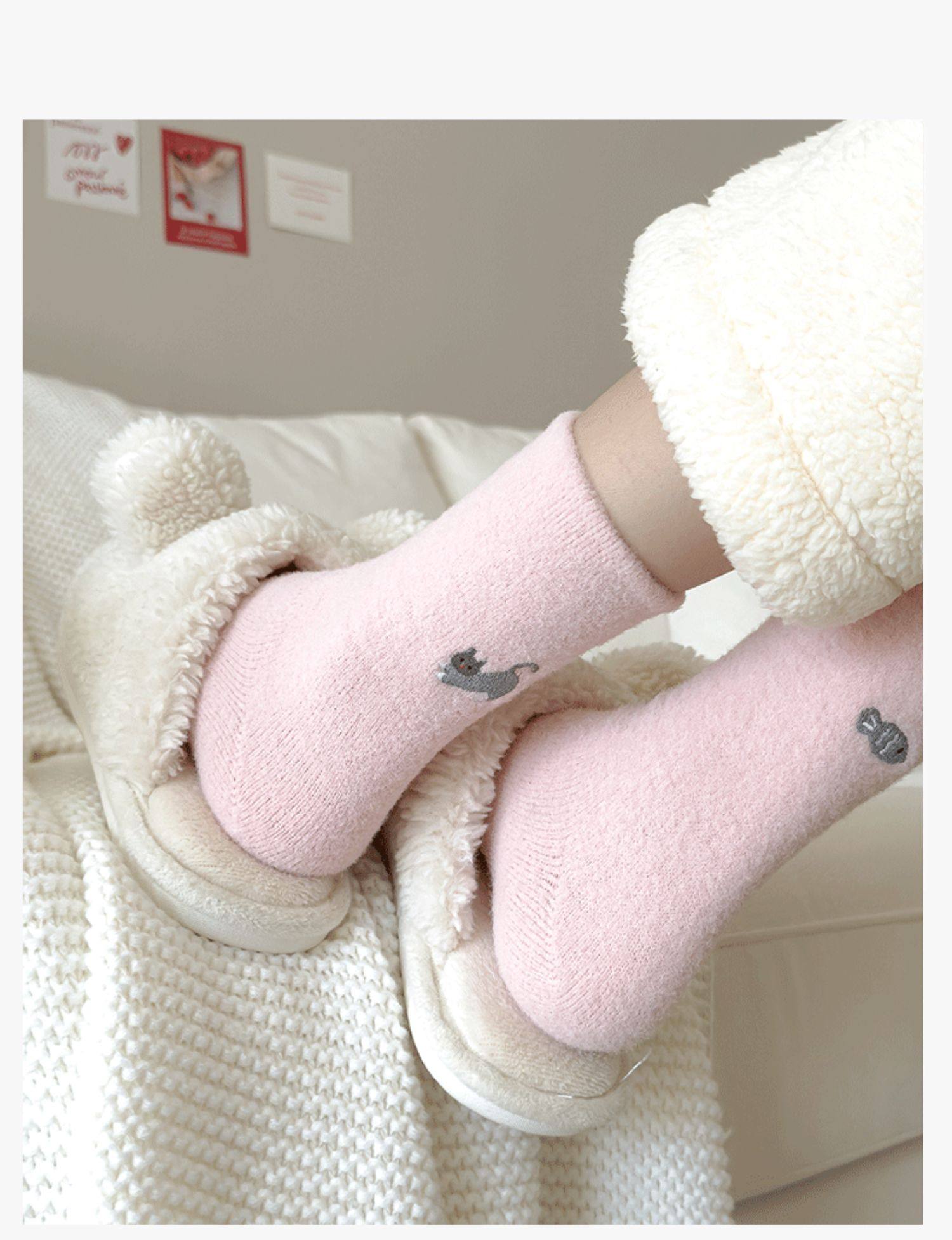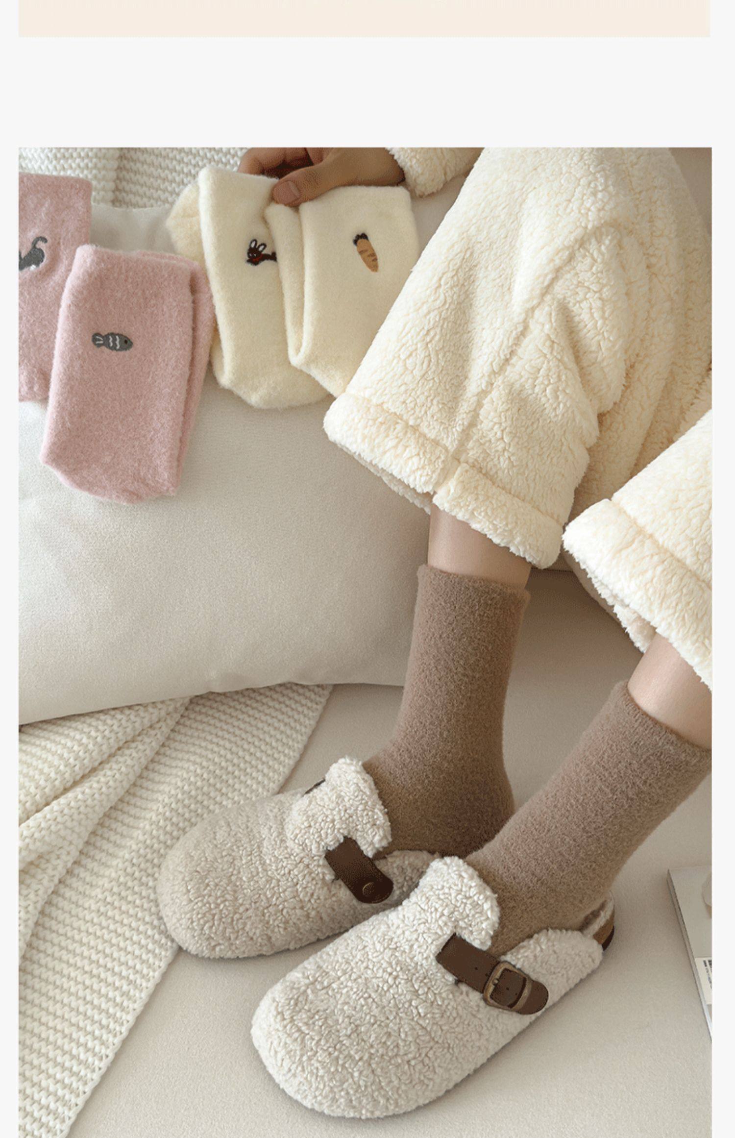 호주 벨벳 양말 어린이 가을과 겨울 양말은 기모 따뜻한 수면 양말 귀여운 자수 아기 양말 겨울 스타킹