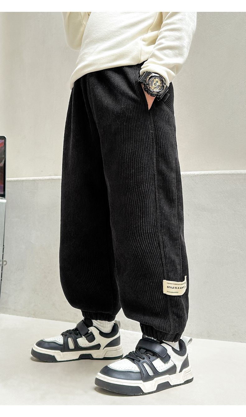 좌시 아동복 남아용 기모 바지 봄 가을 캐주얼 바지 2025 신상 아동용 일체형 기모 코듀로이 바지스토어 가기