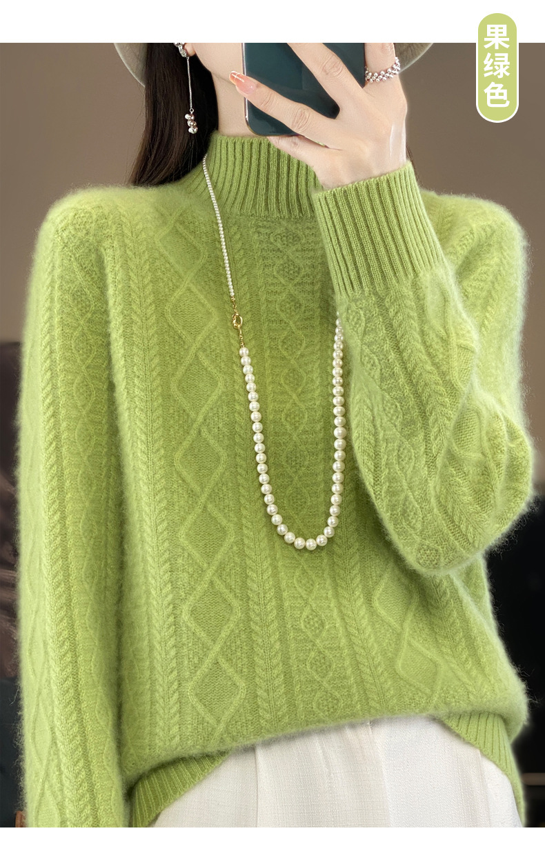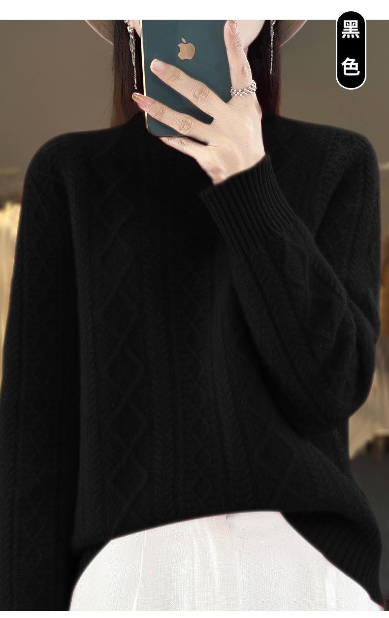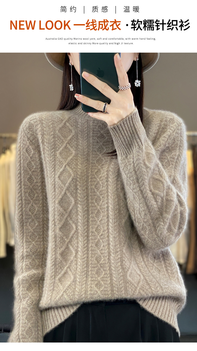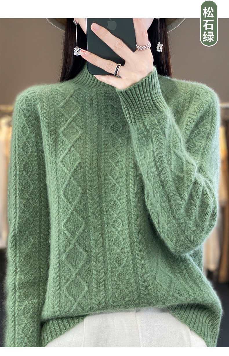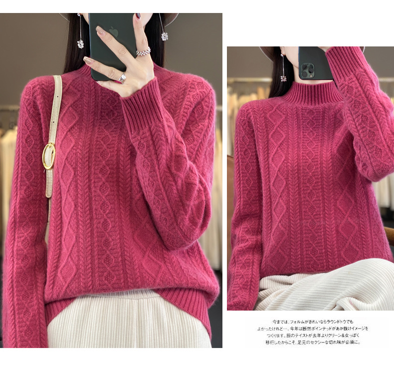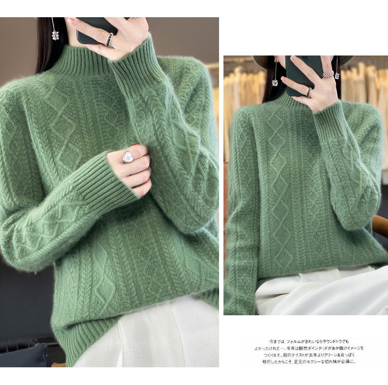 가을과 겨울 새로운 1 차 의류 하프 터틀넥 스웨터 여성용 다이아몬드 트위스트 느슨한 두꺼운 따뜻한 니트 베이스 셔츠 배치