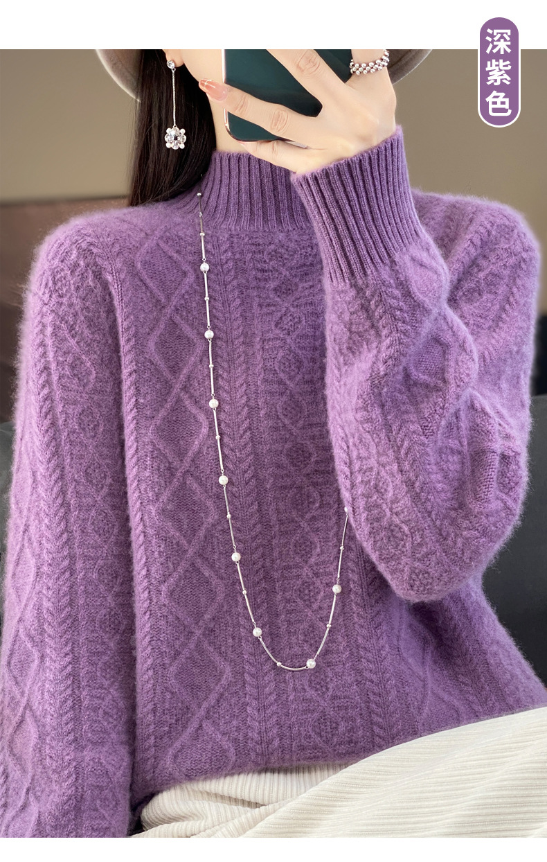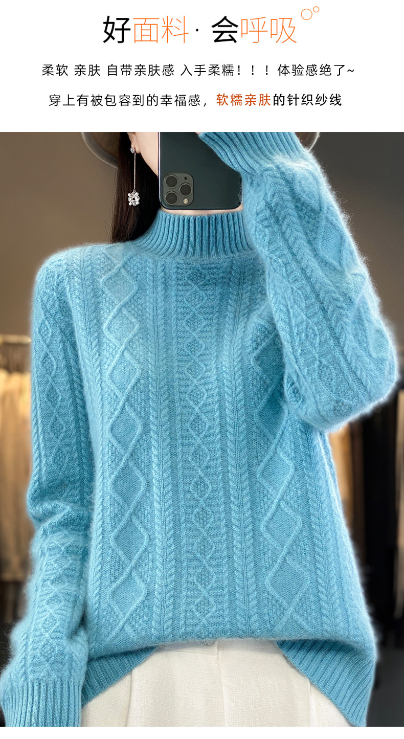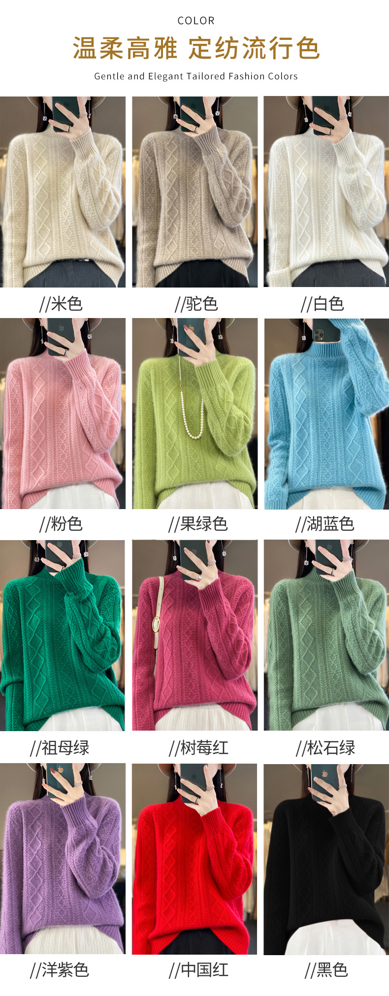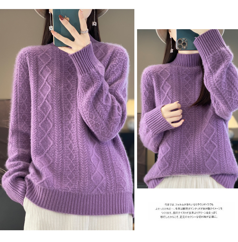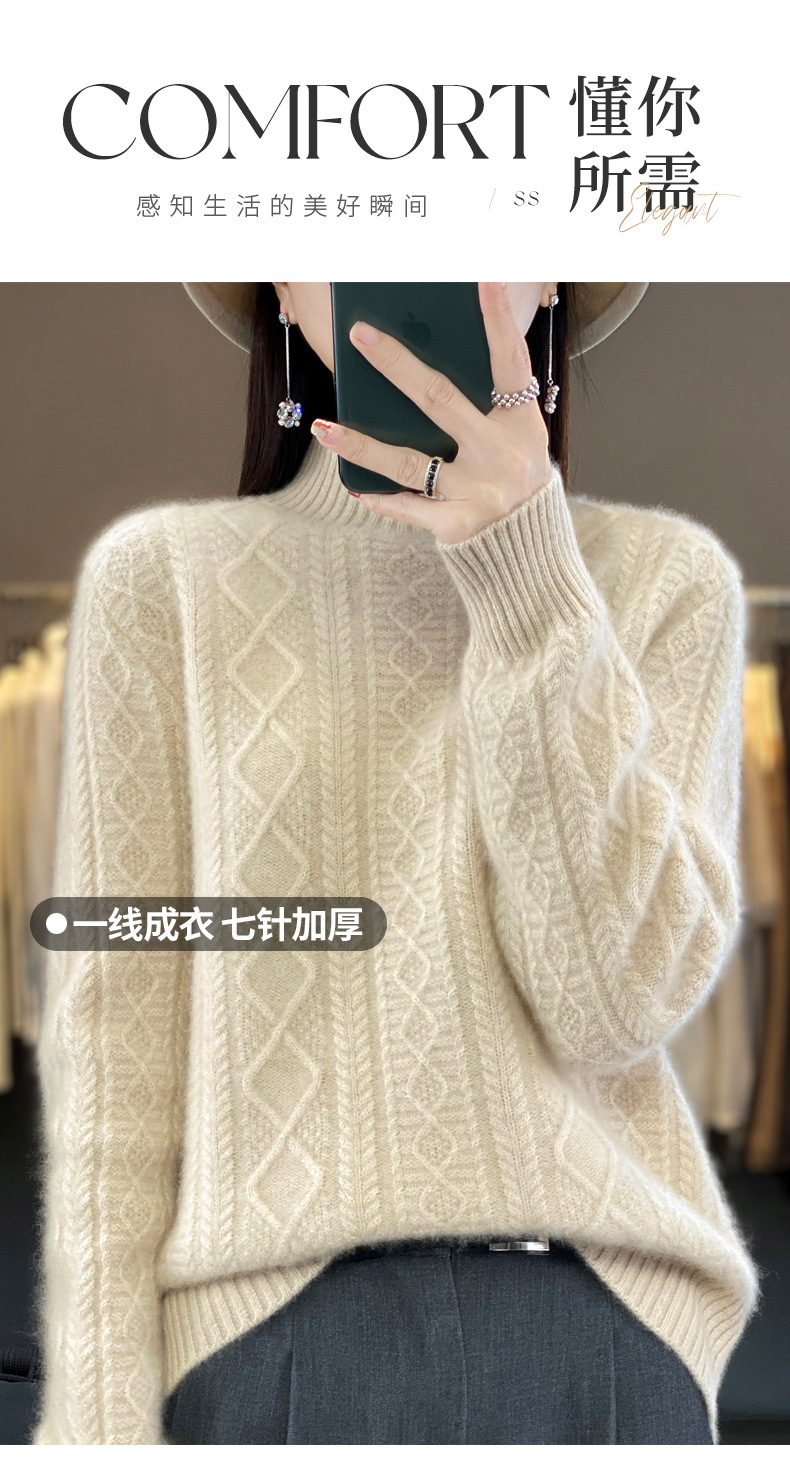 가을과 겨울 새로운 1 차 의류 하프 터틀넥 스웨터 여성용 다이아몬드 트위스트 느슨한 두꺼운 따뜻한 니트 베이스 셔츠 배치