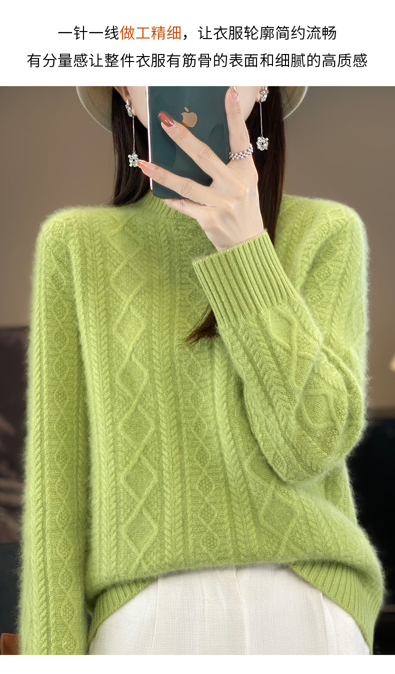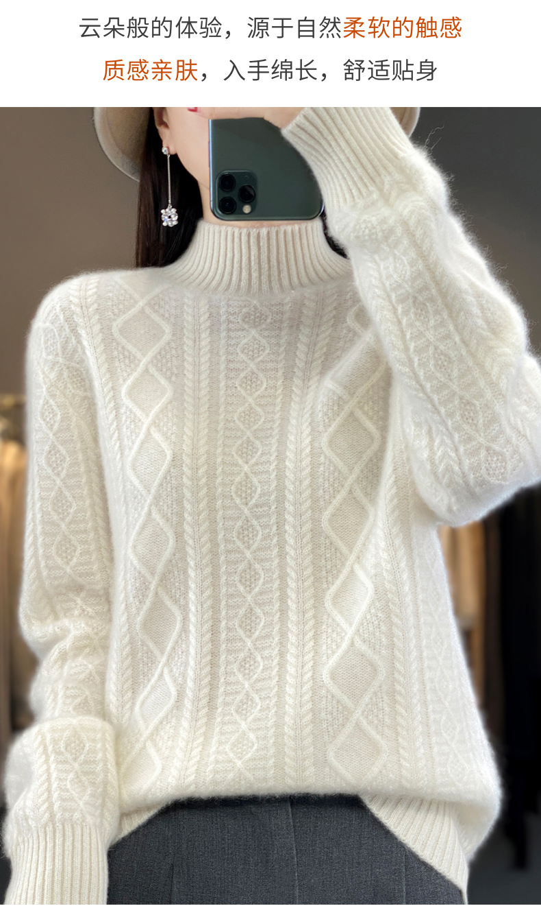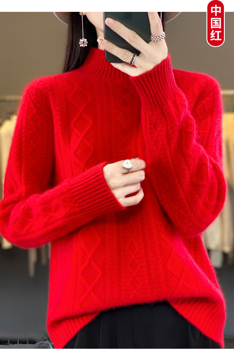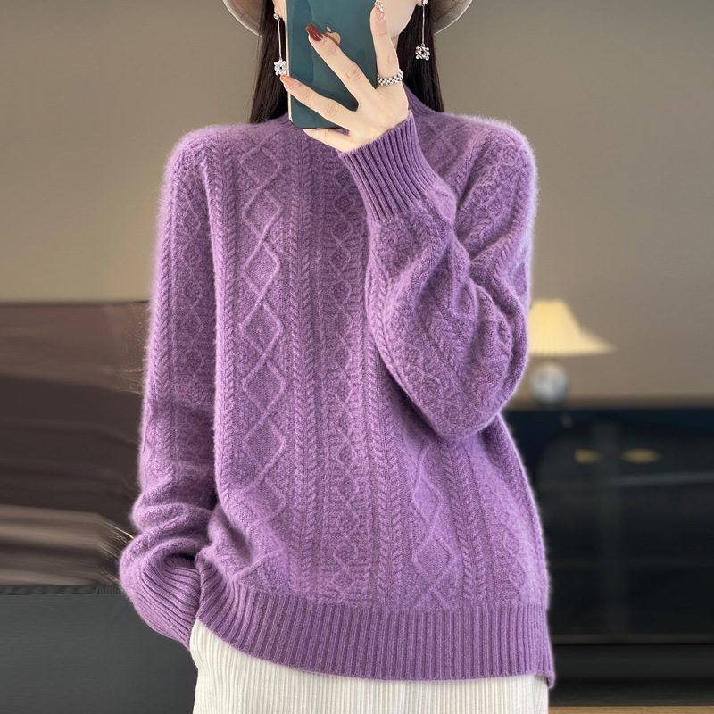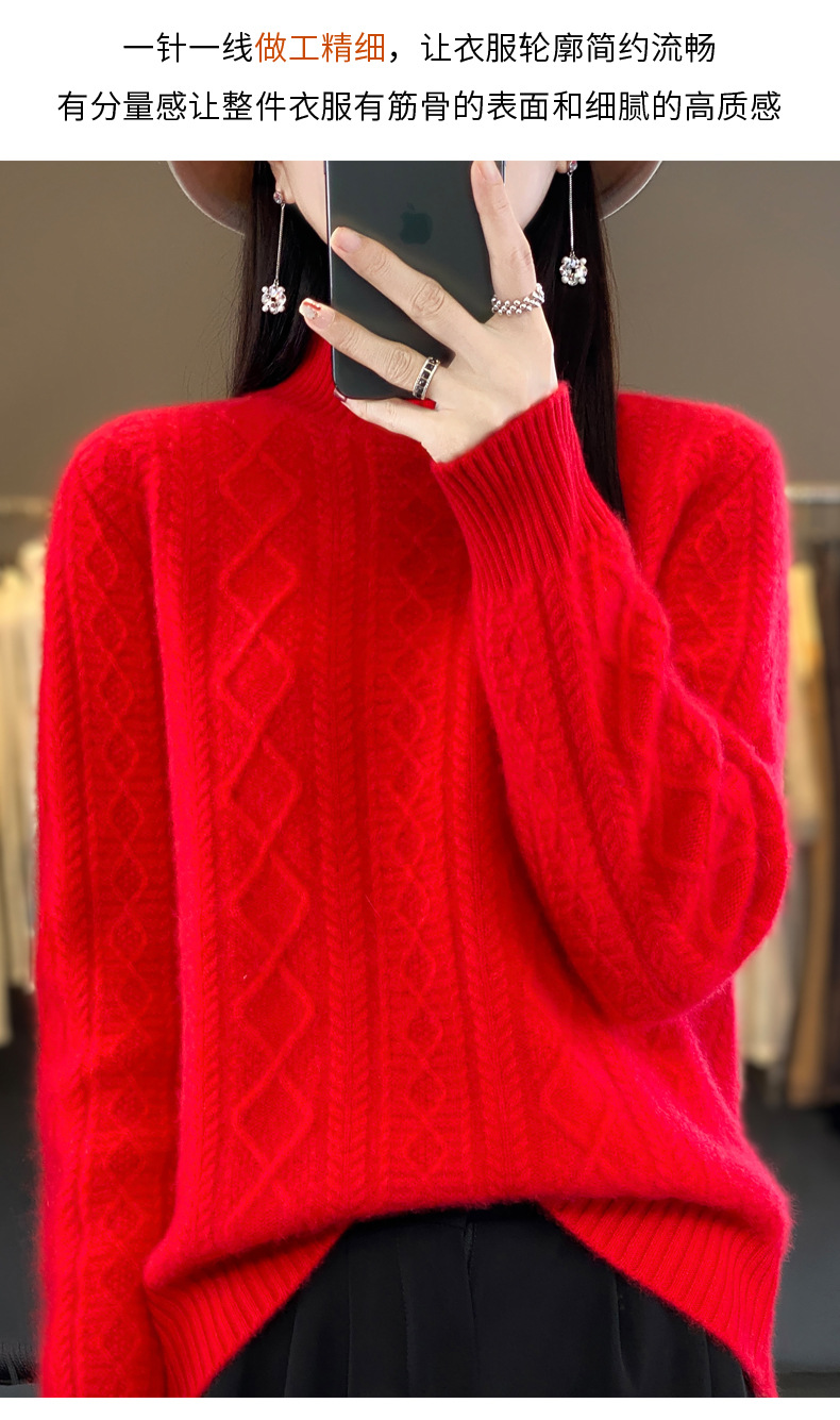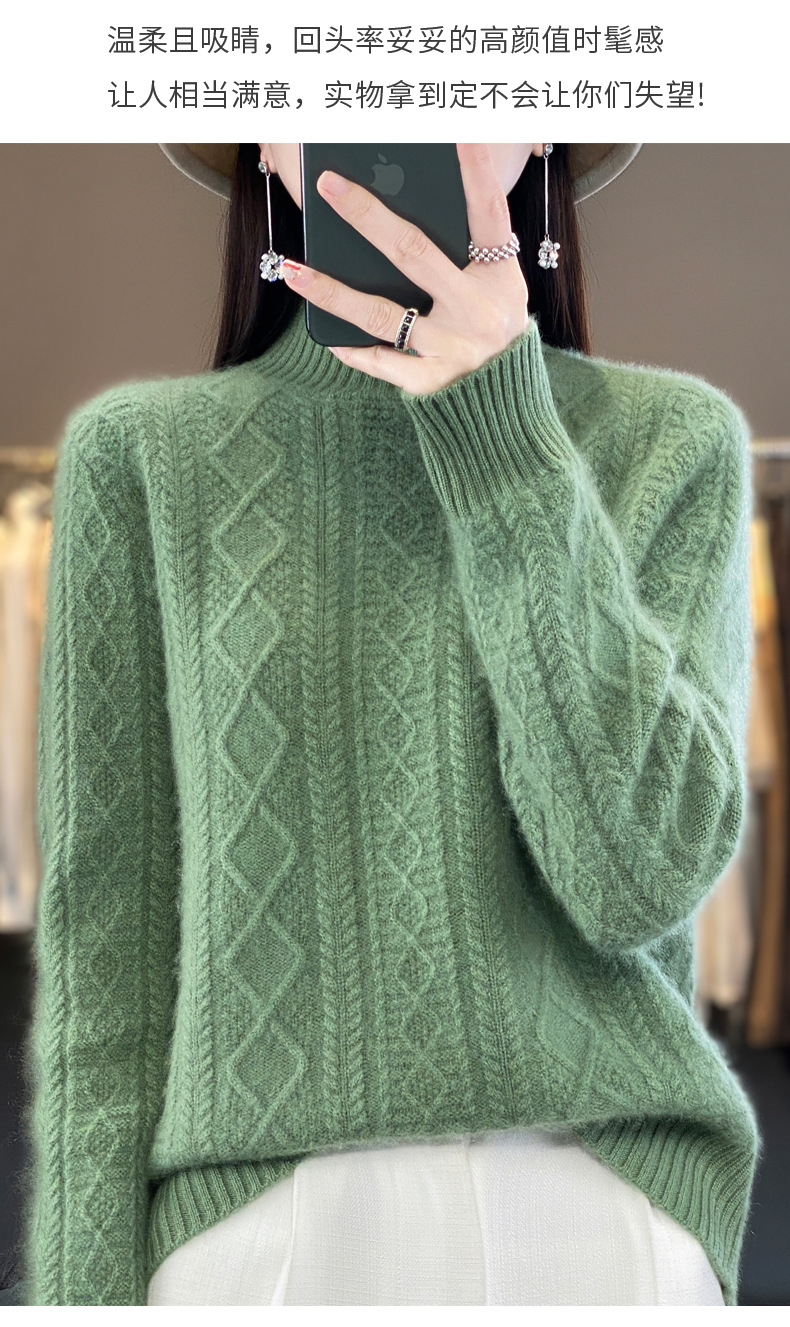 가을과 겨울 새로운 1 차 의류 하프 터틀넥 스웨터 여성용 다이아몬드 트위스트 느슨한 두꺼운 따뜻한 니트 베이스 셔츠 배치