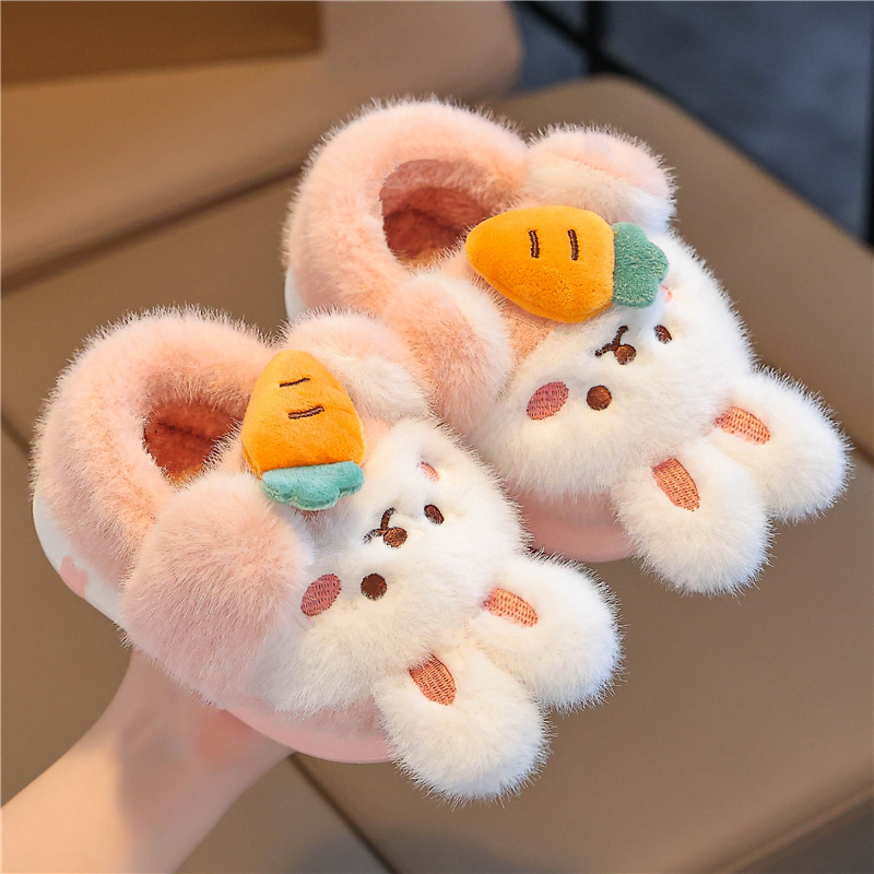 어린이 면화 슬리퍼 소녀 공주 귀여운 가방 따뜻한 플러시 아기 소녀 슬리퍼 겨울 소녀 면화 슬리퍼 실내스토어 가기