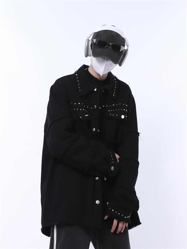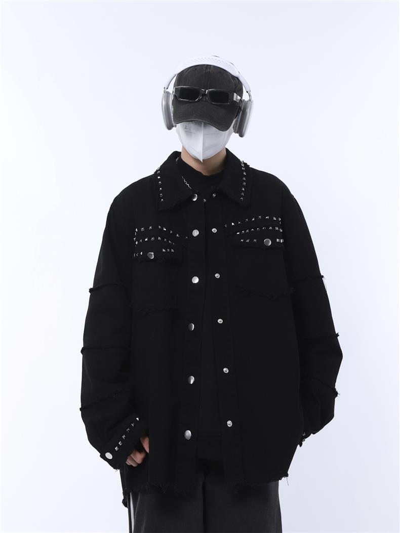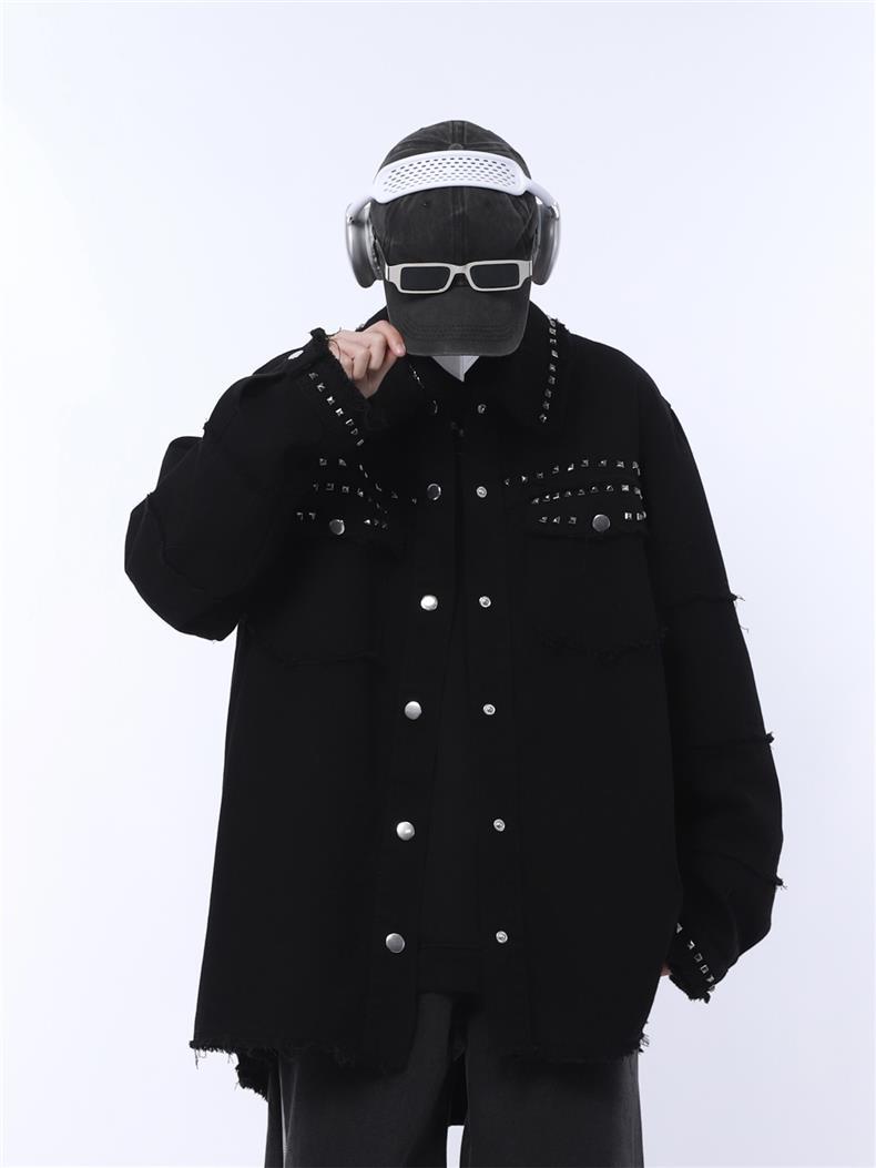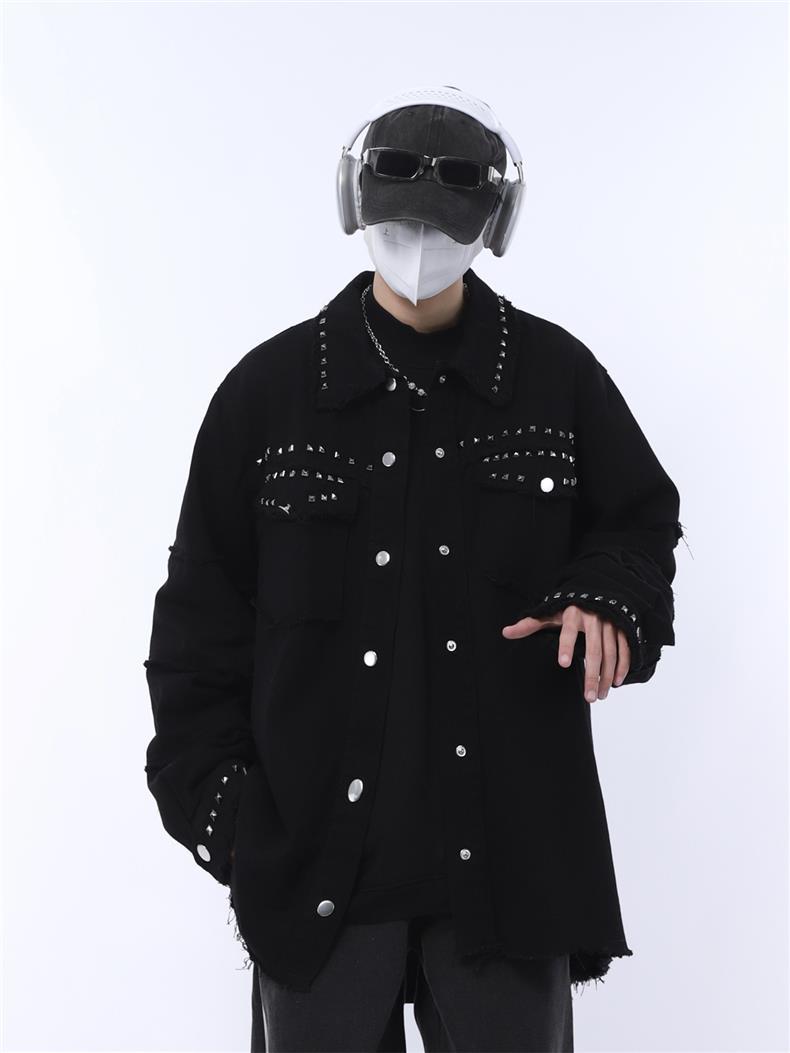 가을 새로운 금속 네일 거친 검은 데님 재킷 남성 트렌드 느슨한 펑크 재킷 머리카락 세대스토어 가기