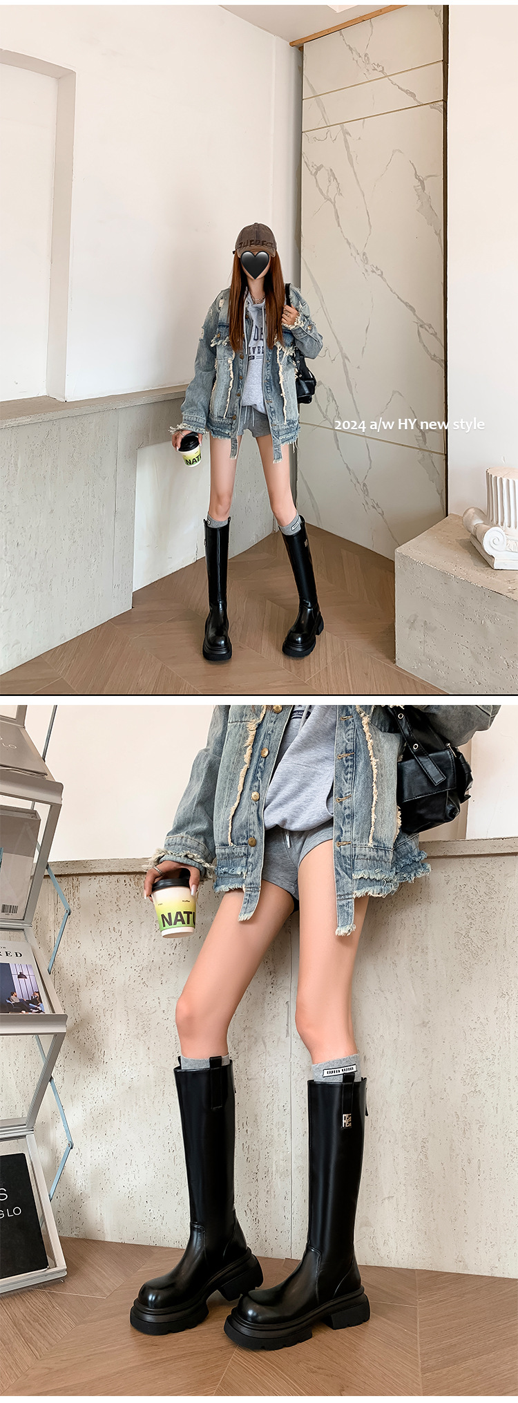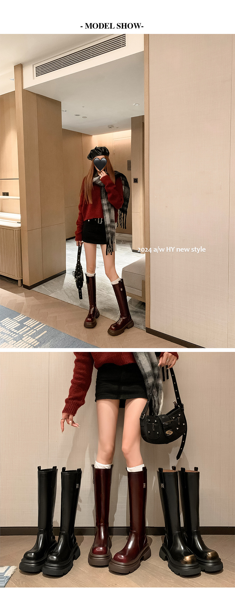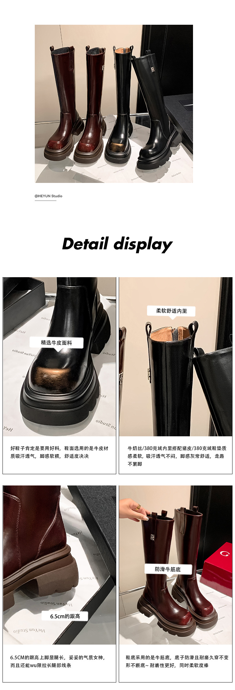 작은 두꺼운 바닥 무릎 높은 부츠 여성 정품 가죽 레트로 다크 브라운 부츠 영국 스타일 라운드 발가락 올매치 나이트 부츠스토어 가기