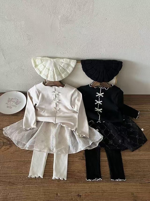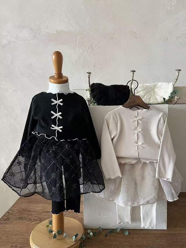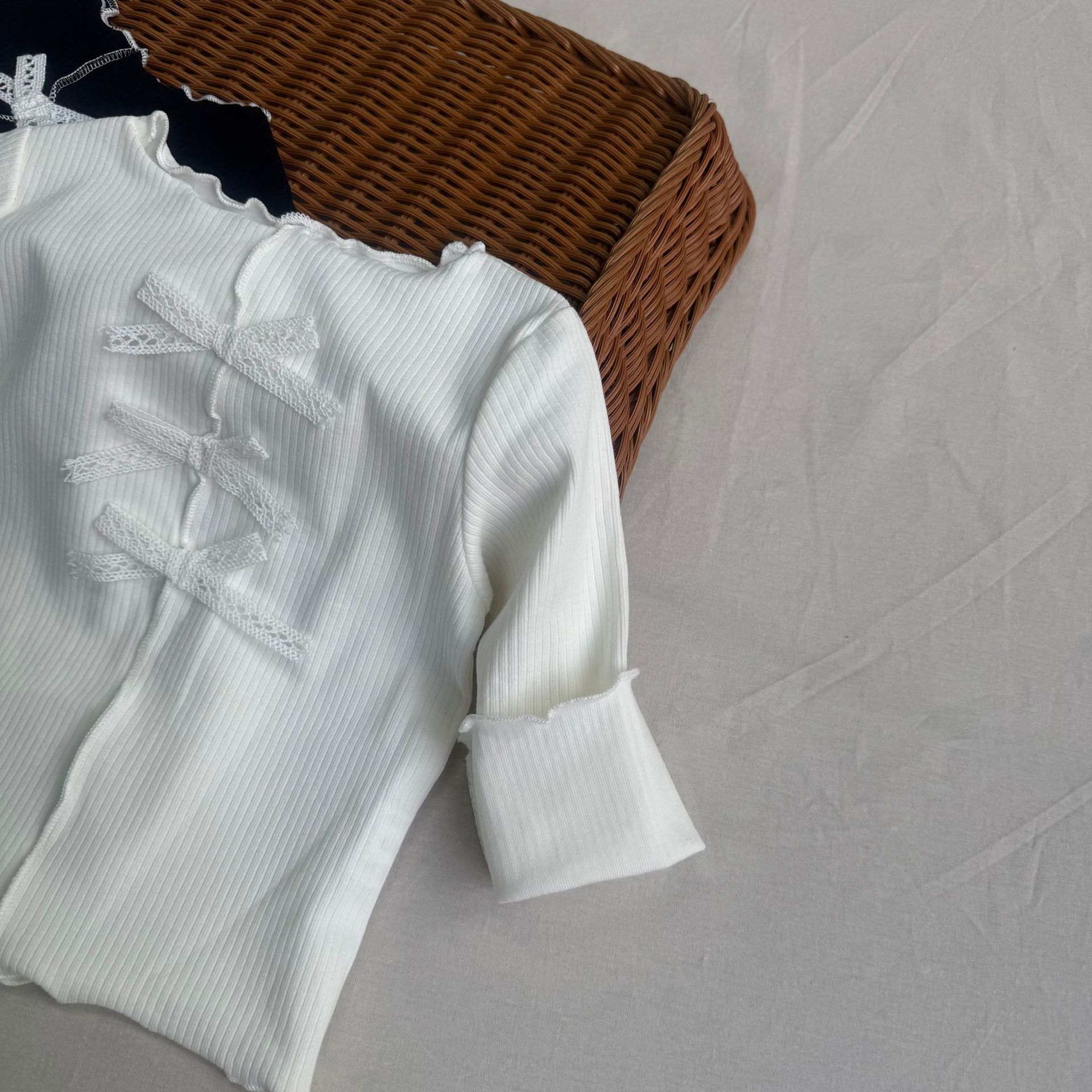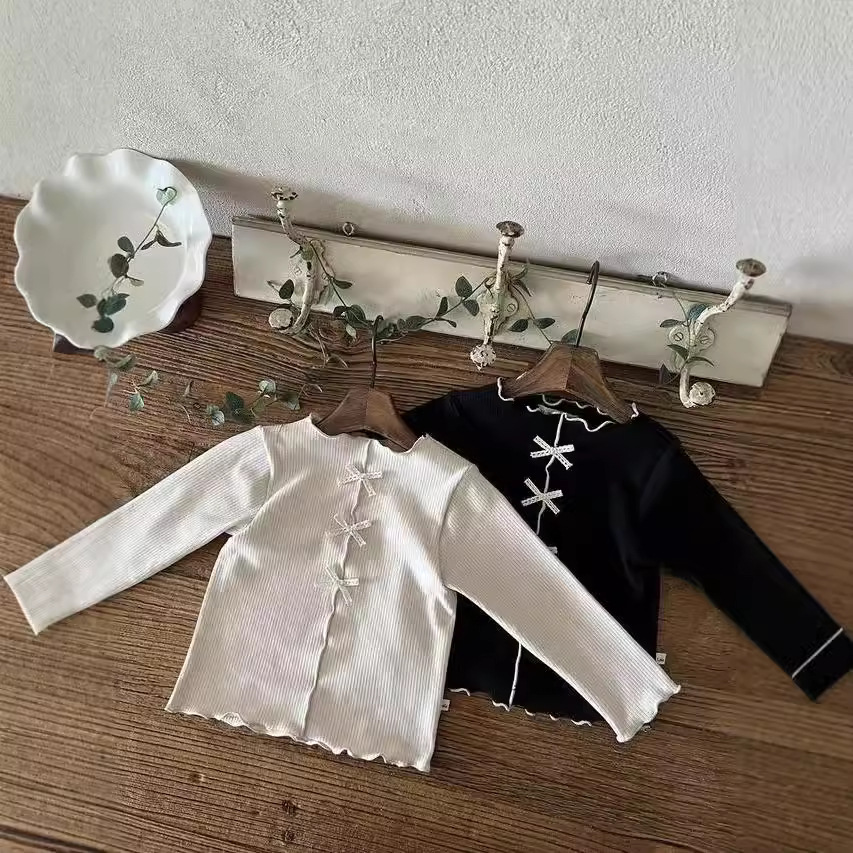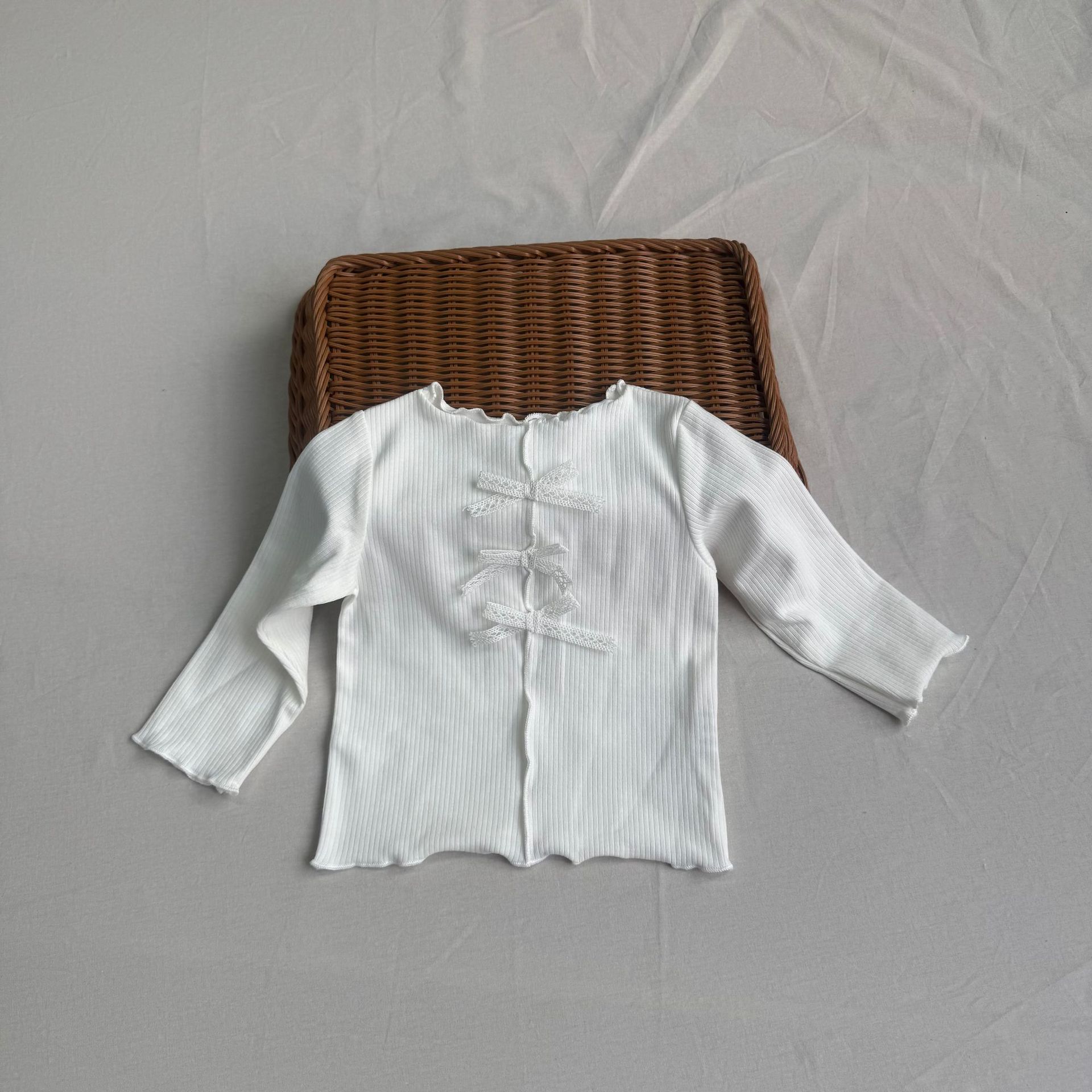 25 봄 가을 한국 스타일 아동 티셔츠 인스 북유럽 스타일 골지 긴팔 이너웨어 리본 아동 긴팔 상의