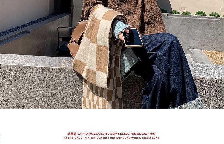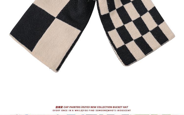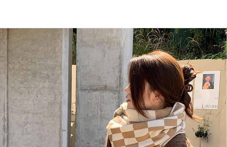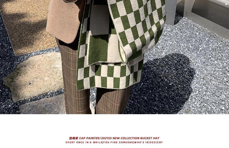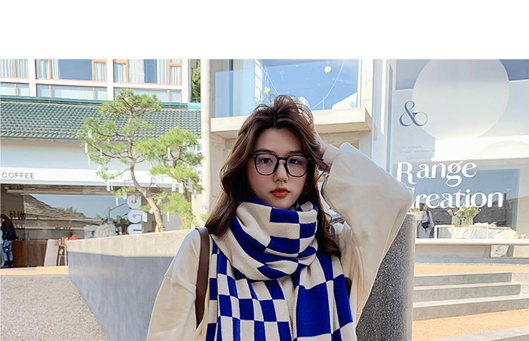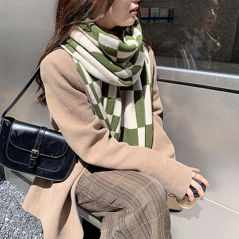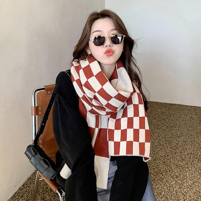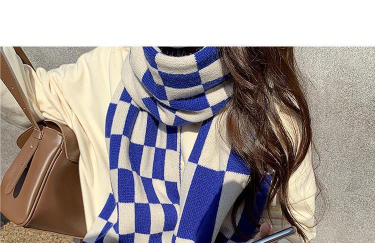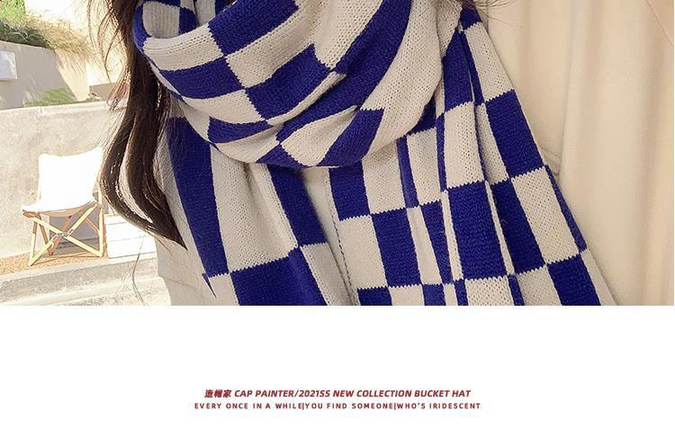 새로운 한국 스타일의 높은 색상 가치 귀여운 올 매치 바둑판 따뜻한 니트 스카프 도매 스카프 여성의 가을과 겨울 학생스토어 가기