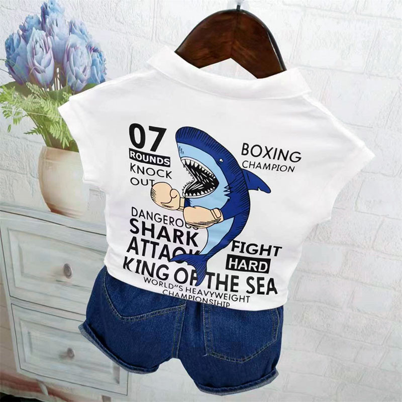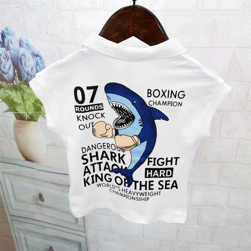 어린이 어린 소년 서양식 상어 반팔 티셔츠 여름착용 통기성 아동복 반소매 탑 아기 면화 및 리넨