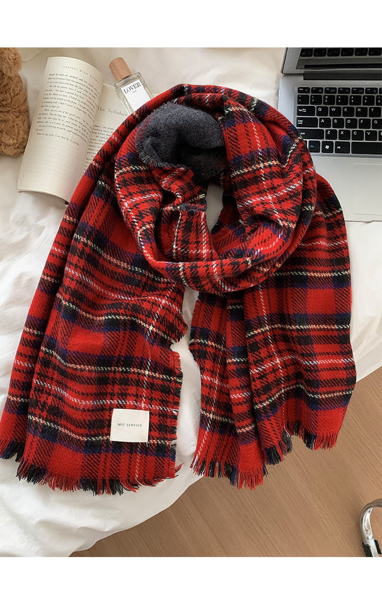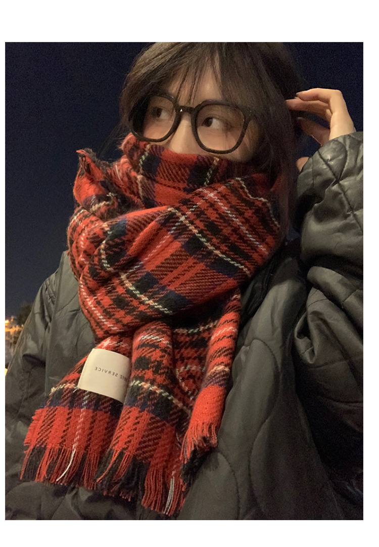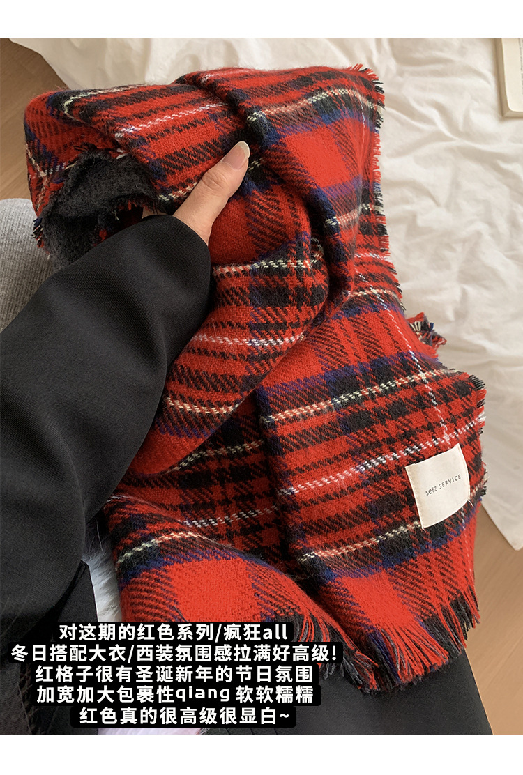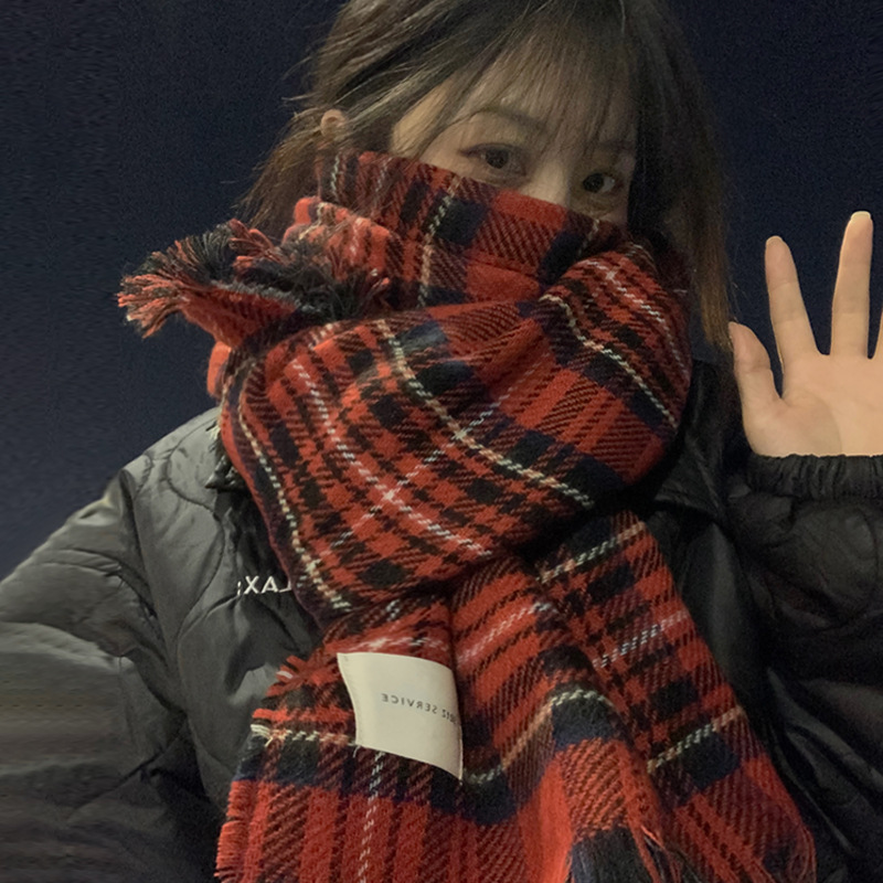 빨간 격자 무늬 스카프 여자 겨울 2024 새로운 하이 엔드 센스 캐시미어 남성용 목도리 학생 커플 스카프스토어 가기