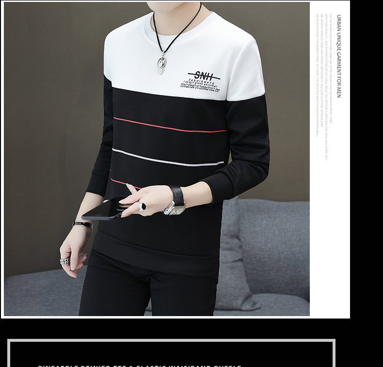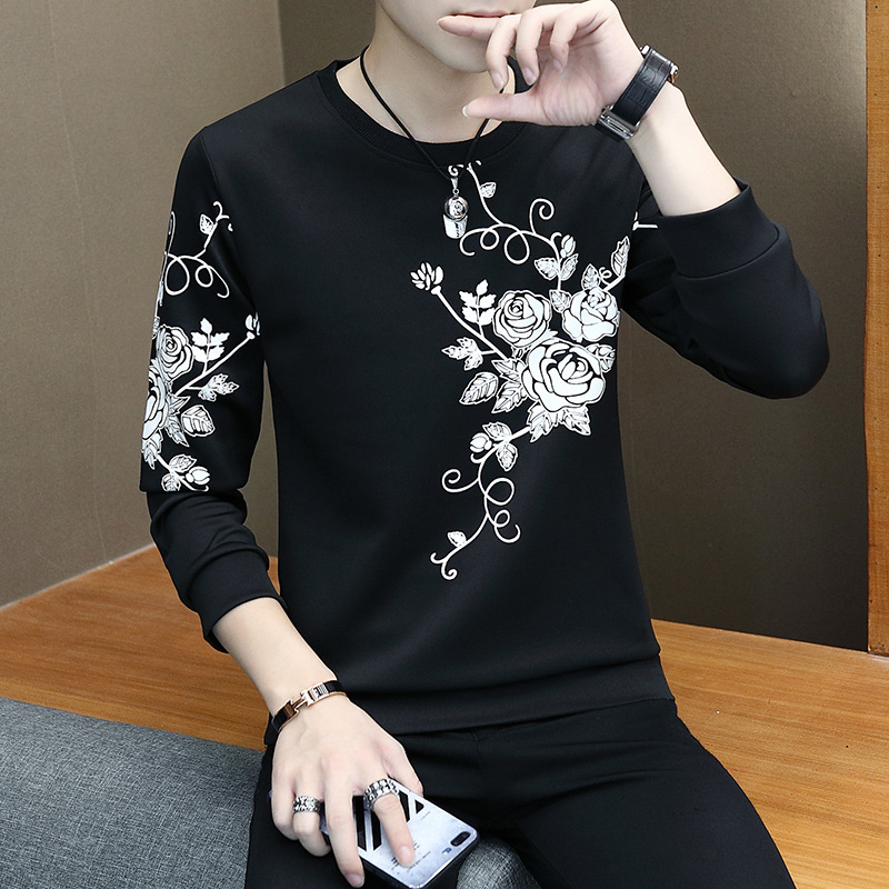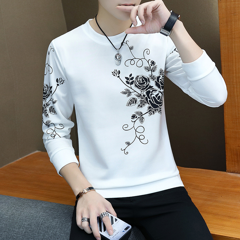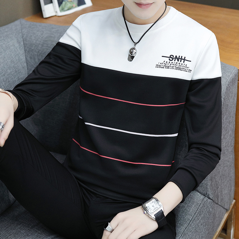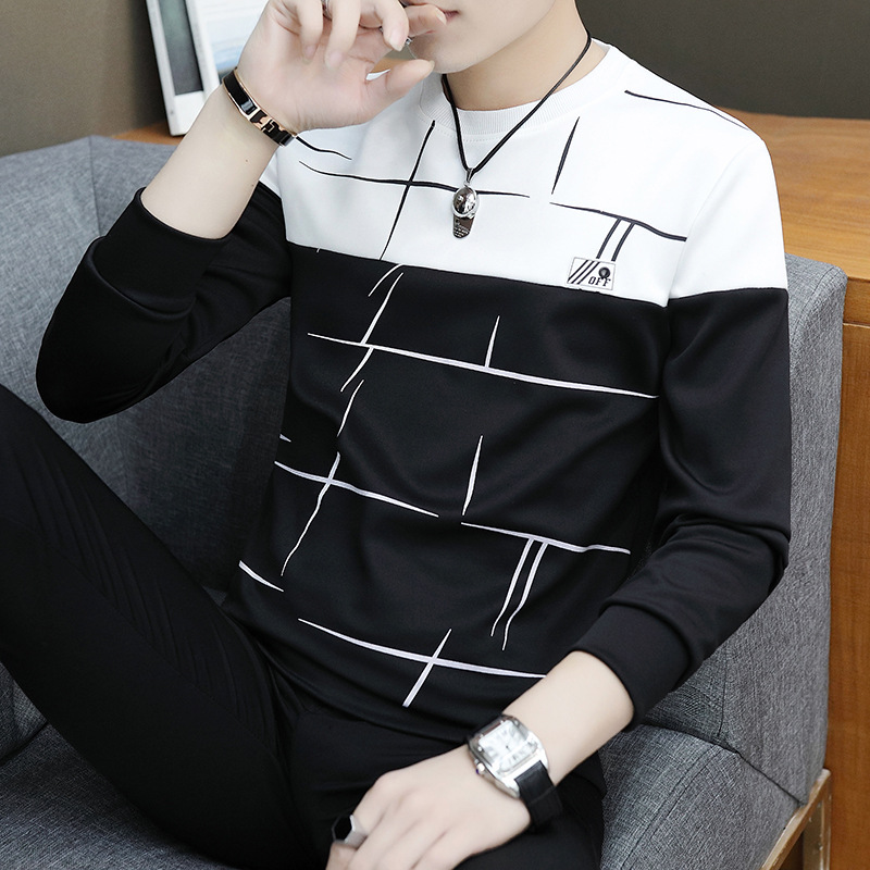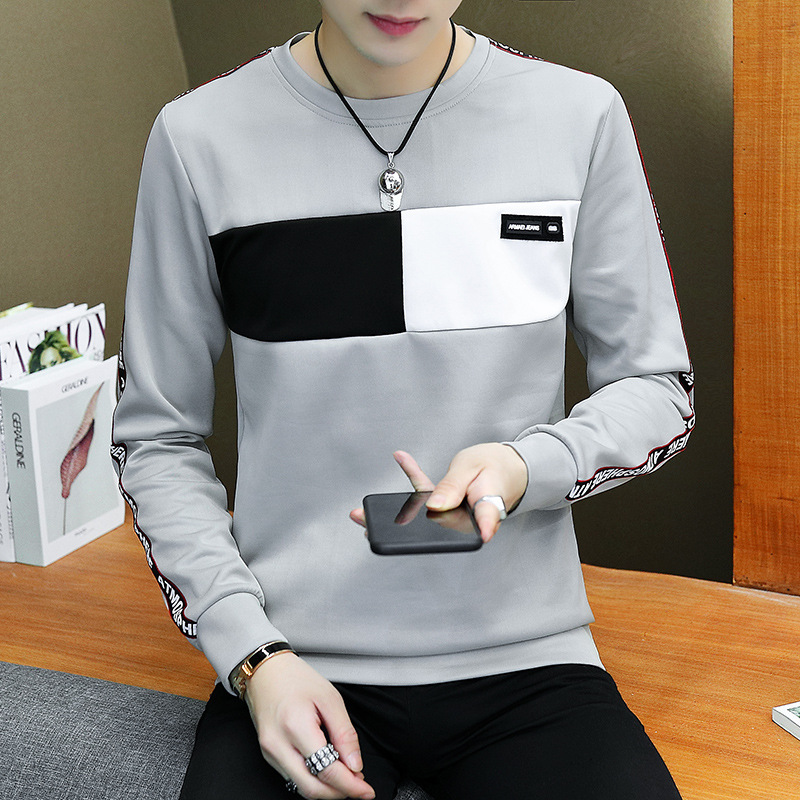 봄과 가을 긴팔 티셔츠 남성용 얇은 패셔블 올매치 남성베이스 셔츠 잘 생긴 새 스타일 탑 옷 가을 옷