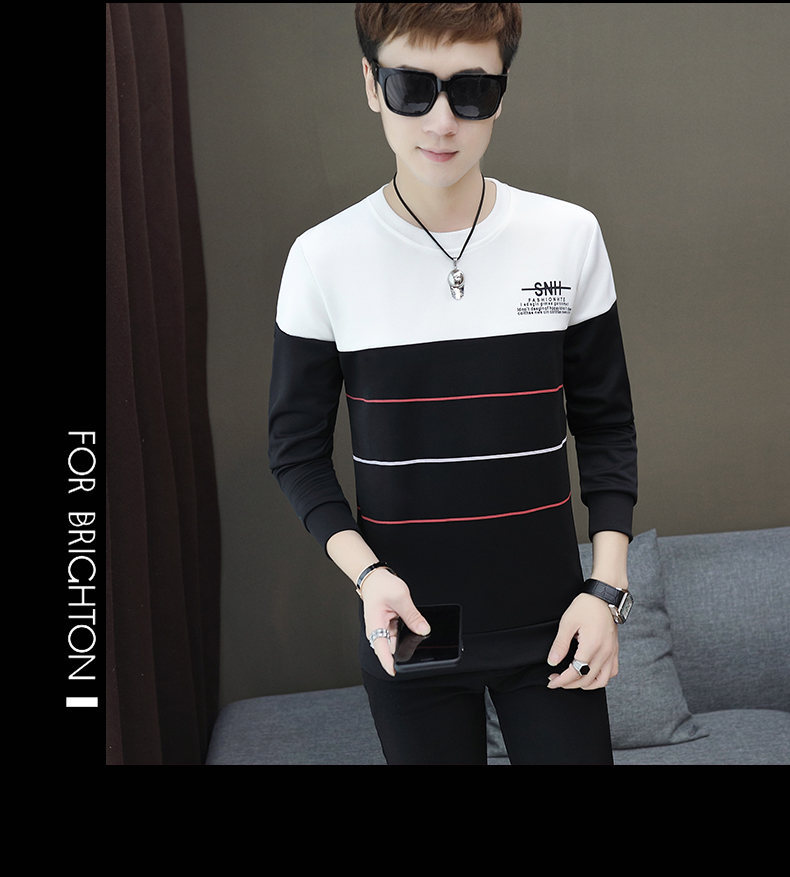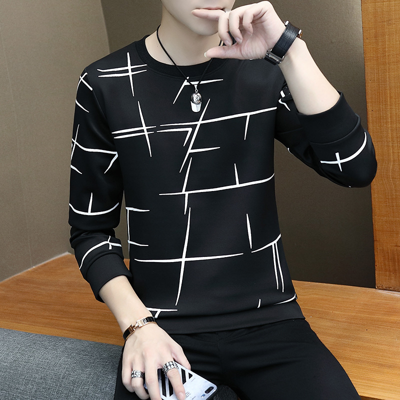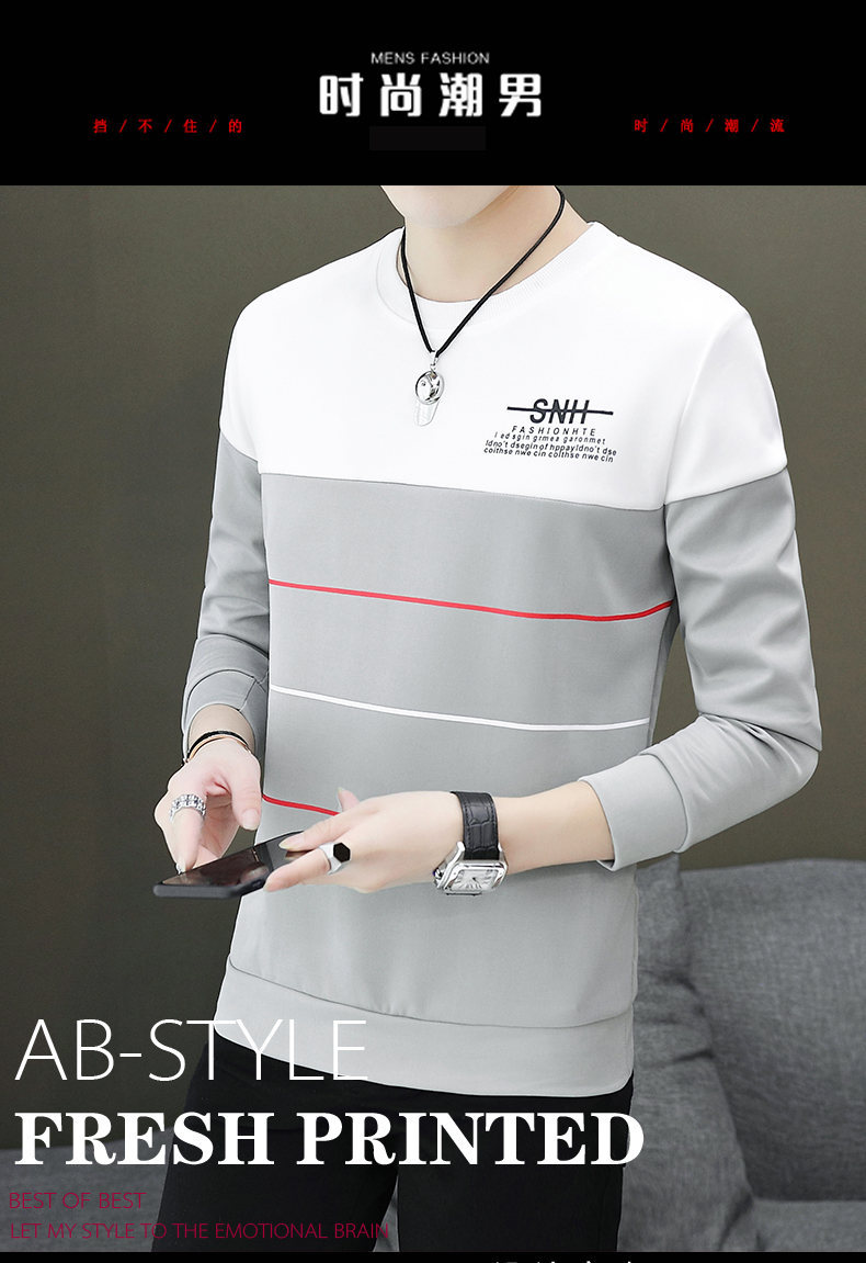 봄과 가을 긴팔 티셔츠 남성용 얇은 패셔블 올매치 남성베이스 셔츠 잘 생긴 새 스타일 탑 옷 가을 옷스토어 가기