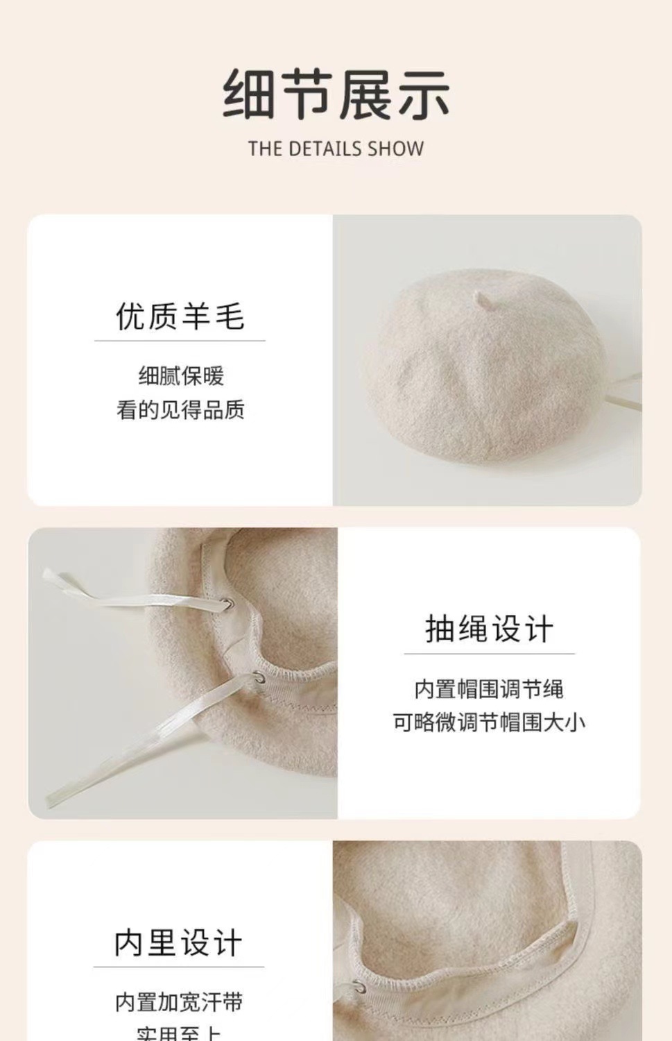 • 성인 베이지 모자 둘레 54-59cm