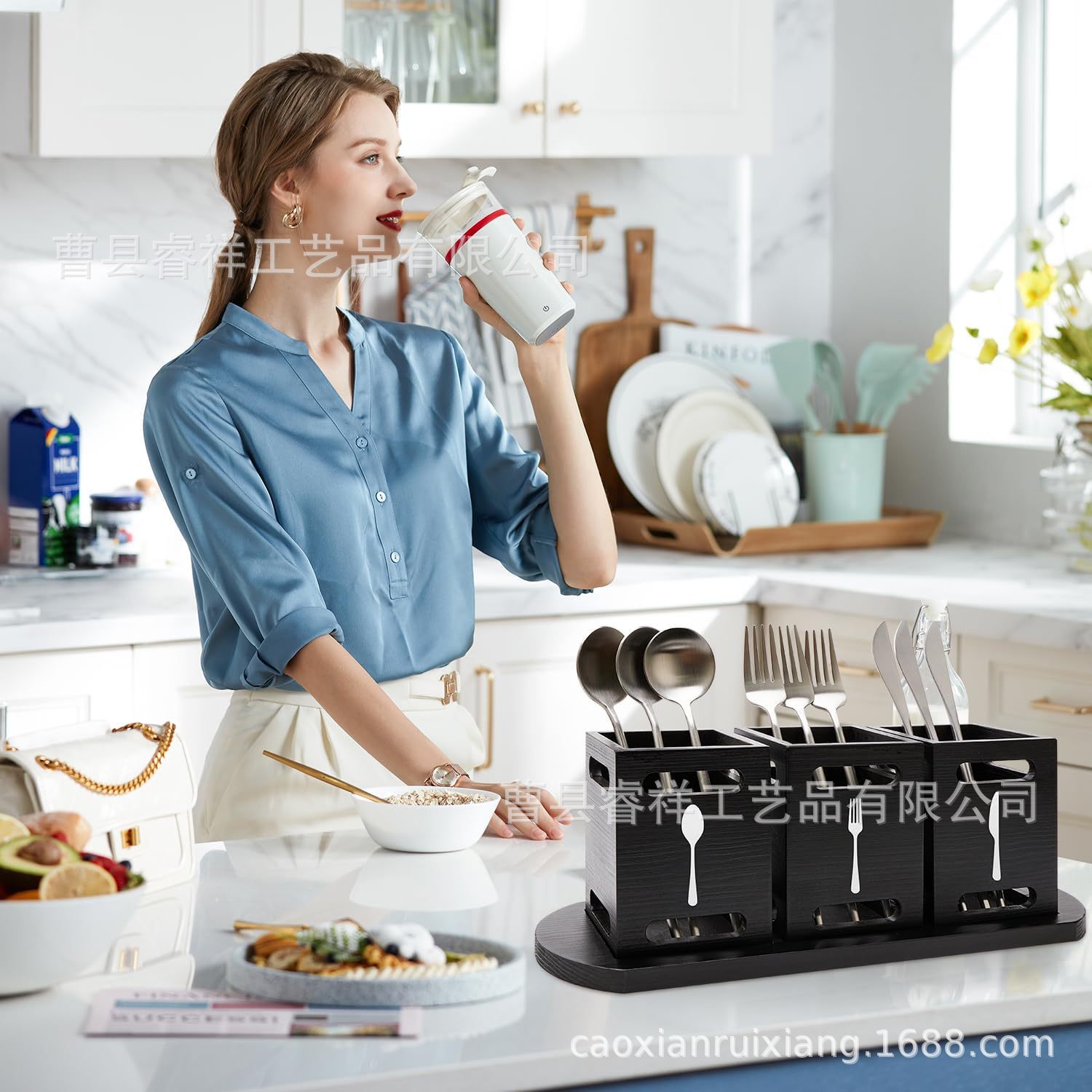 나무 식기 저장 상자 단단한 나무 간단한 구획 저장 상자 젓가락 나이프와 포크 피트 상자 숟가락 다목적 저장스토어 가기