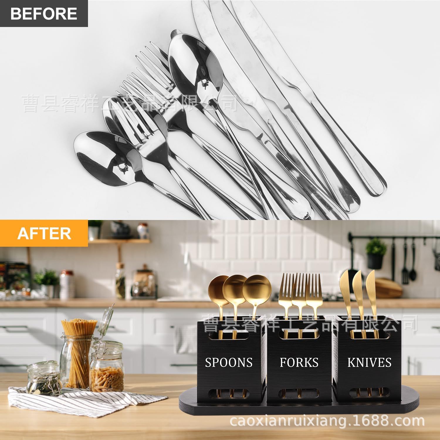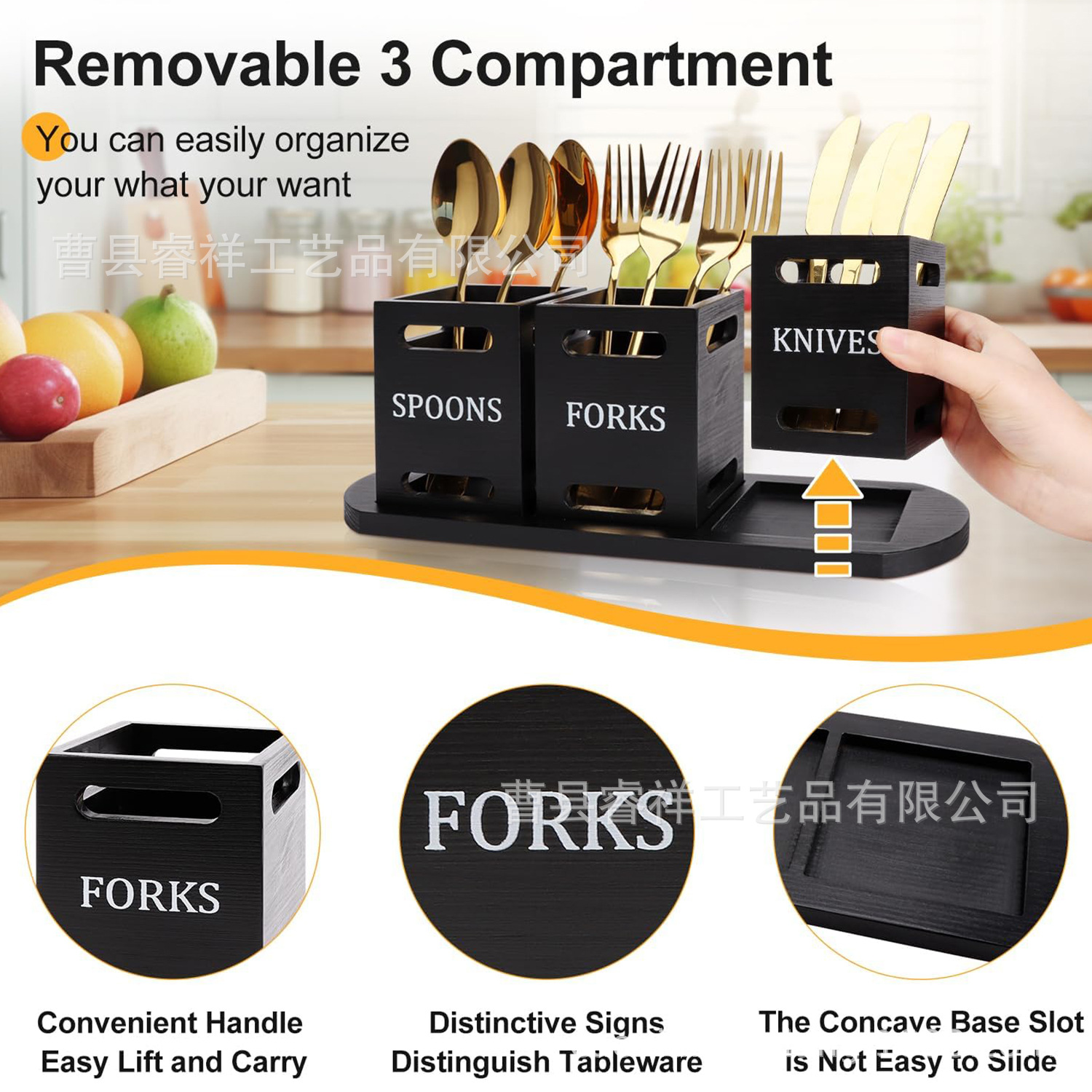 나무 식기 저장 상자 단단한 나무 간단한 구획 저장 상자 젓가락 나이프와 포크 피트 상자 숟가락 다목적 저장