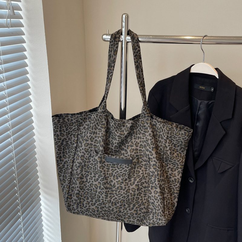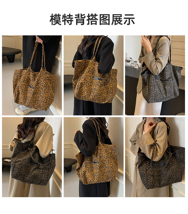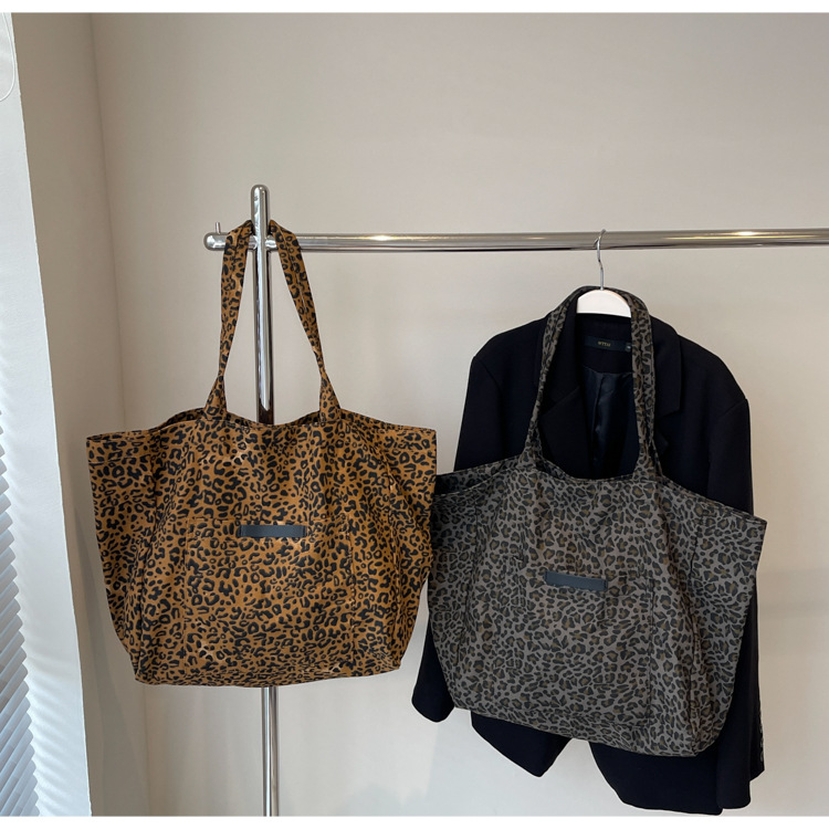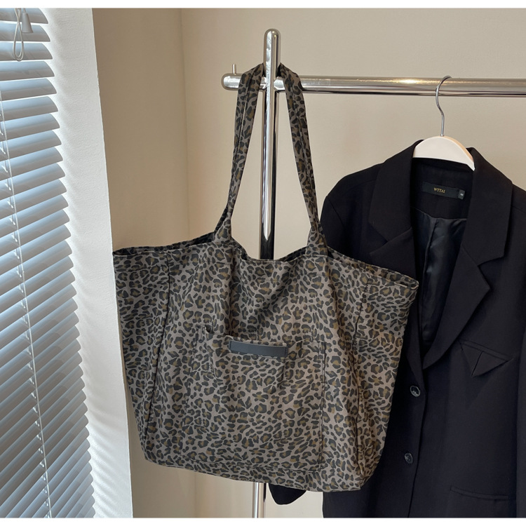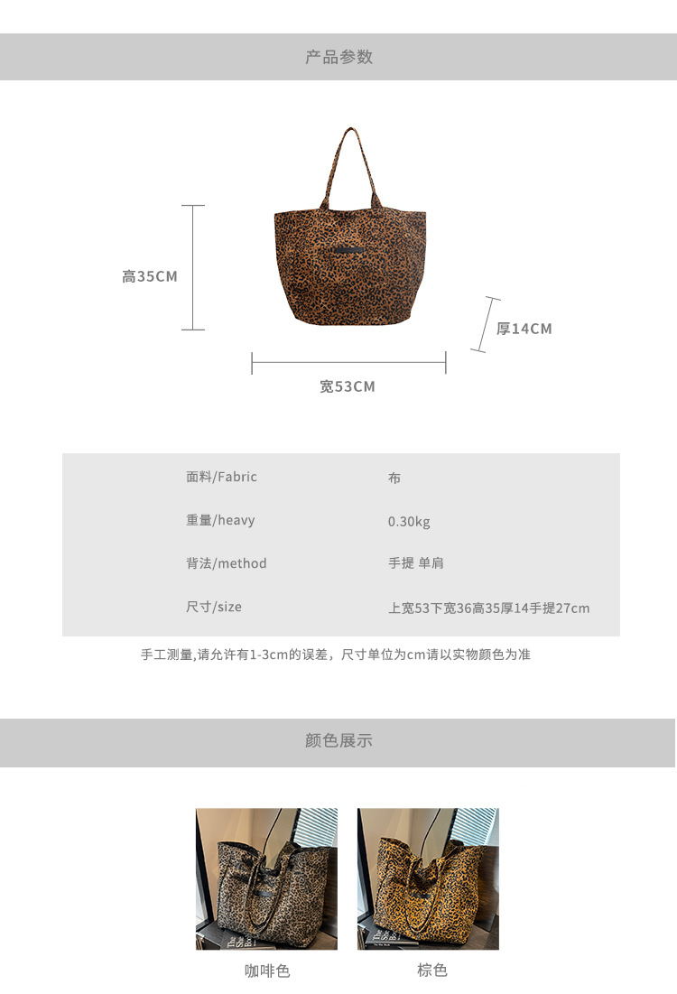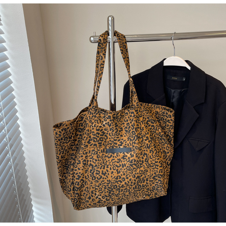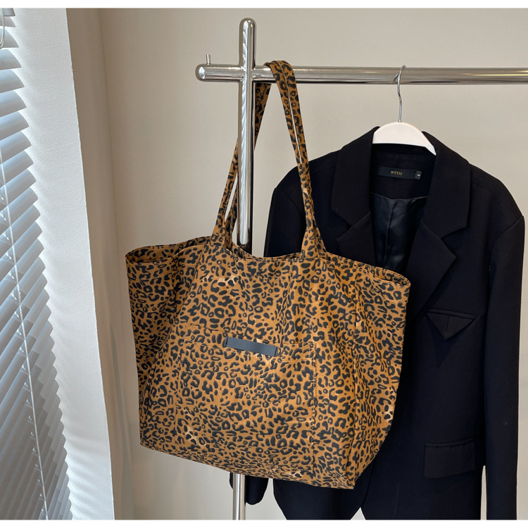 대용량 레오파드 무늬 패션 어깨 가방 가을과 겨울 새로운 독특한 캔버스 토트 가방 쇼핑백 모든 경기 여성 여행 가방