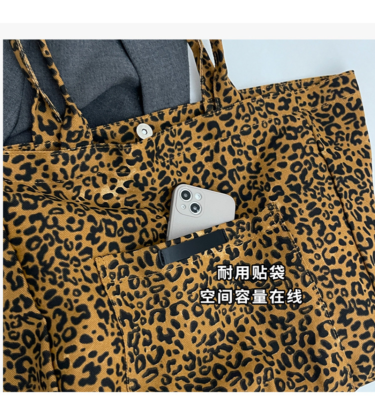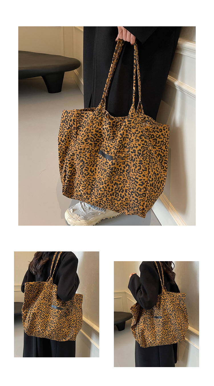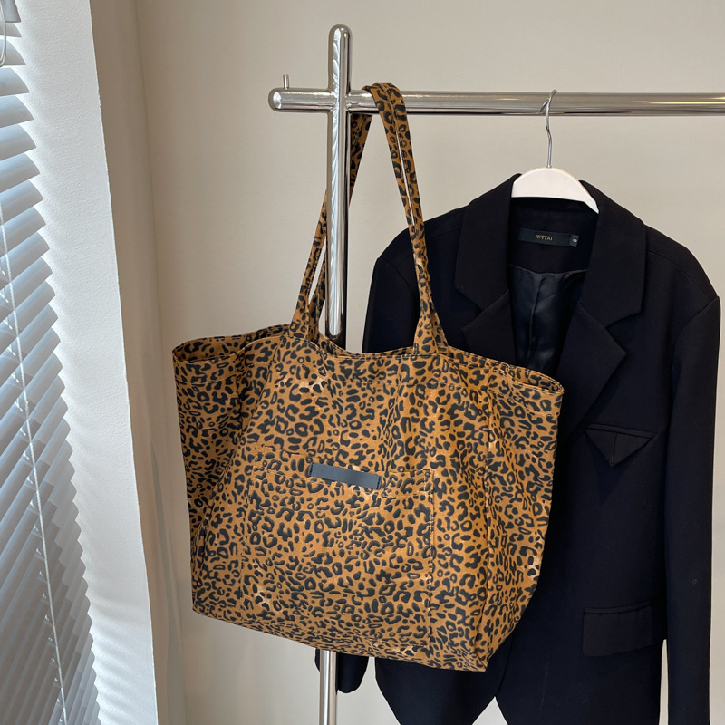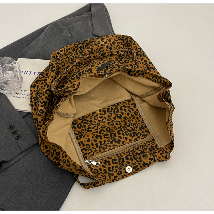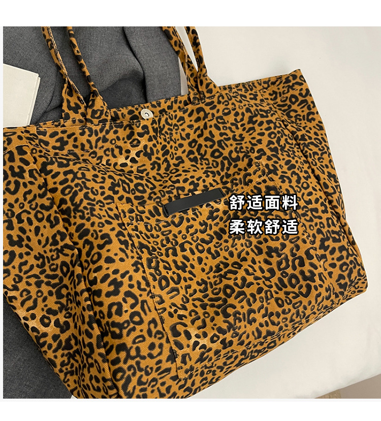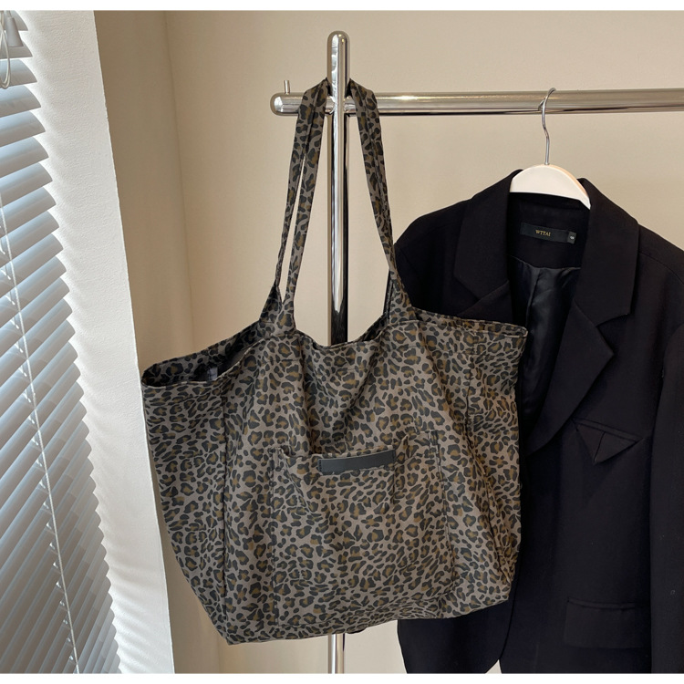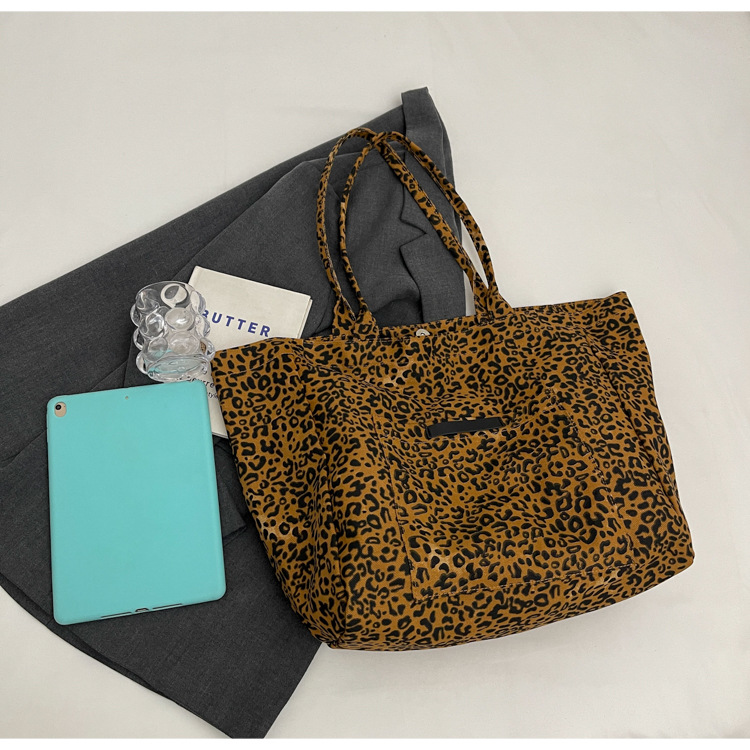 대용량 레오파드 무늬 패션 어깨 가방 가을과 겨울 새로운 독특한 캔버스 토트 가방 쇼핑백 모든 경기 여성 여행 가방