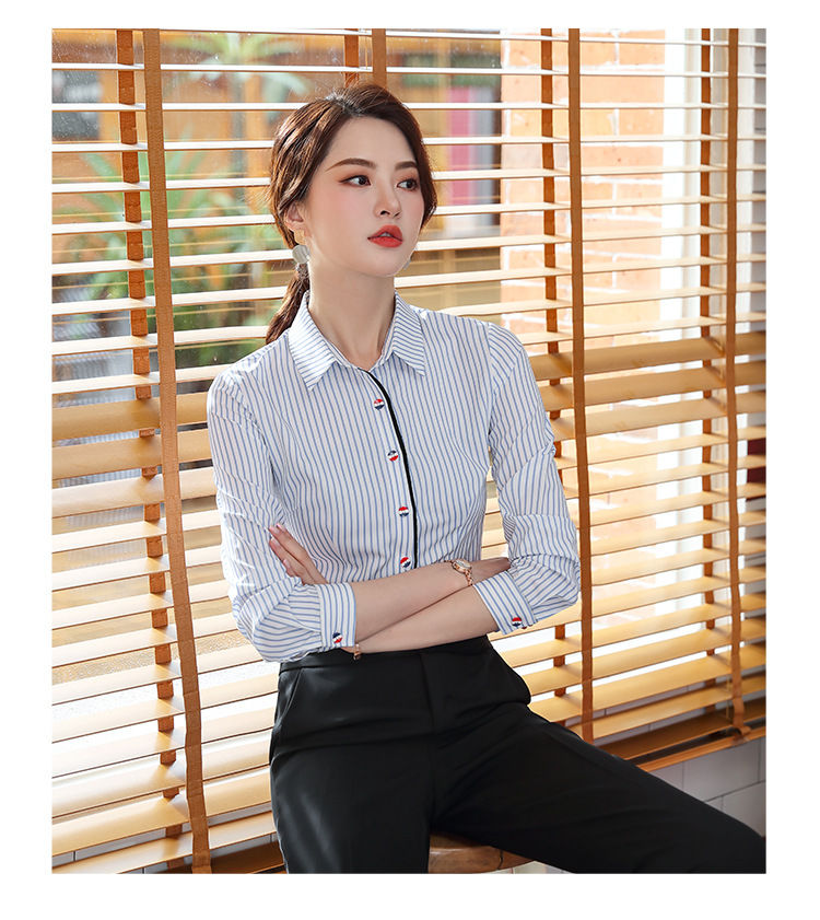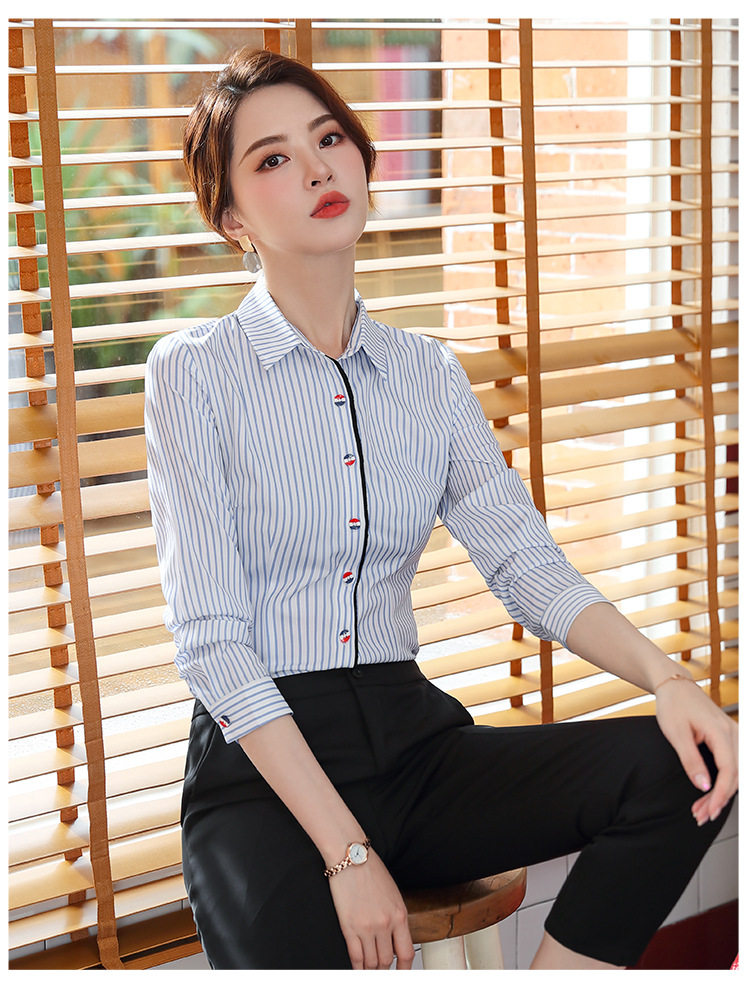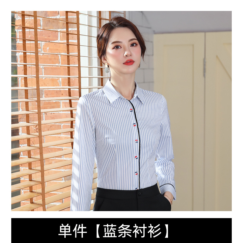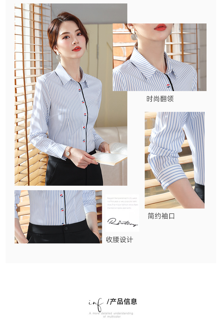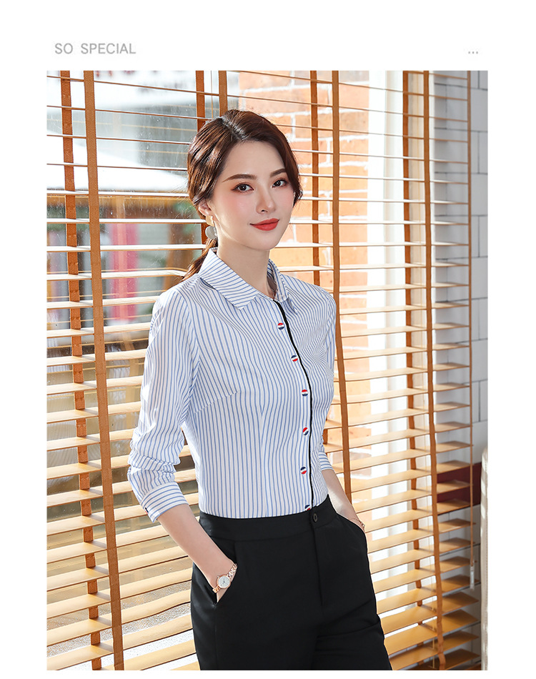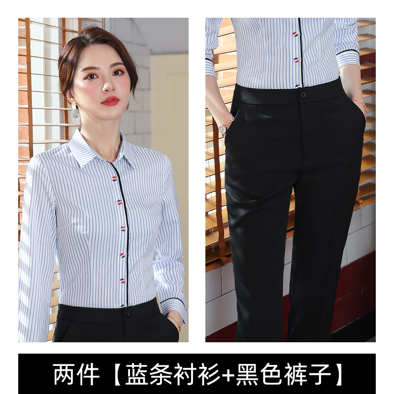 세븐 밸리 니앙 호텔 웨이터 작업복 긴 소매 셔츠 여성 케이터링 호텔 고객 서비스 프론트 데스크 캐셔 스트라이프 셔츠스토어 가기