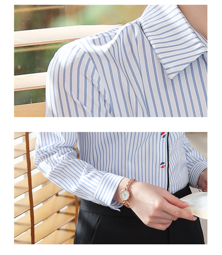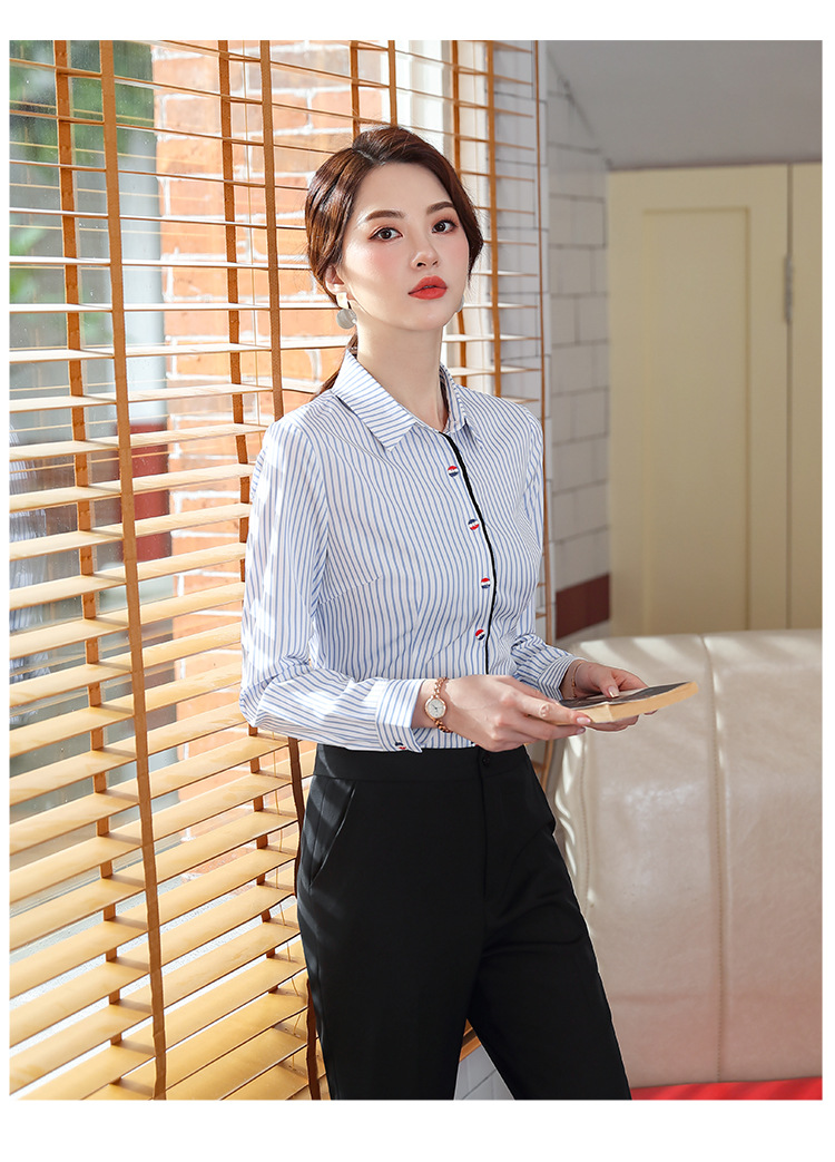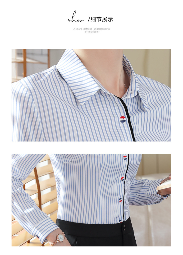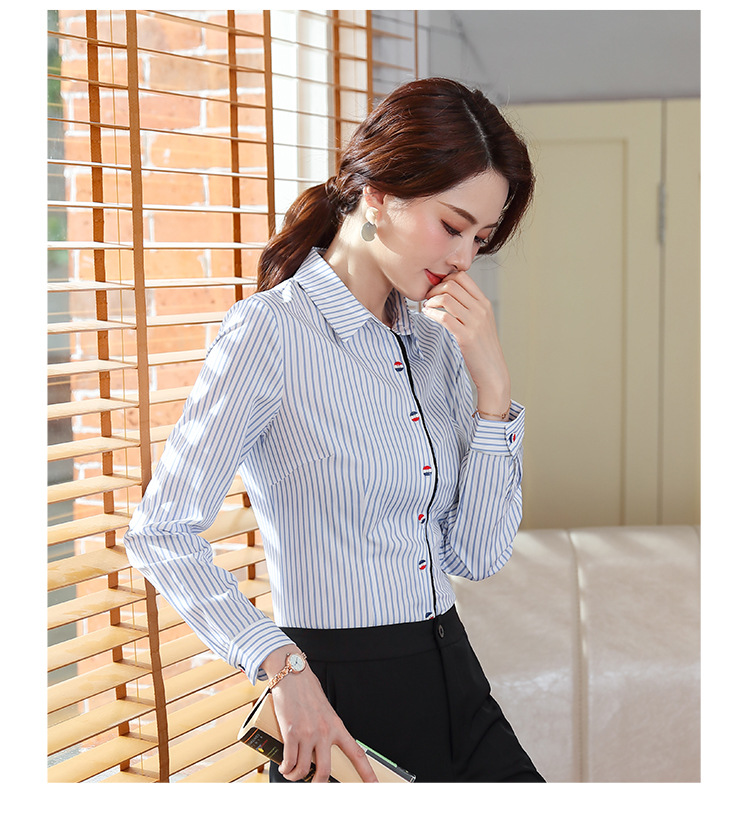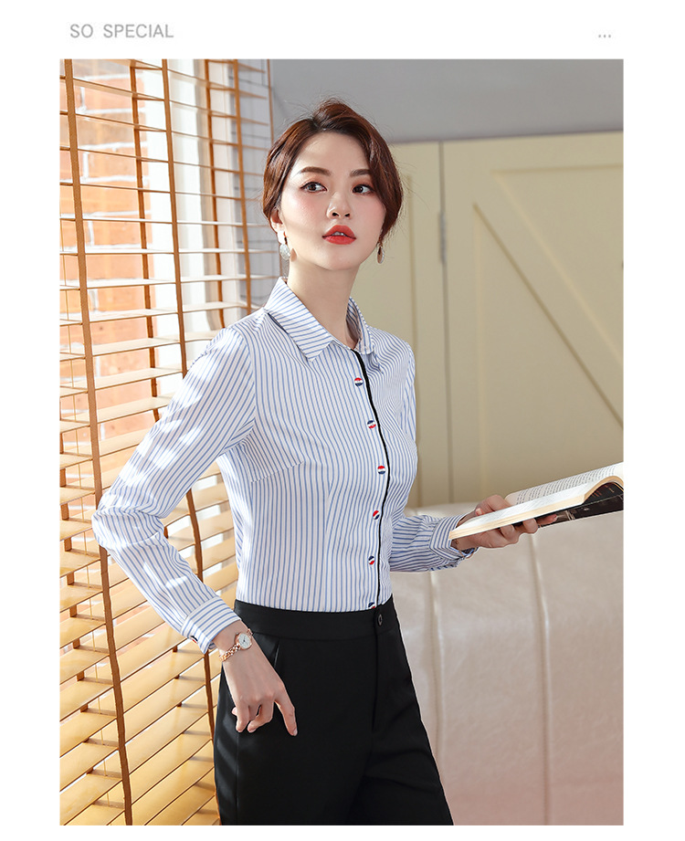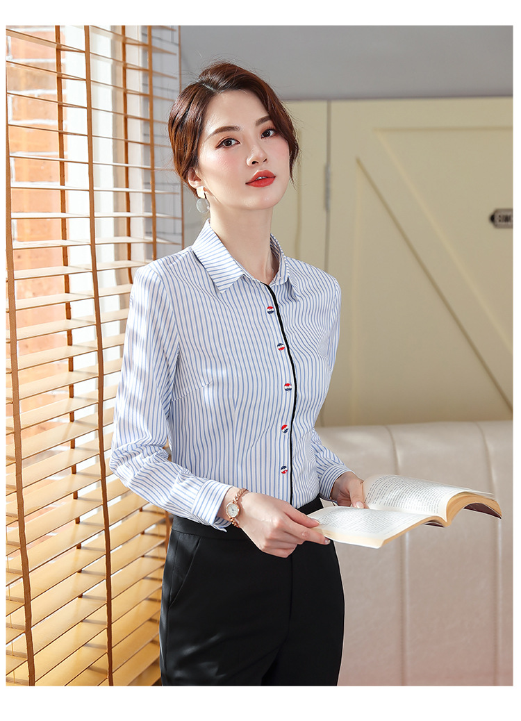 세븐 밸리 니앙 호텔 웨이터 작업복 긴 소매 셔츠 여성 케이터링 호텔 고객 서비스 프론트 데스크 캐셔 스트라이프 셔츠스토어 가기
