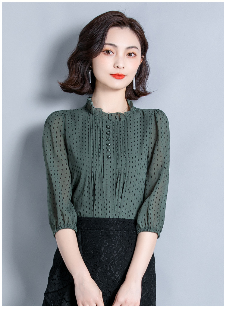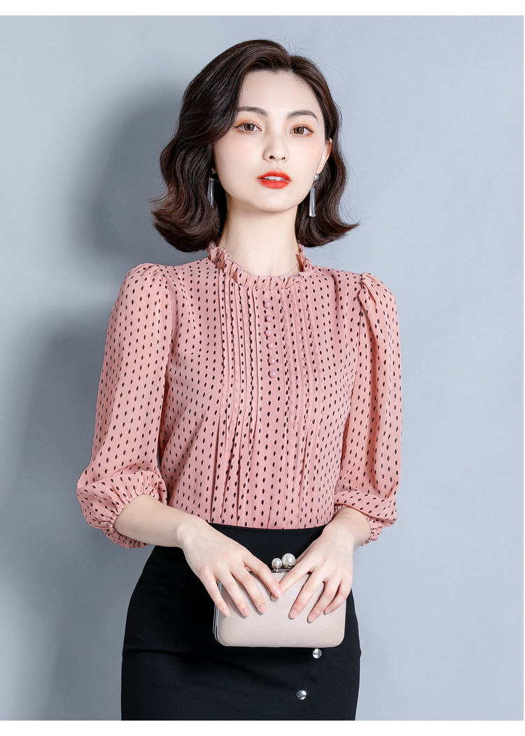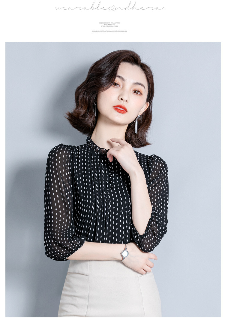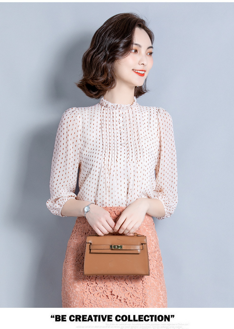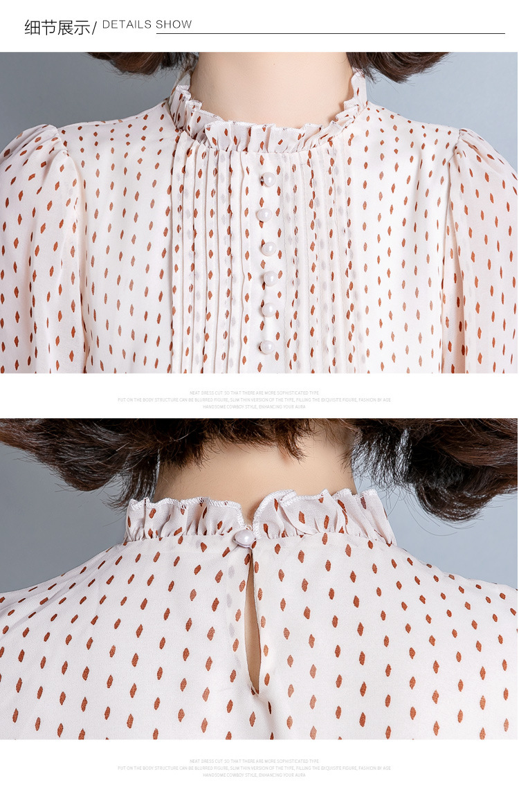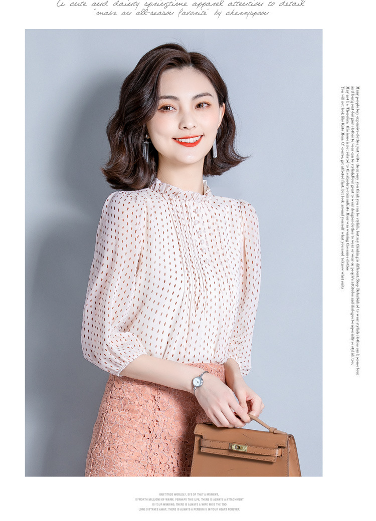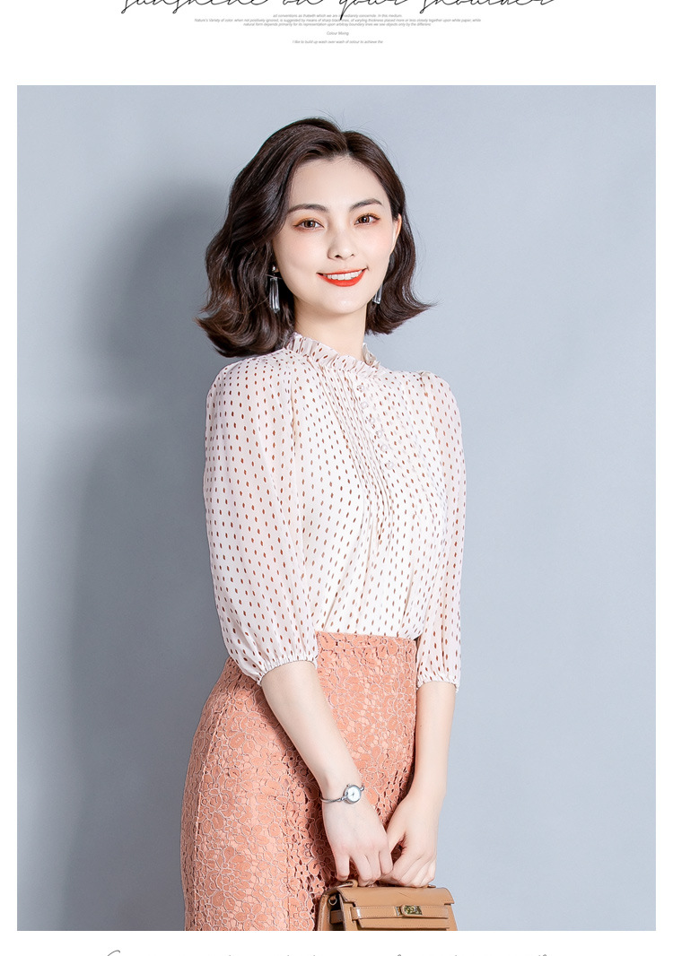 국경 간 쉬폰 셔츠 여름 새로운 도착 플러스 사이즈 쉬폰 셔츠 우아한 귀 가장자리 웨이브 닷 중간 슬리브 탑 웨스턴 스타일 작은 셔츠