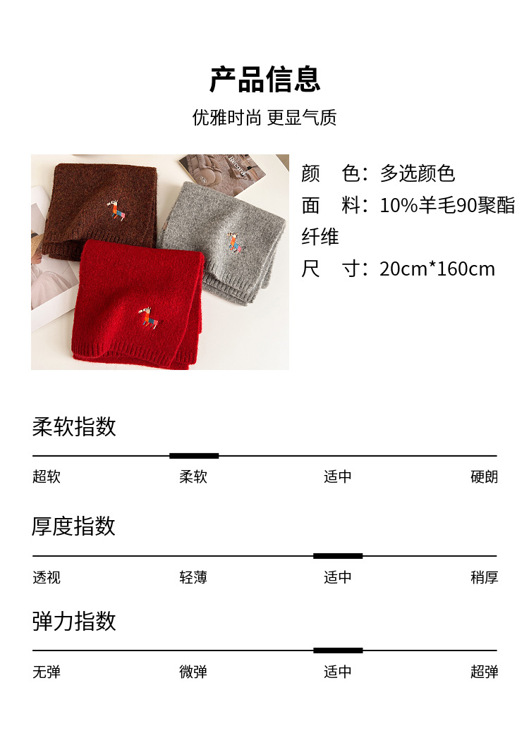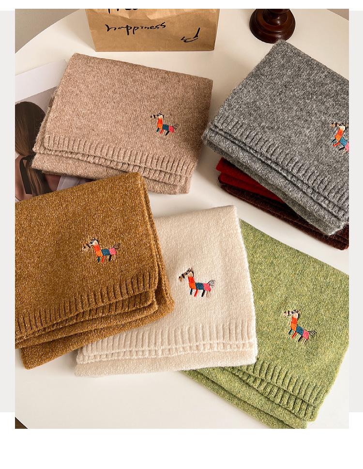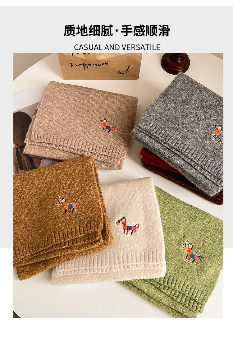 한국식 틈새 단색 양모 니트 스카프 올매치 목도리 슈퍼 귀여운 자수 따뜻한 목 보호 커플 스카프스토어 가기