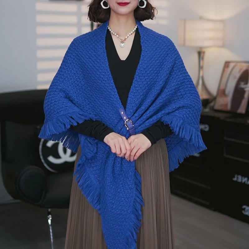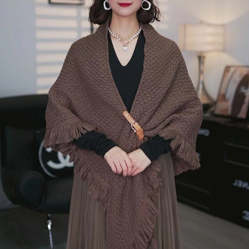 가을과 겨울 따뜻한 술 목도리 니트 망토 한국 새로운 국경 패션 삼각형 붉은 가죽 버클 스카프
