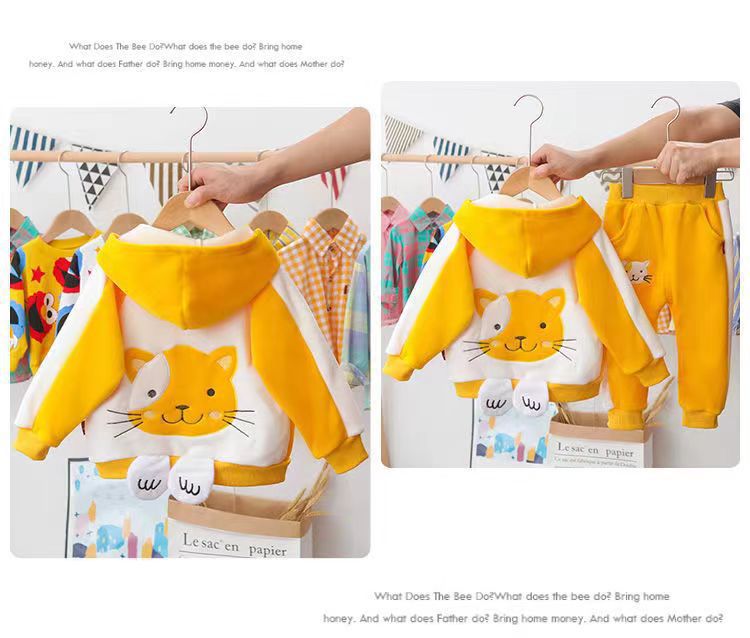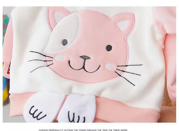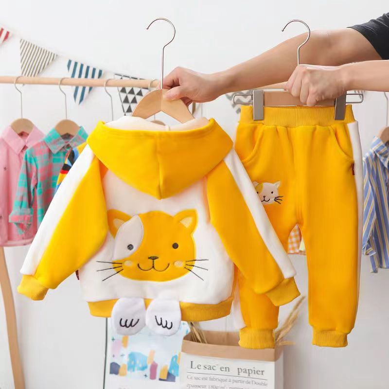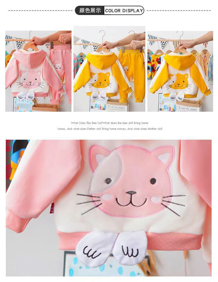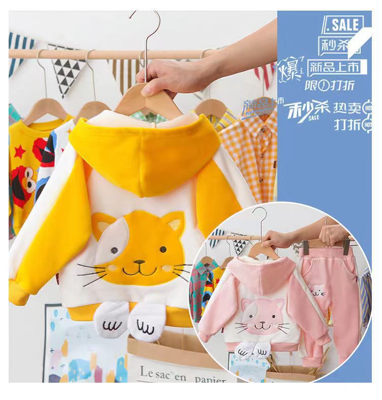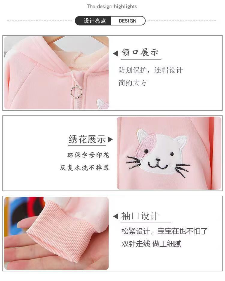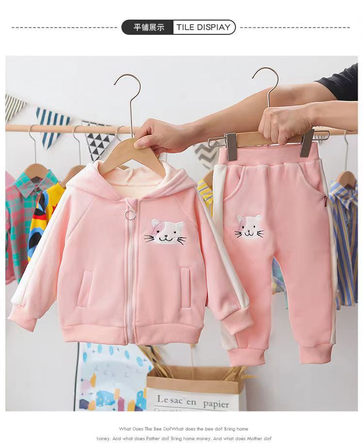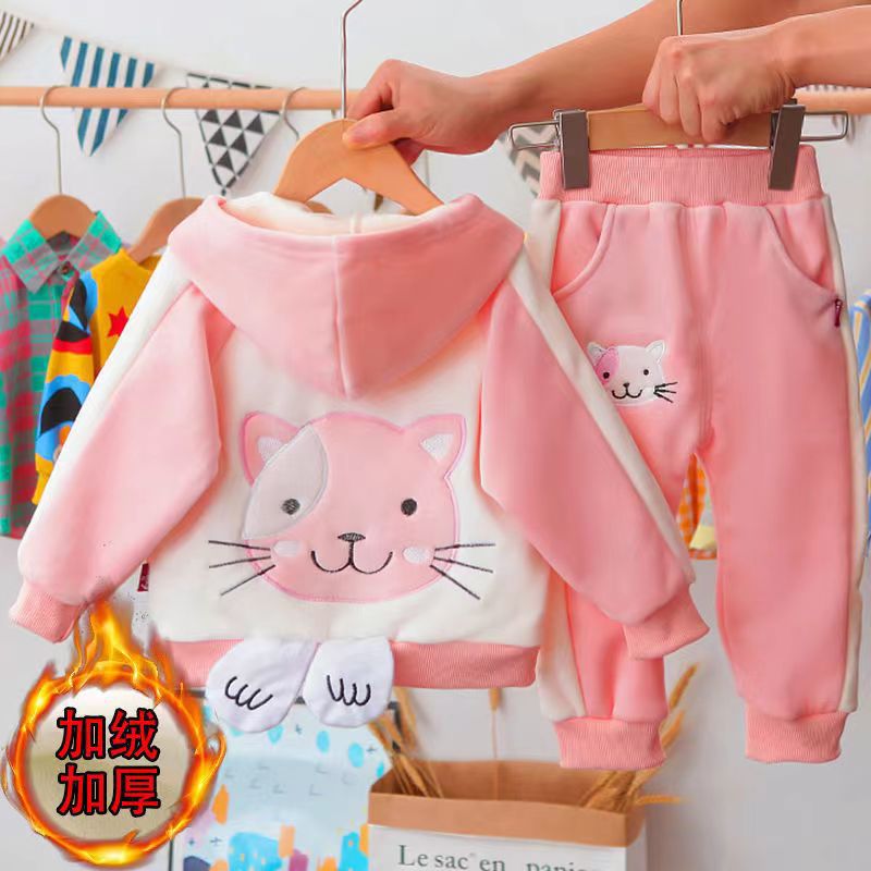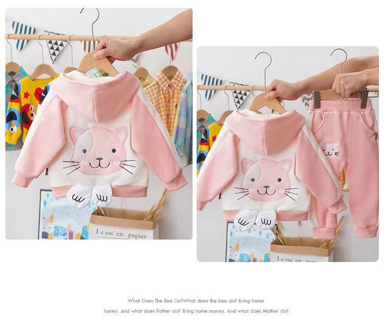 여자 겨울 2024 새로운 기모 어린이 만화 양털 후드 코트 아기 겨울 귀여운 고양이 세트스토어 가기