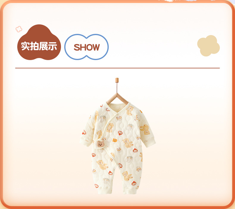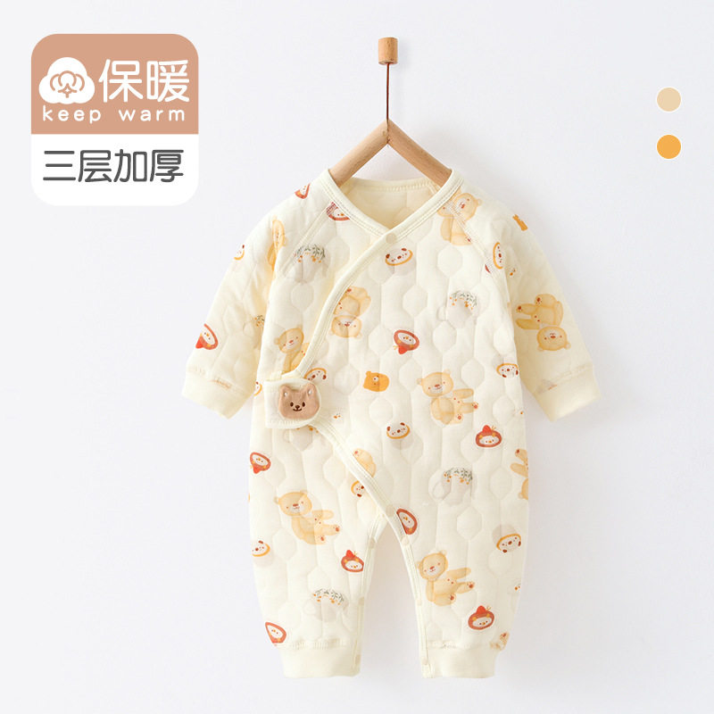 아기 점프수트, 봄, 가을 남녀공용 3겹 따뜻한 베이비 베이스패딩 코트, 신생아복, 배 보호복스토어 가기
