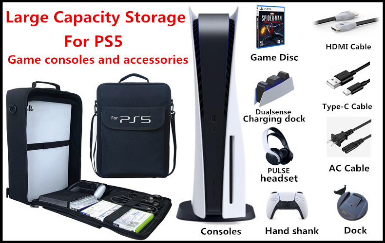 PS5 배낭 CD 와이어 핸들 헤드셋베이스 액세서리 저장 어깨 가방 핸드백 게임 호스트 가방스토어 가기