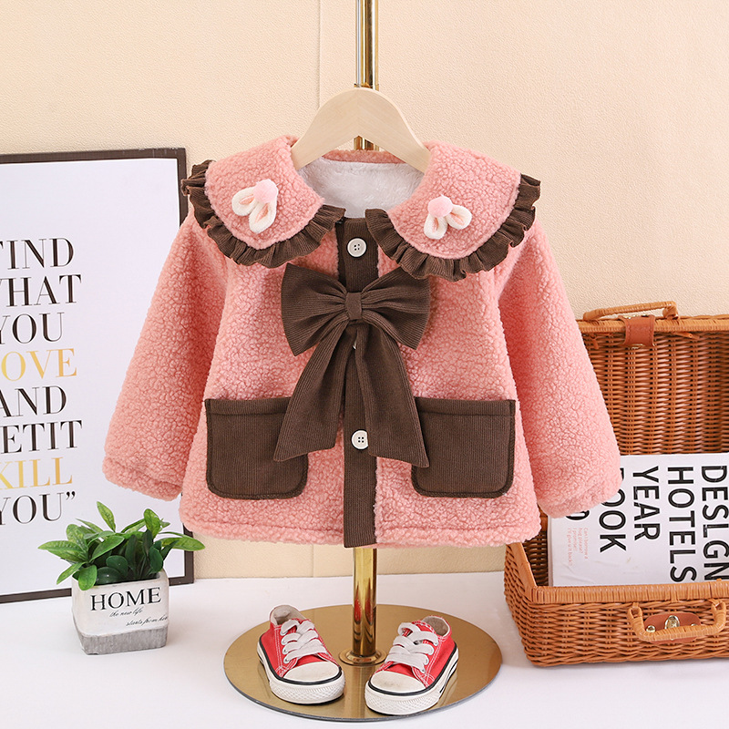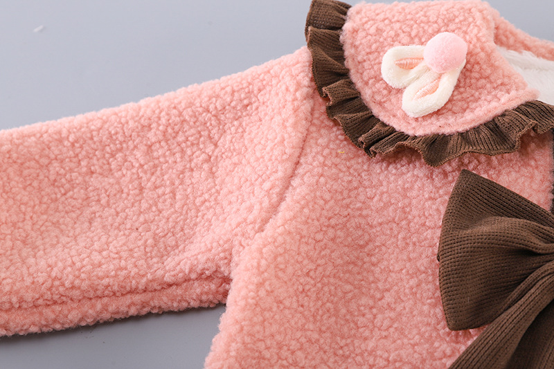 • 핑크 칼라 토끼 귀 벨벳 두꺼운 재킷 LFL