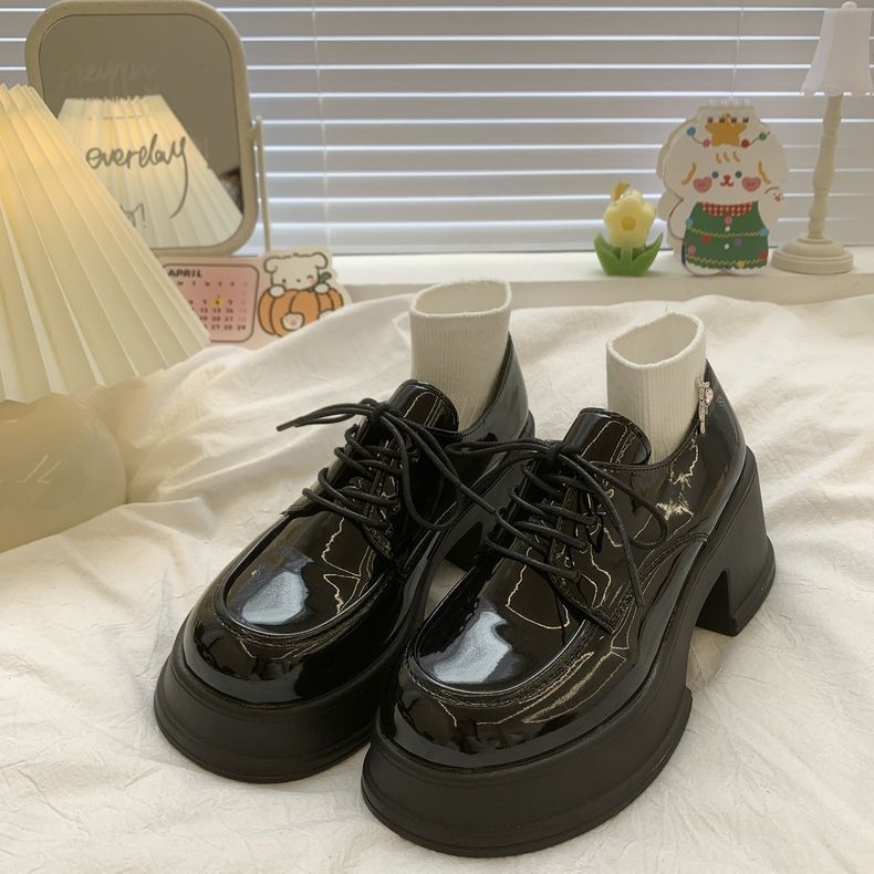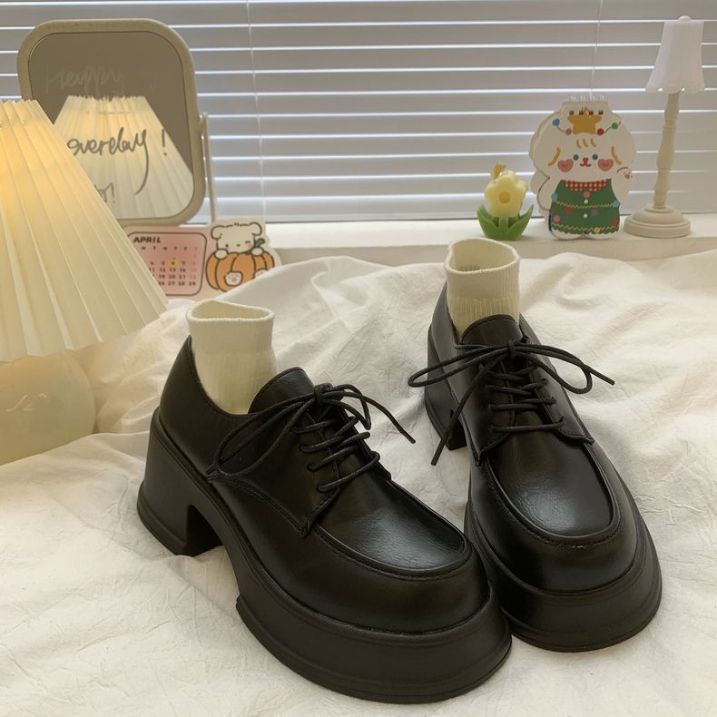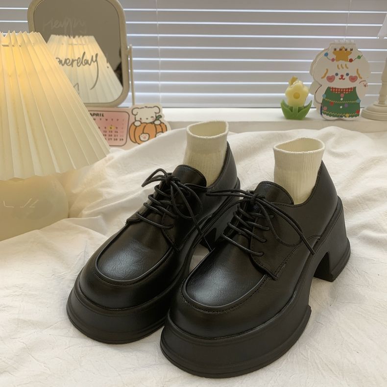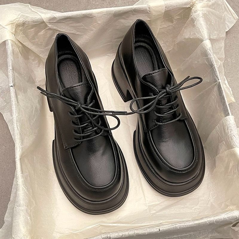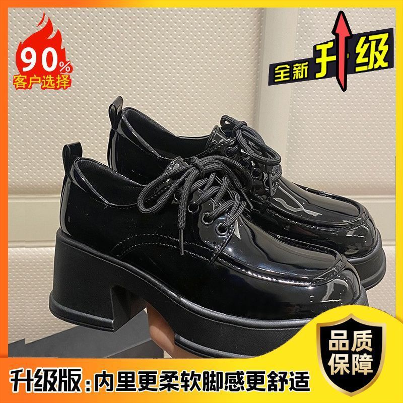 여성용 두꺼운 밑창 로퍼 2026년 봄 신상 영국 스타일 가죽 구두 블랙 메리제인 슈즈 하이힐 여성화스토어 가기