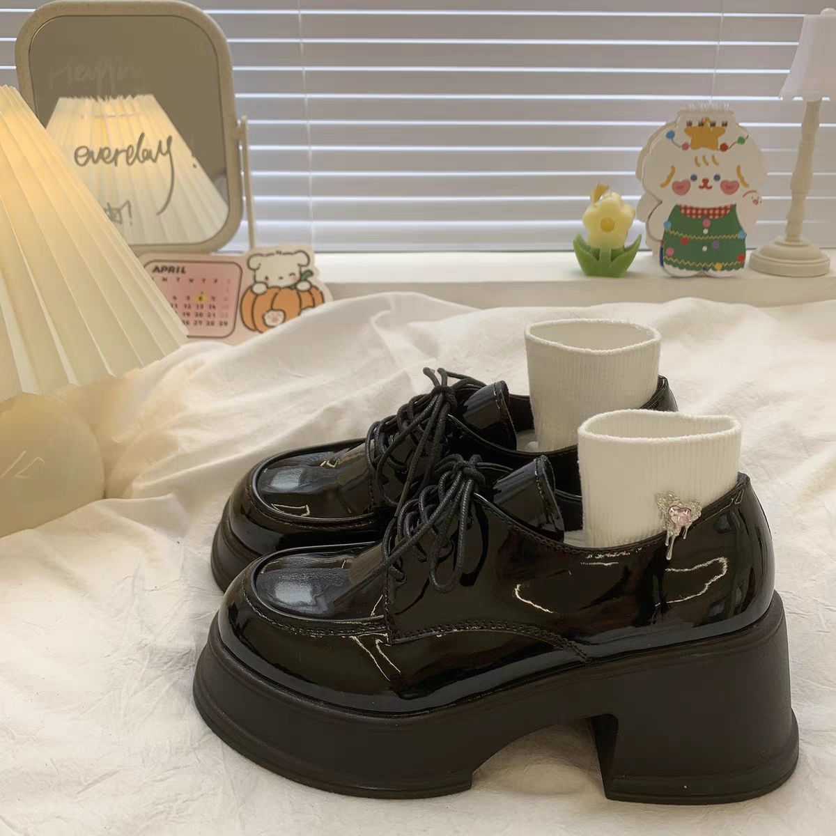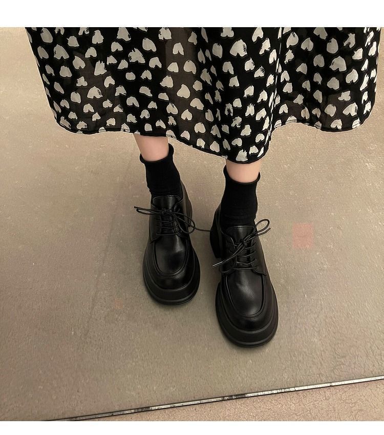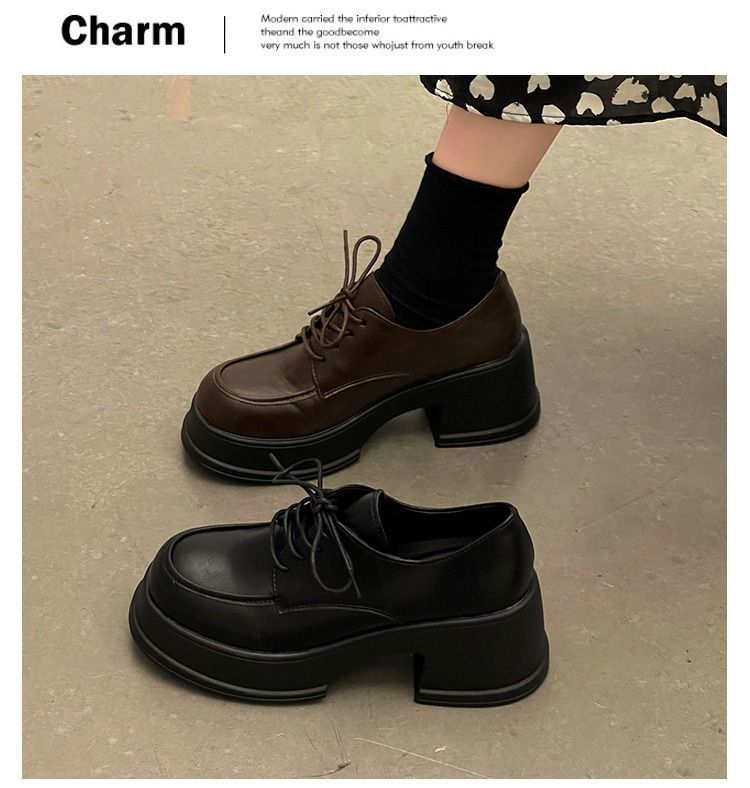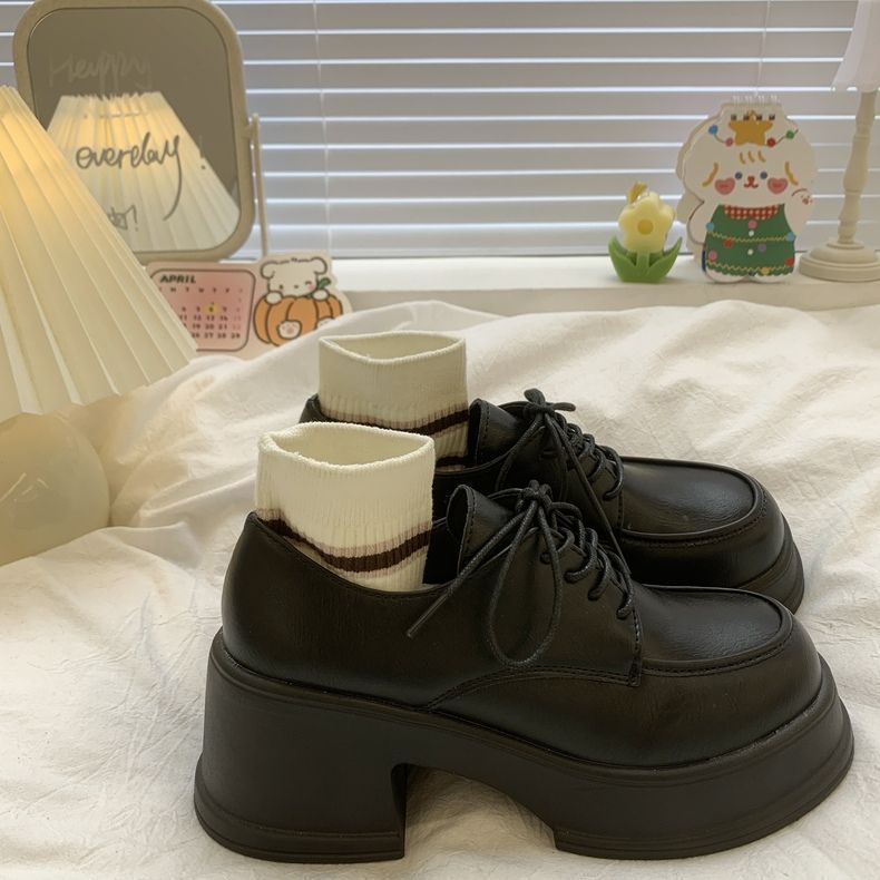 여성용 두꺼운 밑창 로퍼 2026년 봄 신상 영국 스타일 가죽 구두 블랙 메리제인 슈즈 하이힐 여성화스토어 가기