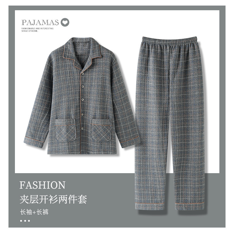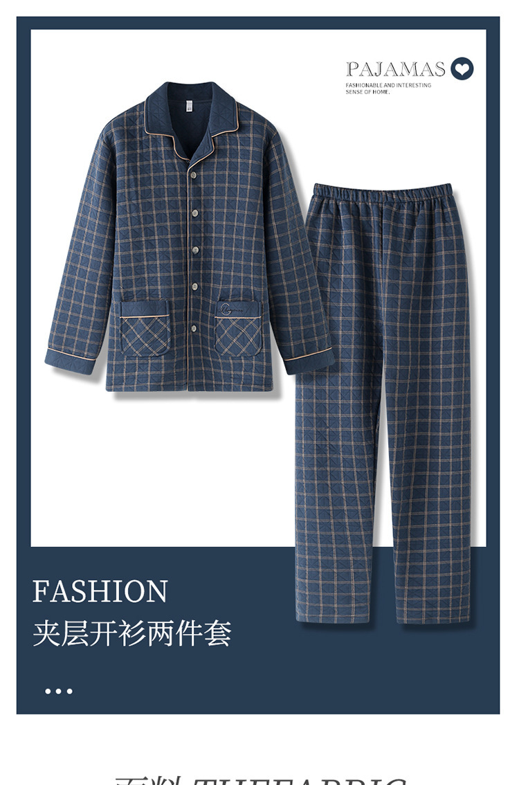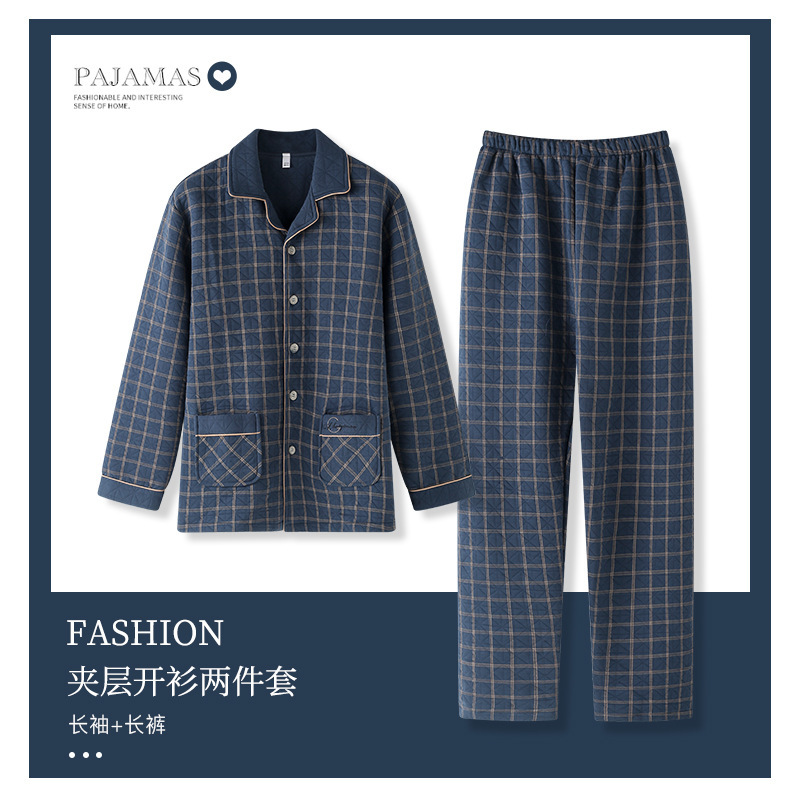 남자 잠옷 남자 가을 겨울 두꺼운 샌드위치 얇은 퀼트 중년 노인 아빠 따뜻한 엑스트라 사이즈 300 진 세트스토어 가기