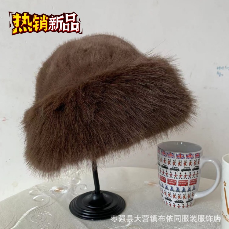 2024 년 새로운 몽골 모자 가을과 겨울 두꺼운 양모 봉제 모조 밍크 따뜻한 몽골 모자 귀 보호 올 매치 패션스토어 가기