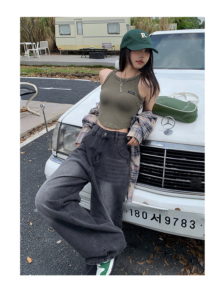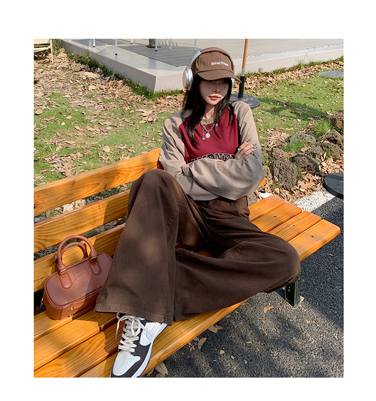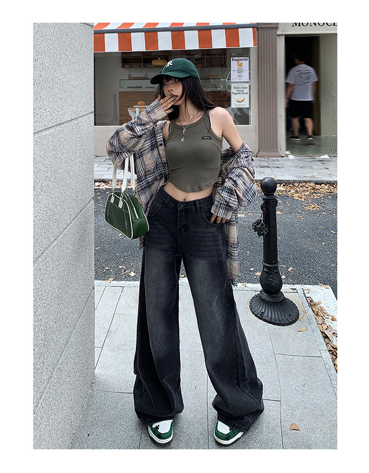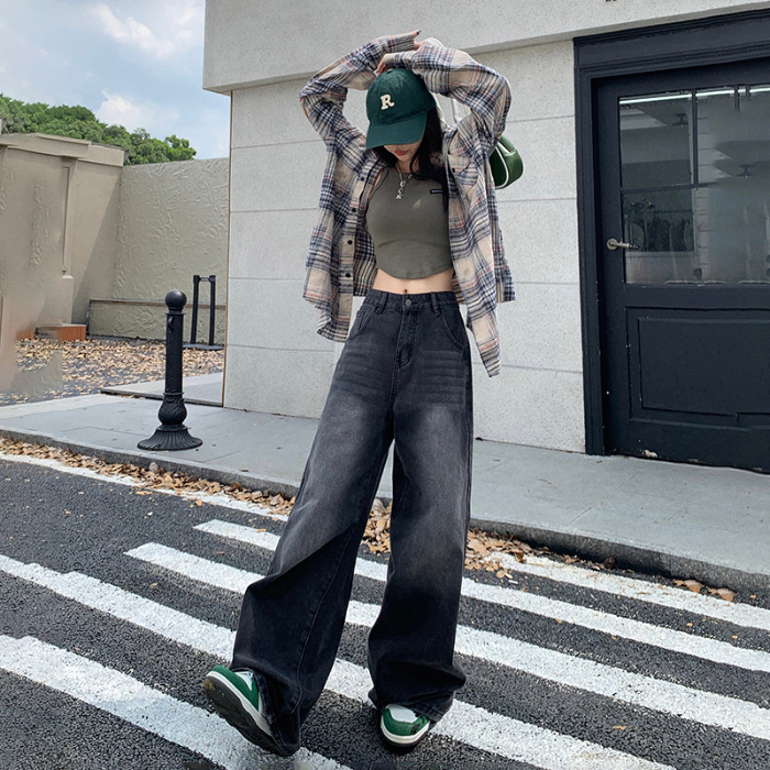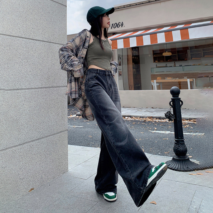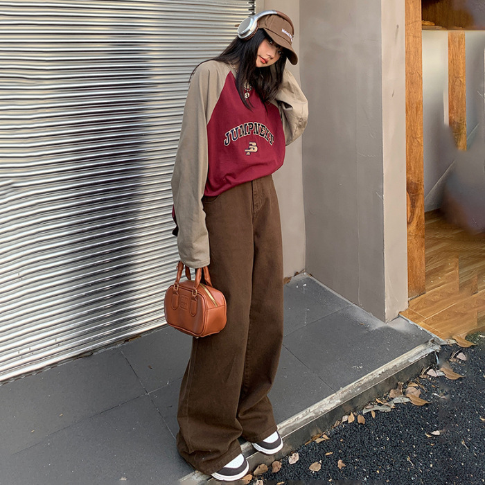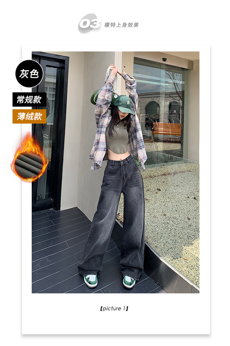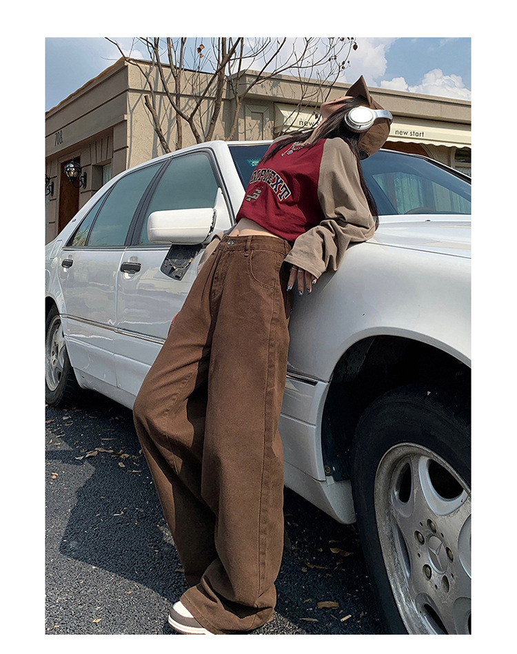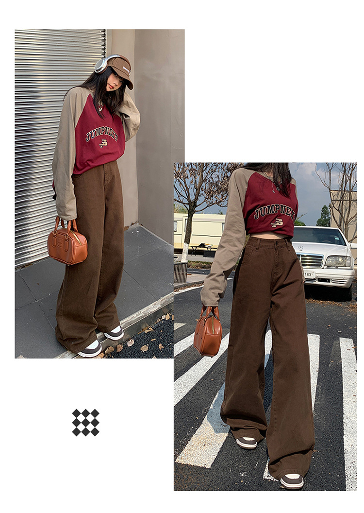 아메리칸 스타일 와이드 레그 청바지 여성의 봄과 가을 Maillard 높은 허리 슬리밍 느슨한 투약 초고속 바지스토어 가기