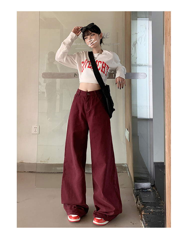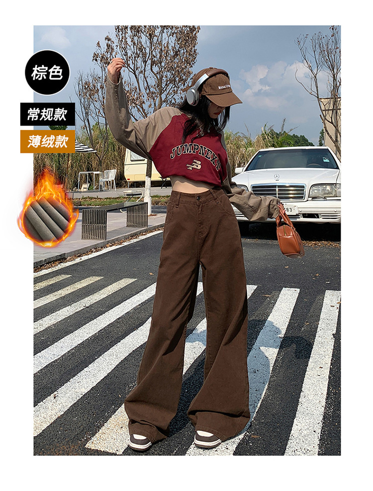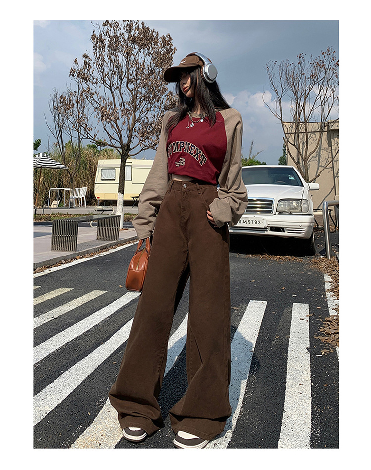 아메리칸 스타일 와이드 레그 청바지 여성의 봄과 가을 Maillard 높은 허리 슬리밍 느슨한 투약 초고속 바지
