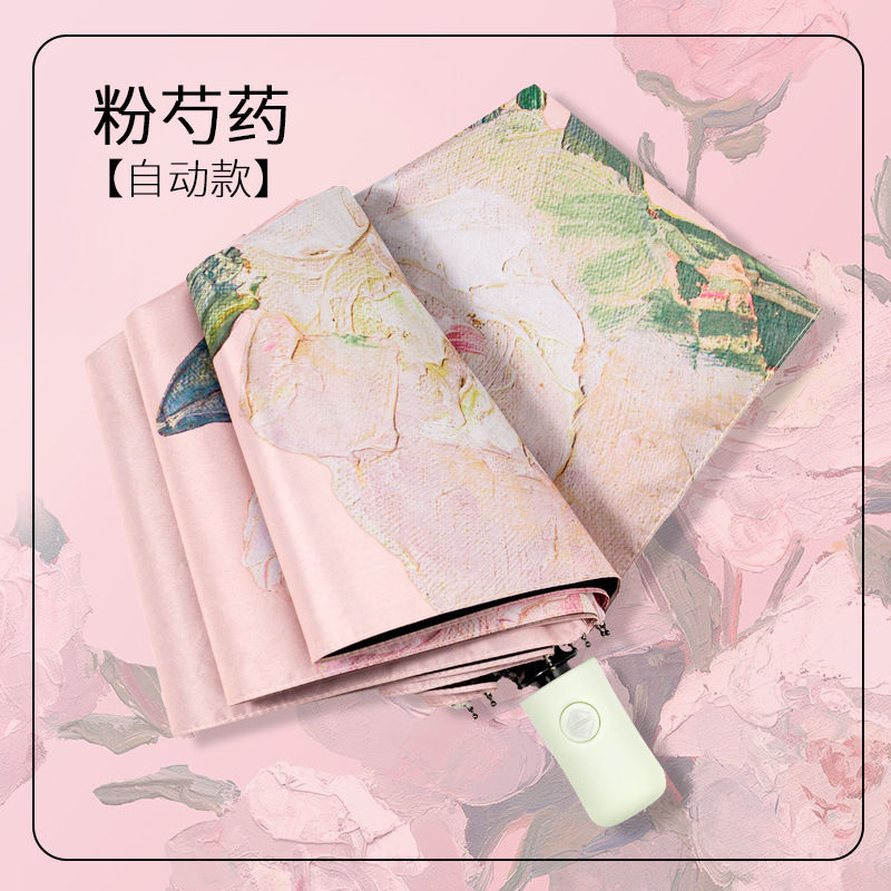 • 핑크 모란/티타늄 럭셔리 플랫 6본/반투명 유화 문학 시리즈(우산 안쪽과 바깥쪽에 황금색 패턴)