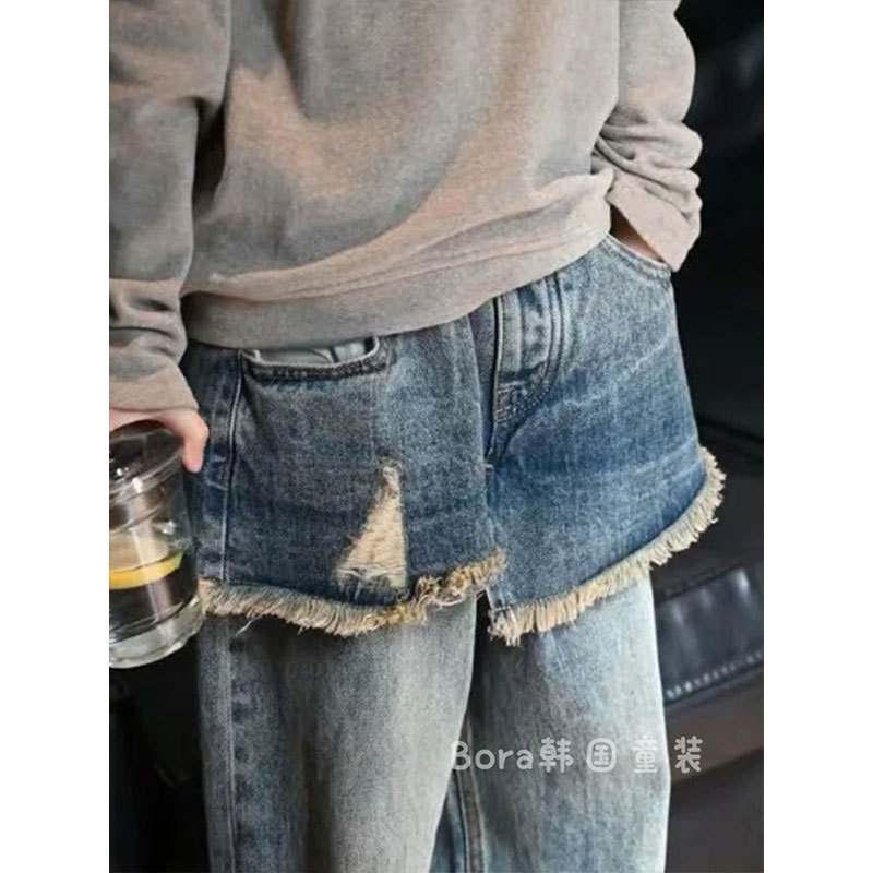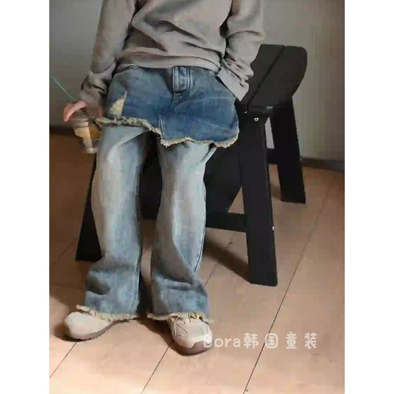 여아 바지, 아동 청바지, 2025 봄 가을 신상 큰 아동 바지, 패셔너블하고 트렌디한 페이크 투피스 캐주얼 패션