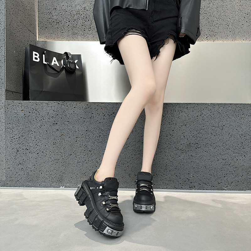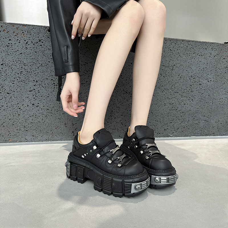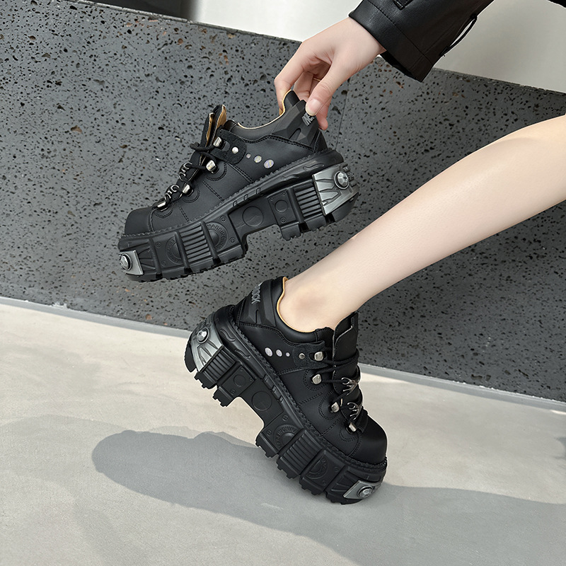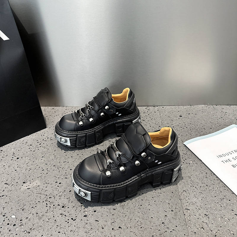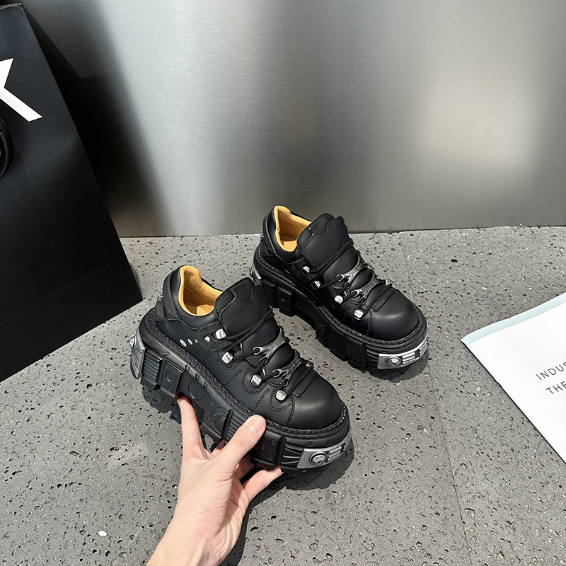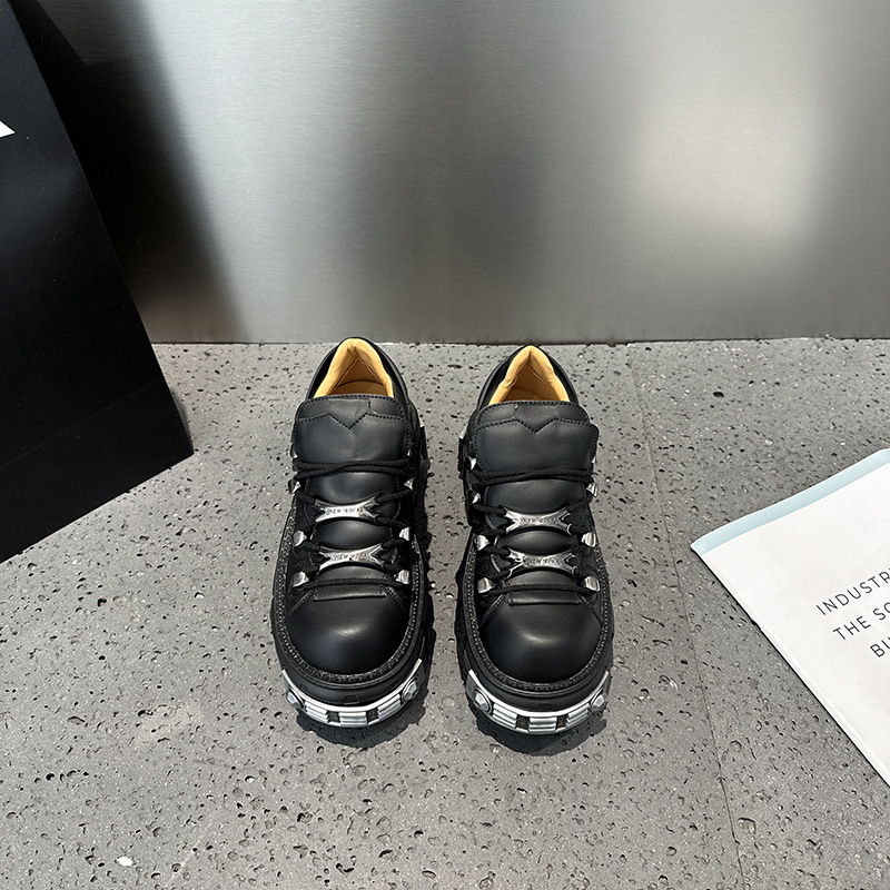 유럽 복고풍 높이 증가 작은 가죽 신발 여성의 2023 가을 스페인 새로운 유행 플랫폼 플랫폼 캐주얼 록 신발스토어 가기