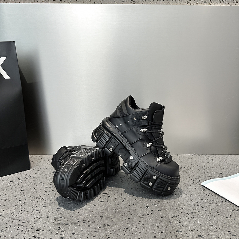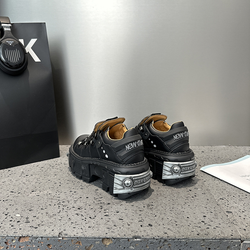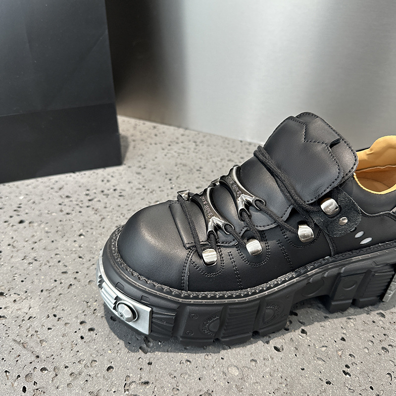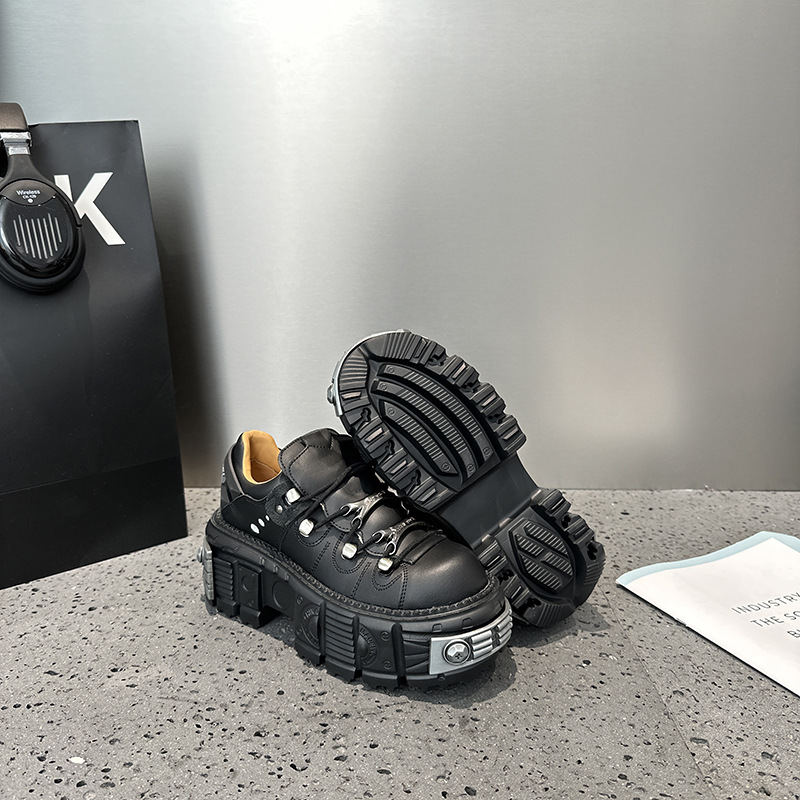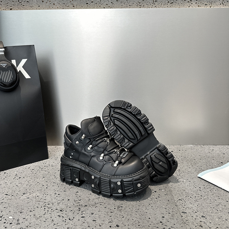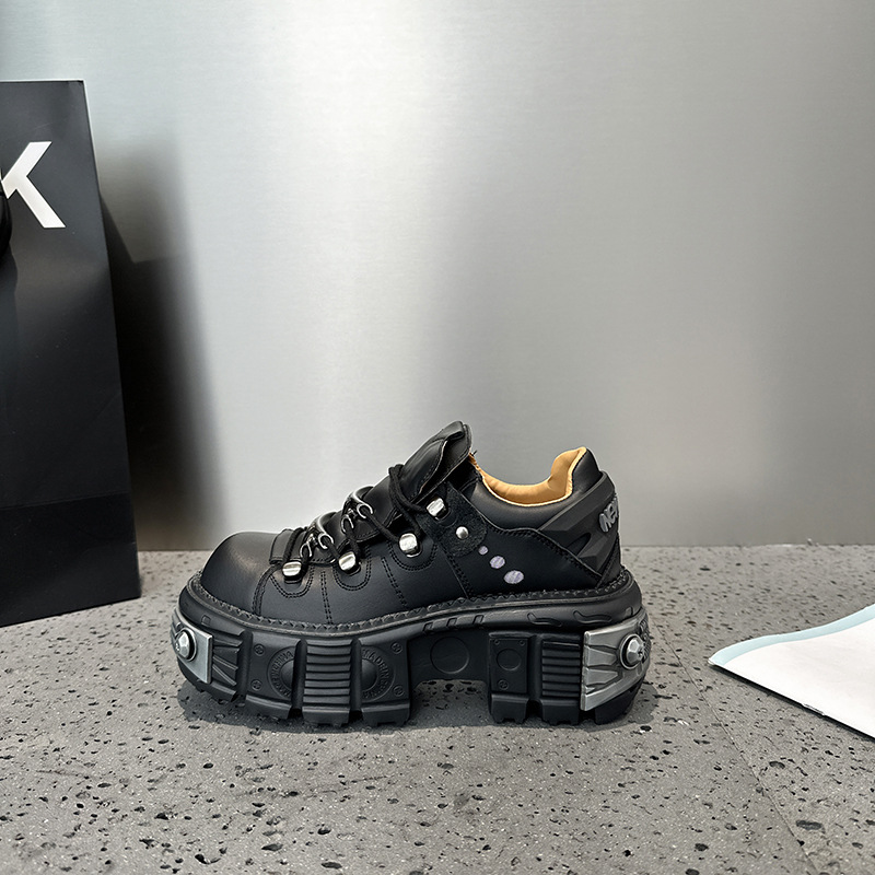 유럽 복고풍 높이 증가 작은 가죽 신발 여성의 2023 가을 스페인 새로운 유행 플랫폼 플랫폼 캐주얼 록 신발스토어 가기