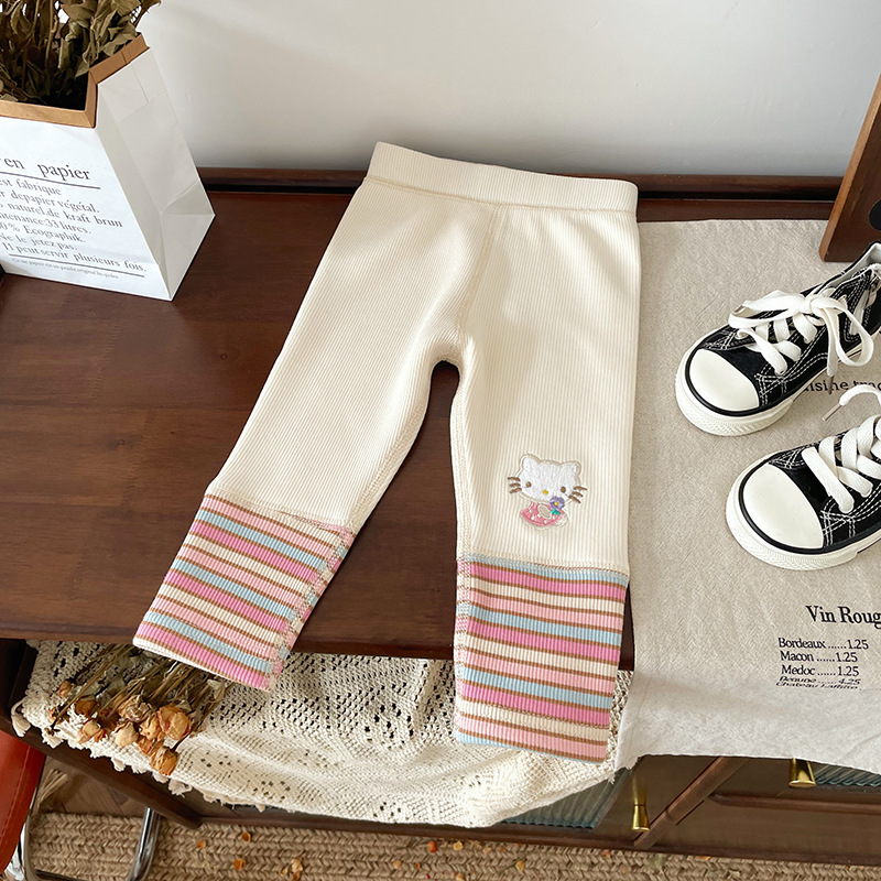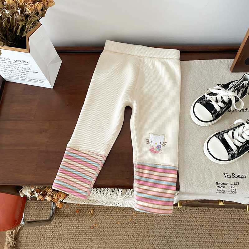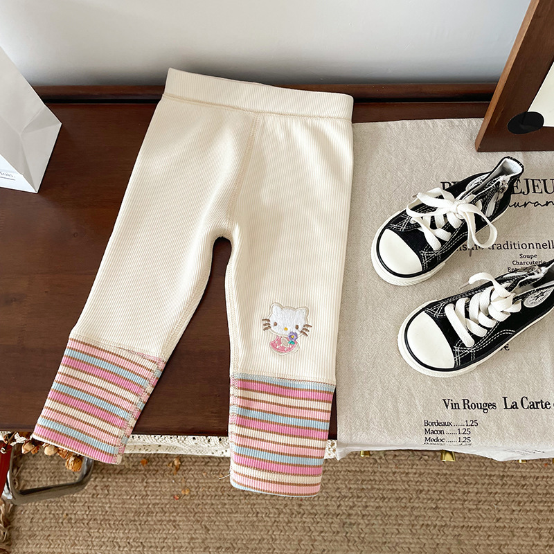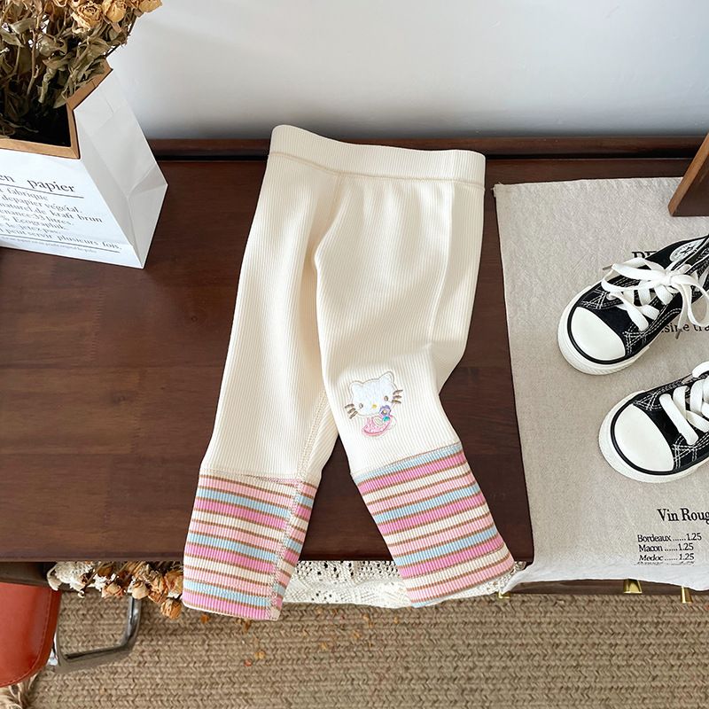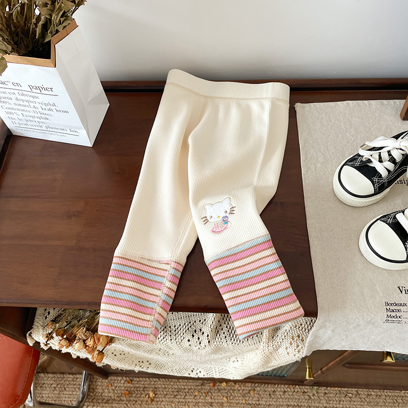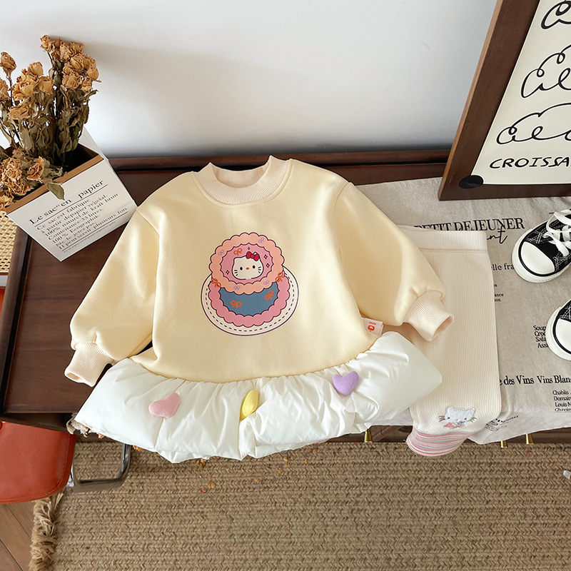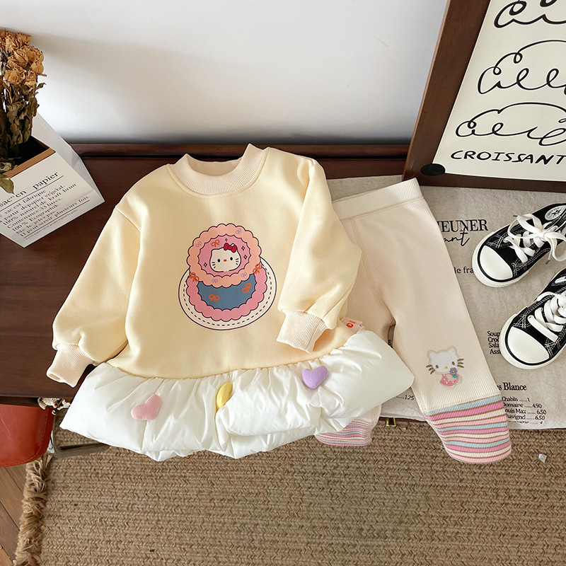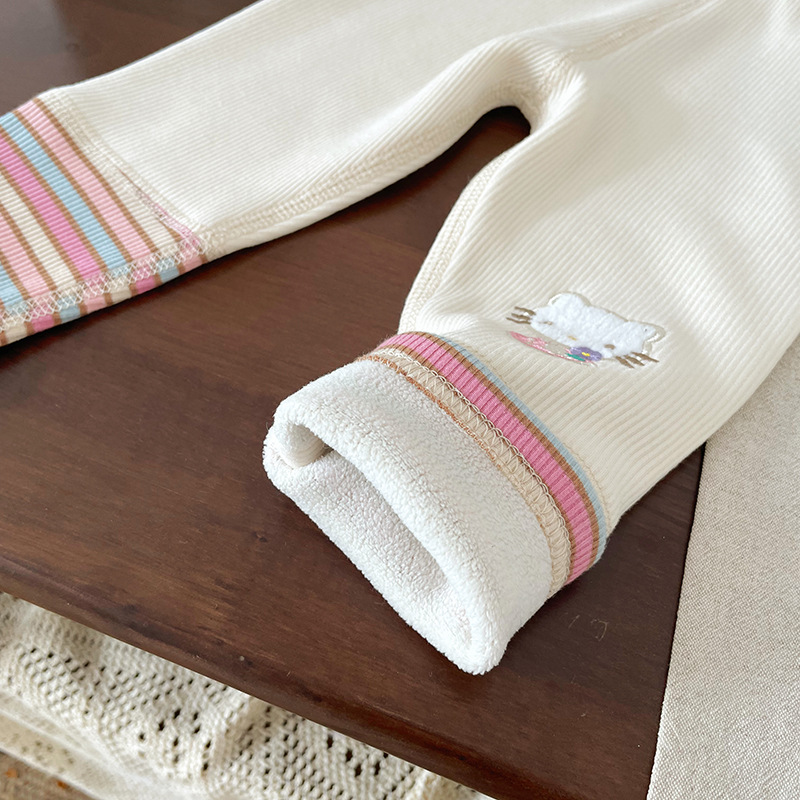 女童童套装2025秋冬新款加绒卡通卫衣女宝宝条纹打底裤童套装批发