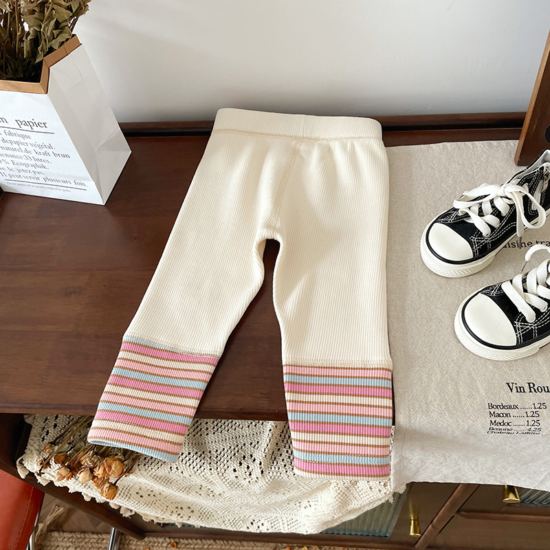 【재고 있음】여아용 무봉제 컬러 스트라이프 기모 레깅스와 기모 스웨트 원피스 2025 가을 겨울 일체형 기모 레깅스스토어 가기