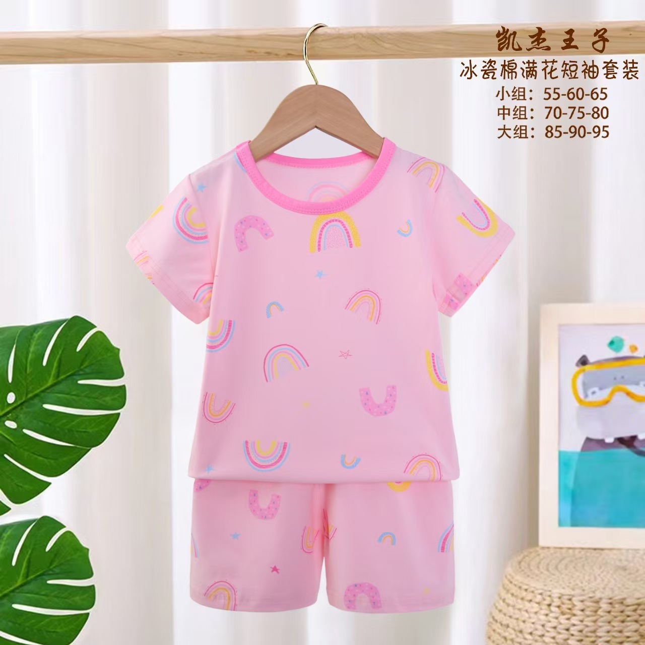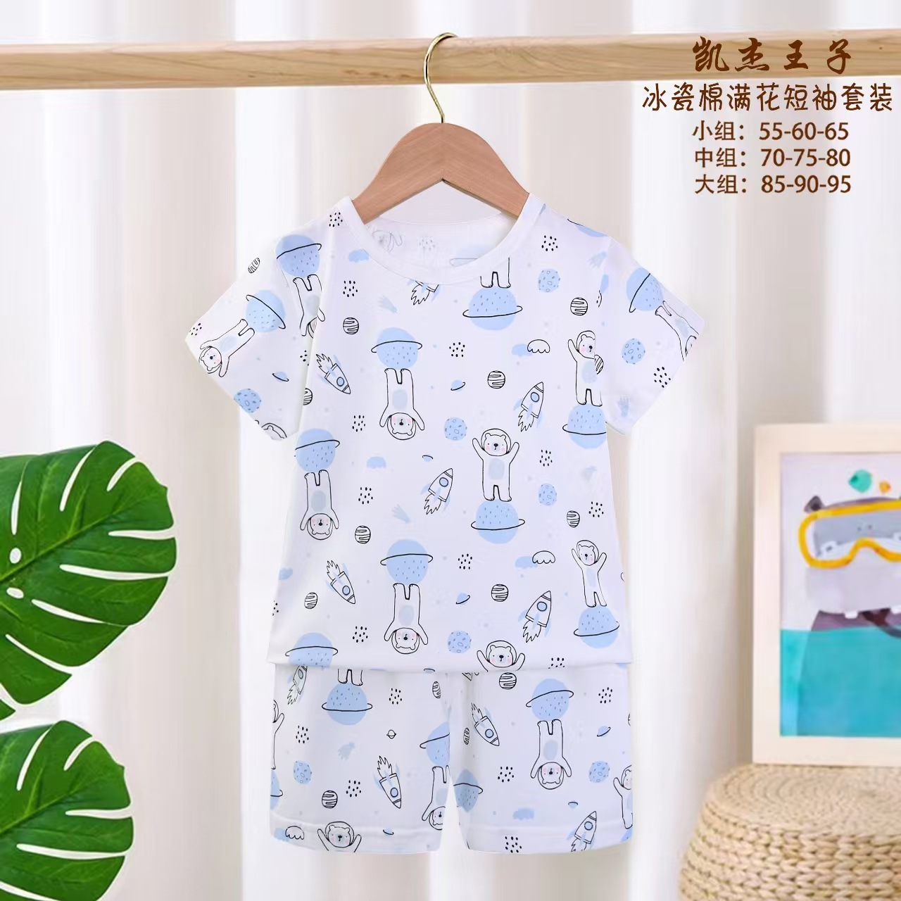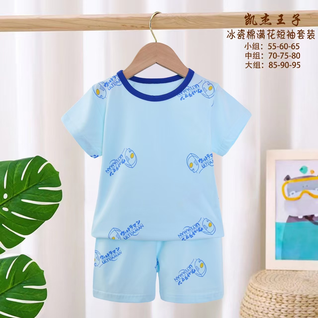 여름 어린이 속옷 세트 얼음 도자기 면화 전체 꽃 어린이 짧은 소매 반바지 만화 아동복 세트 제조 업체